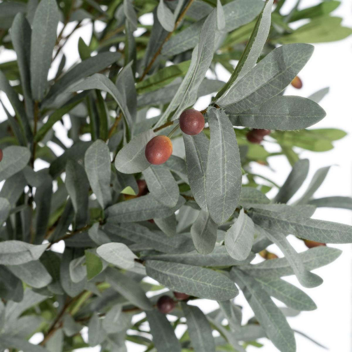 PLANTA OLIVO VERDE POLIESTER DECORACIÓN 130 X 240 CM Tejido poliéster. Material macetero: Polipropileno. Material de alambres de sujección de las hojas: Hierro Medidas macetero:20x20x17cm. Relleno del macetero: Musgo artificial verde.