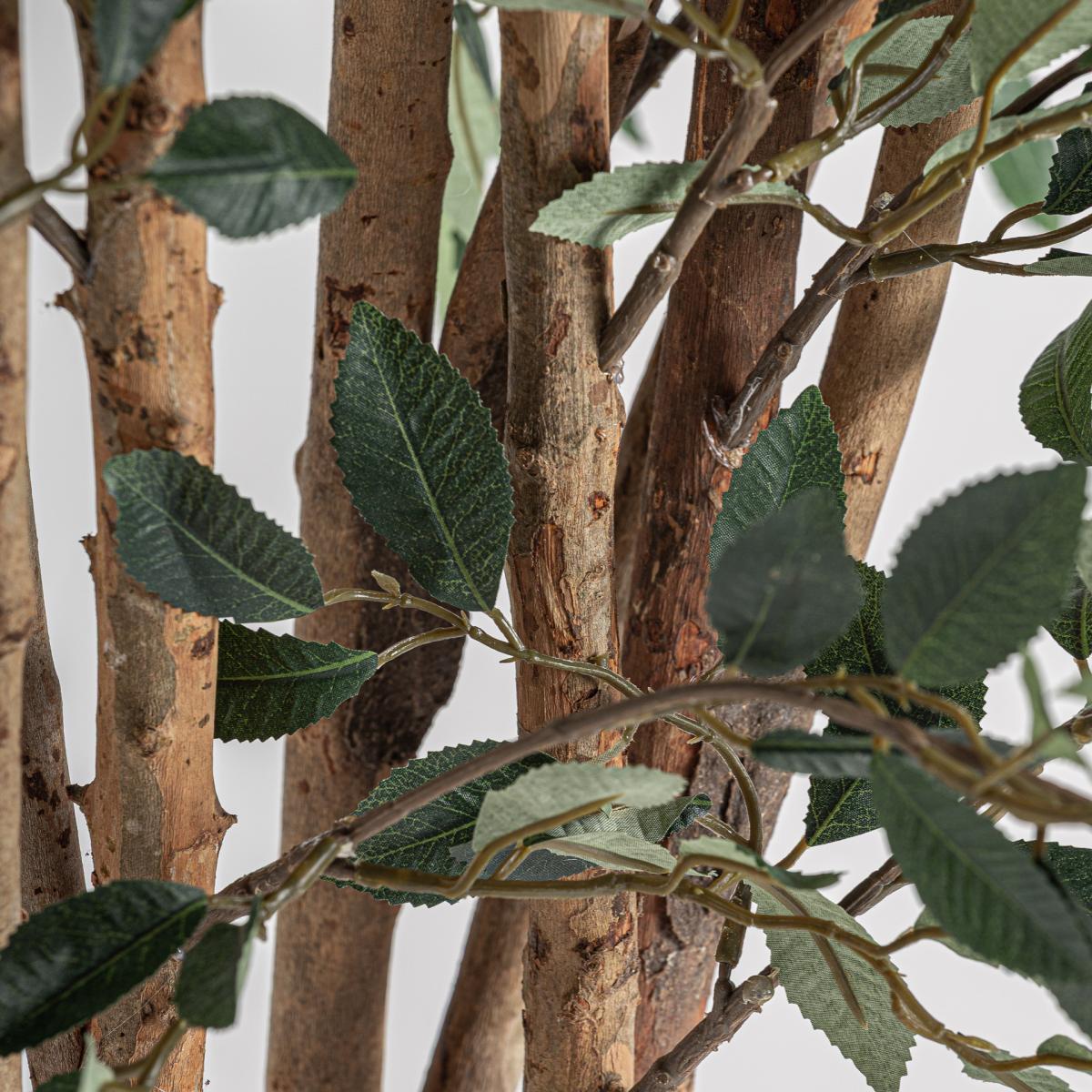 Planta Ficus de estilo contemporáneo fabricado en poliéster en color verde combinado con polietileno en color marrón y madera en color marrón. Producto plegable.