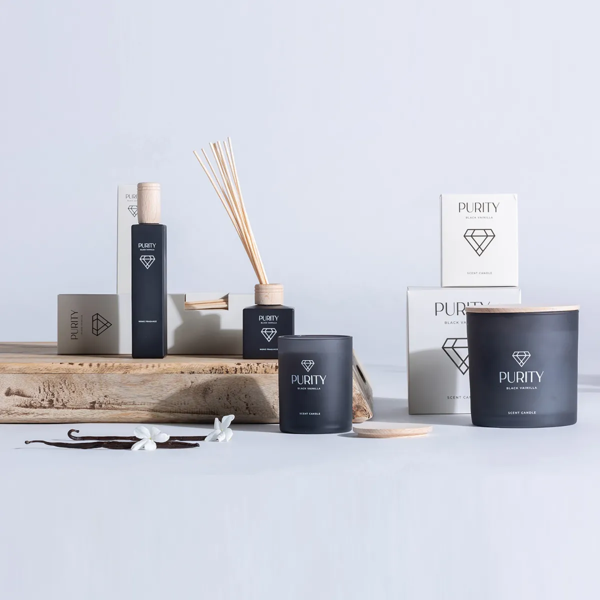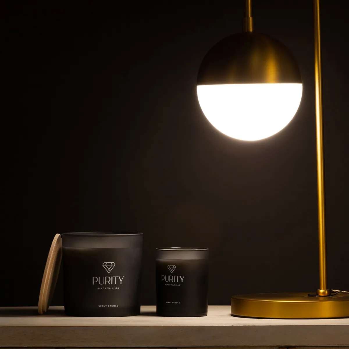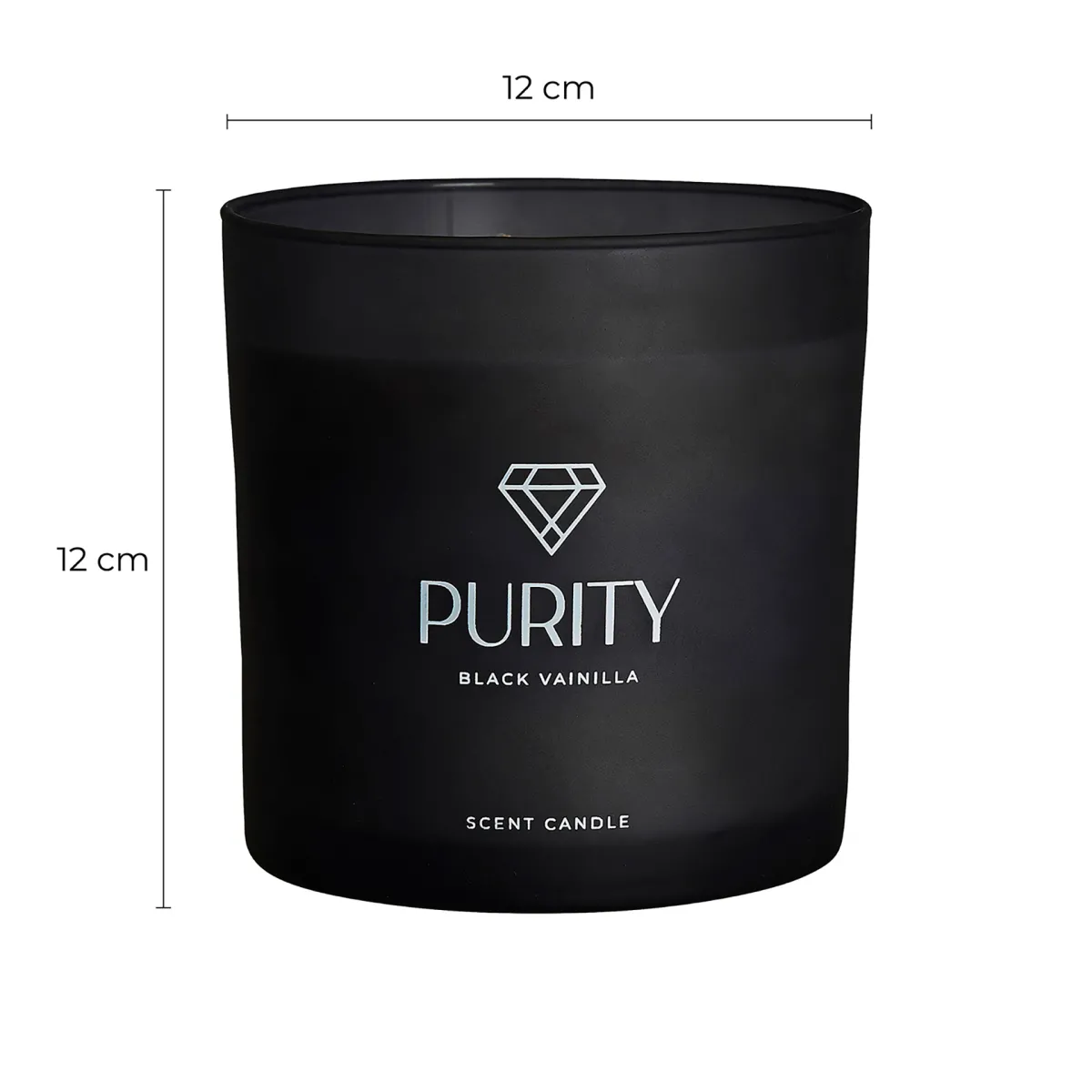 Vela Purity de estilo shabby chic fabricado en cera en color negro combinado con vidrio. 92% de cera natural 8% vainilla.