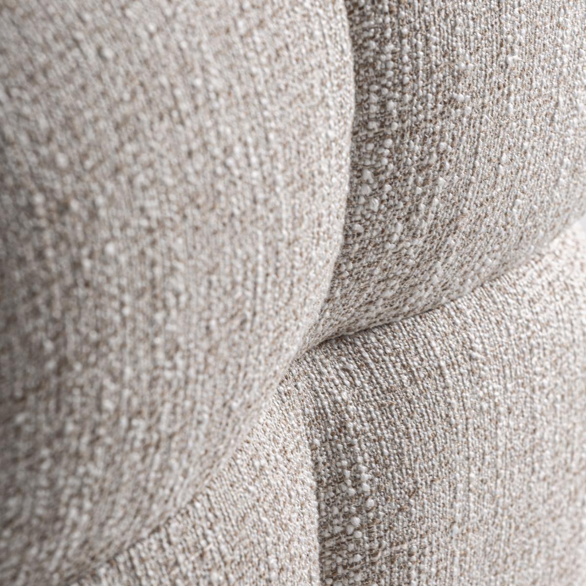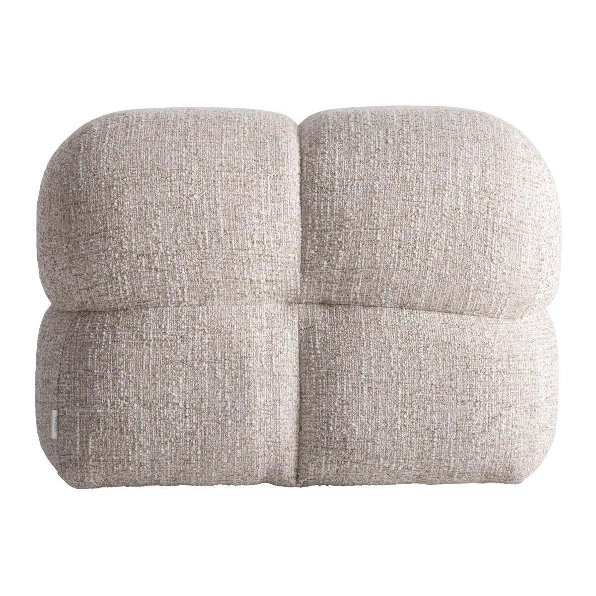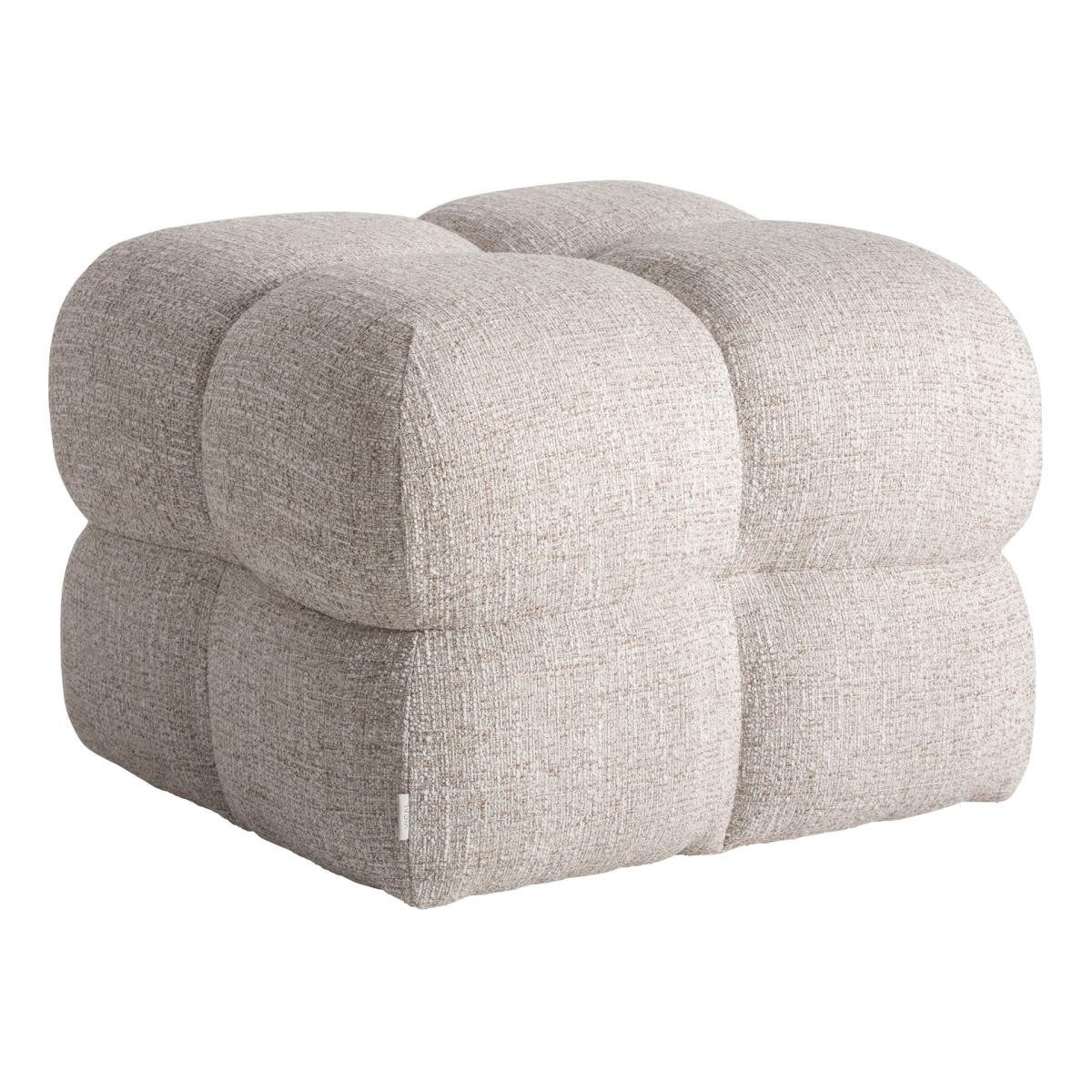 Reposapiés, fabricado en poliéster en color beige con acabado jaspeado, combinado con madera contrachapada y espuma.