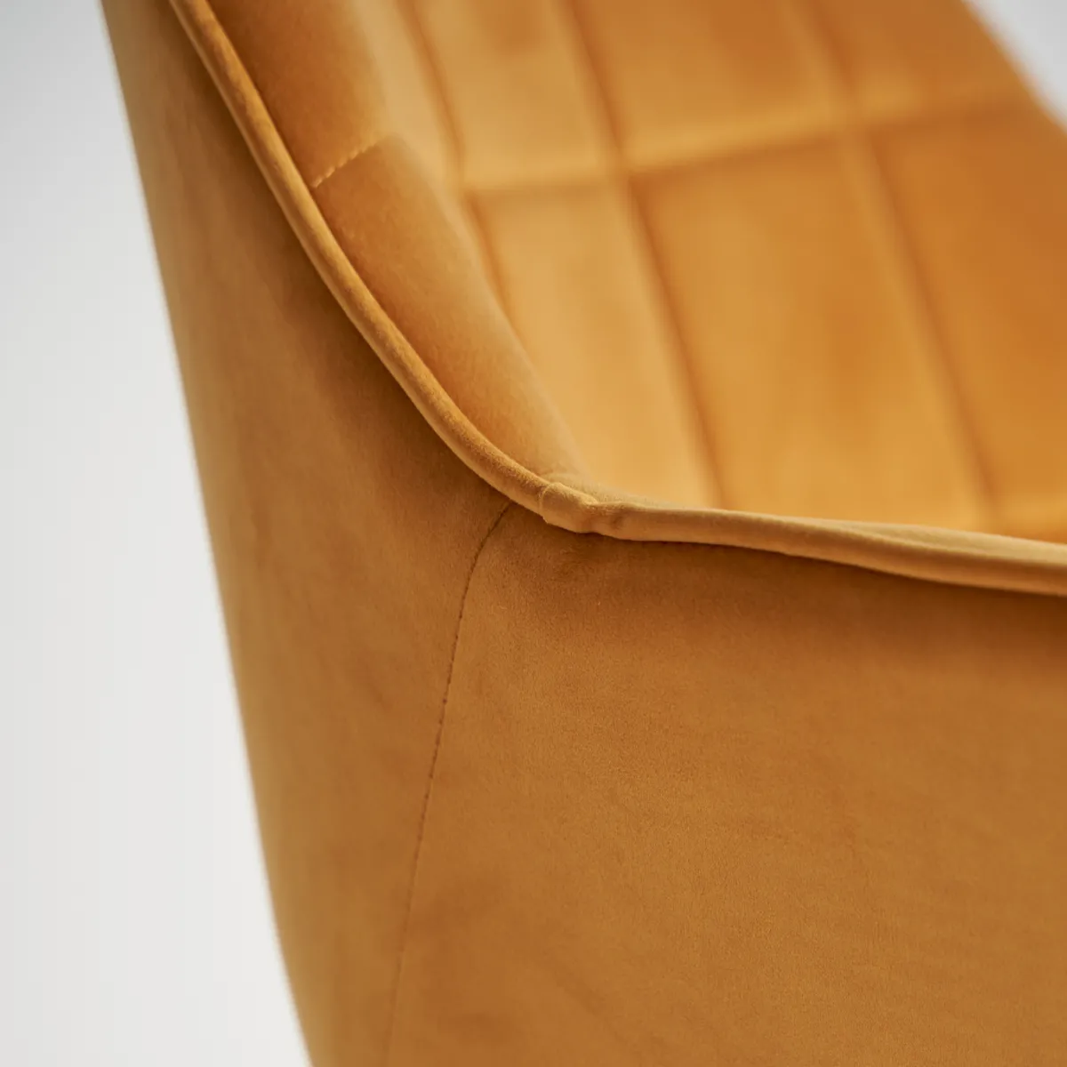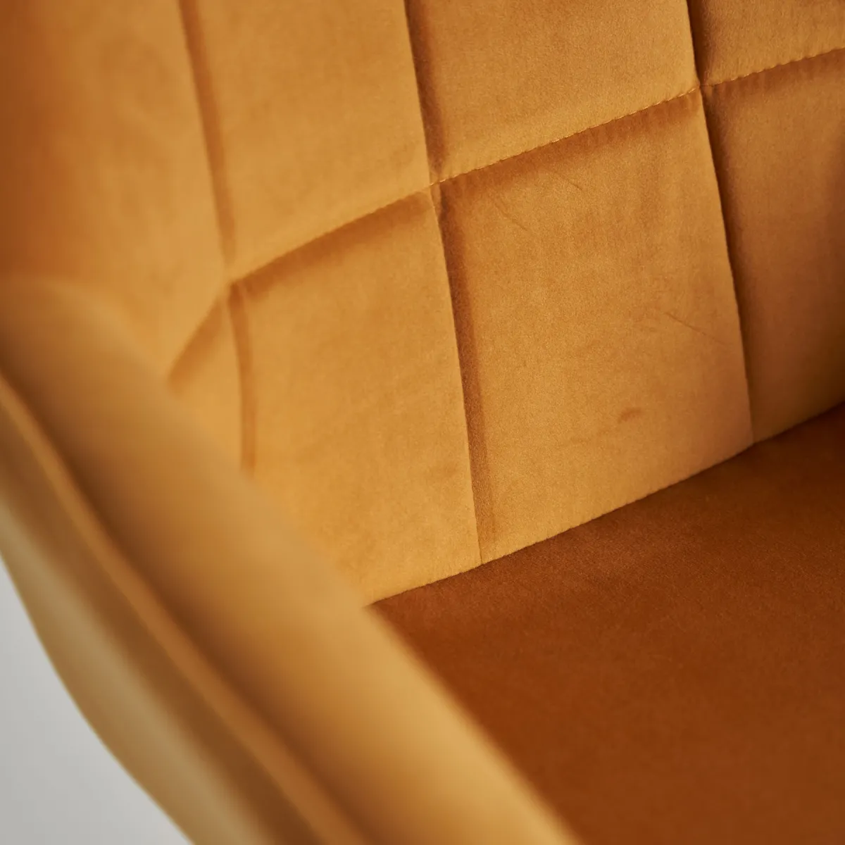 Silla escritorio Blere de estilo art deco fabricado en terciopelo en color mostaza combinado con madera dm y acero. Producto desmontable elevable.