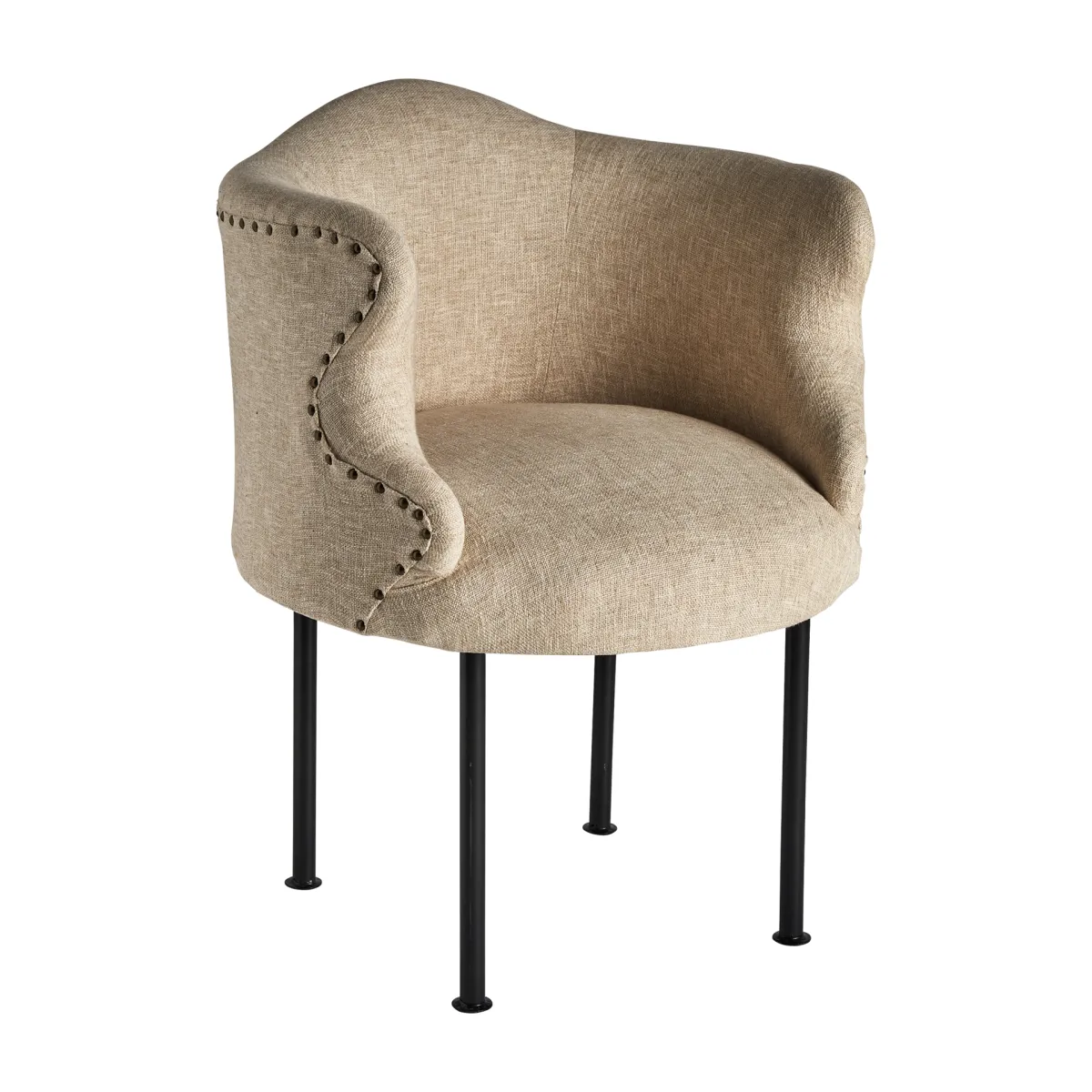 Sillón crovie de estilo vintage fabricado en yute en color arena combinado con metal en color negro.