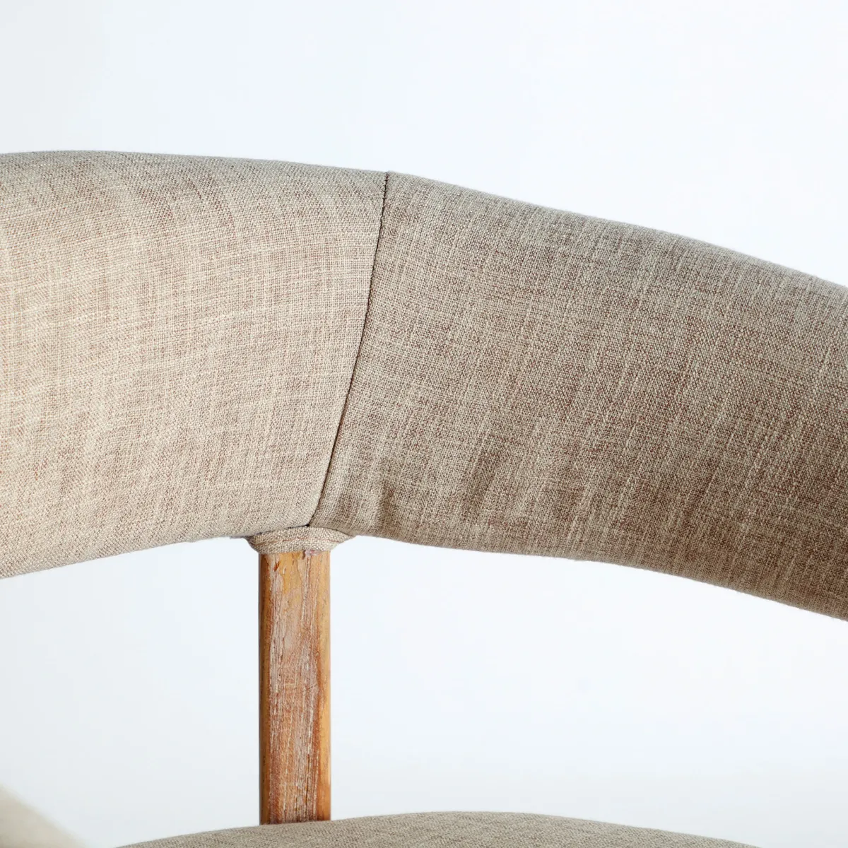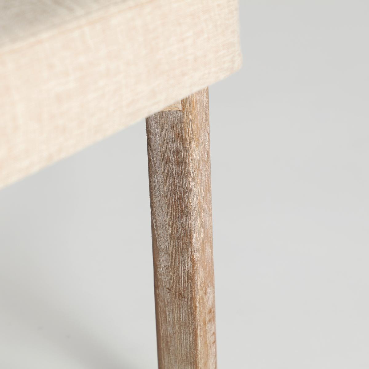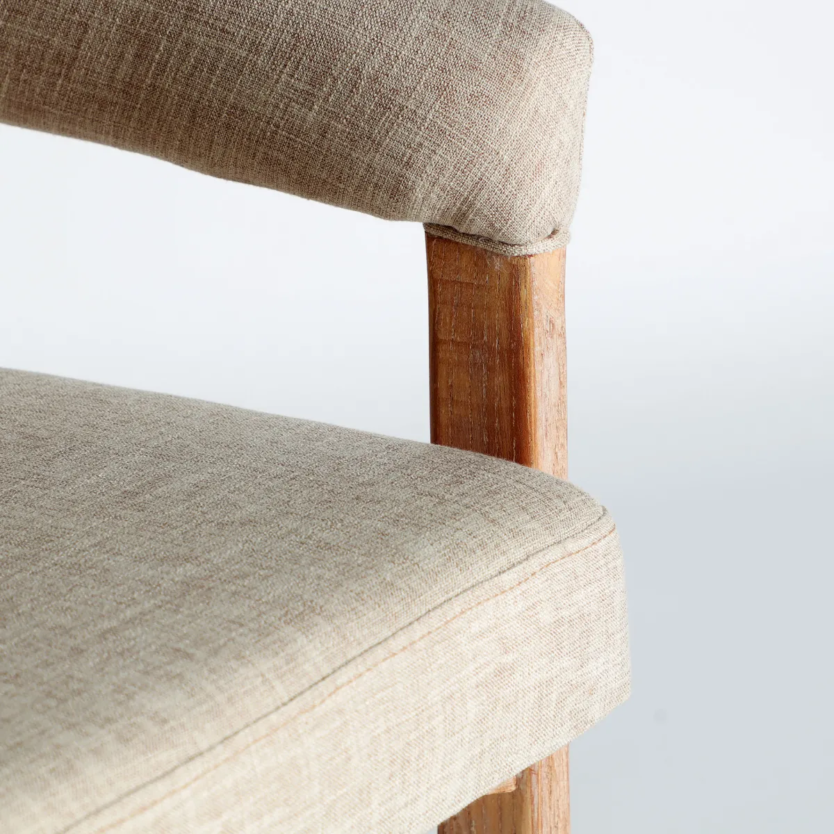 Silla Kai de estilo contemporáneo, fabricado en madera de olmo en color marrón claro, combinado con lino en color beige.