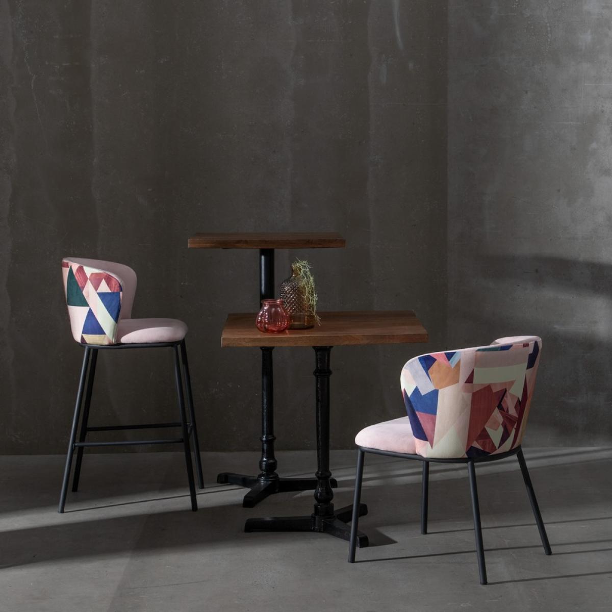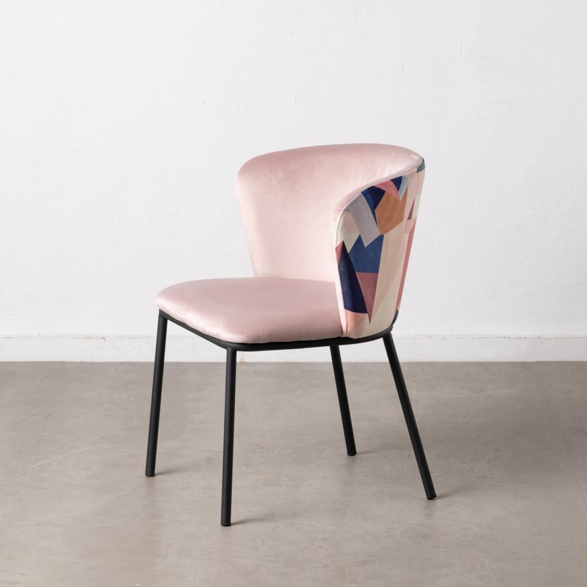 SILLA ABSTRACTO ROSA PALO TEJIDO-METAL 58 X 52 X 77 CM Material: Tejido (100% poliéster). Patas de acero, para montar. Altura asiento: 46m. Altura patas: 38.5cm. Altura respaldo: 34cm. Profundidad asiento: 46cm. Ancho asiento: 52cm. Las posibles sombras o marcas en el tejido son debidas al embalaje de las piezas. Desapareciendo fácilmente con la aplicación de vapor. Cumple normativa: EN16139:2013 No apilable.
