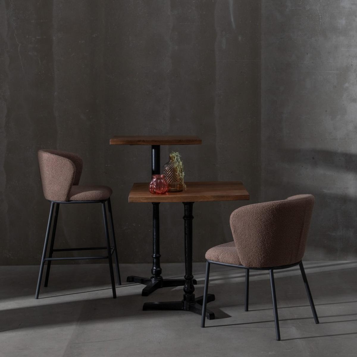 SILLA MARRÓN TEJIDO-METAL SALÓN 58 X 52 X 77 CM Material: Tejido (100% poliéster). Patas de acero, para montar. Altura asiento: 46m. Altura patas: 38.5cm. Altura respaldo: 34cm. Profundidad asiento: 46cm. Ancho asiento: 52cm. Cumple normativa: EN16139:2013 No apilable.