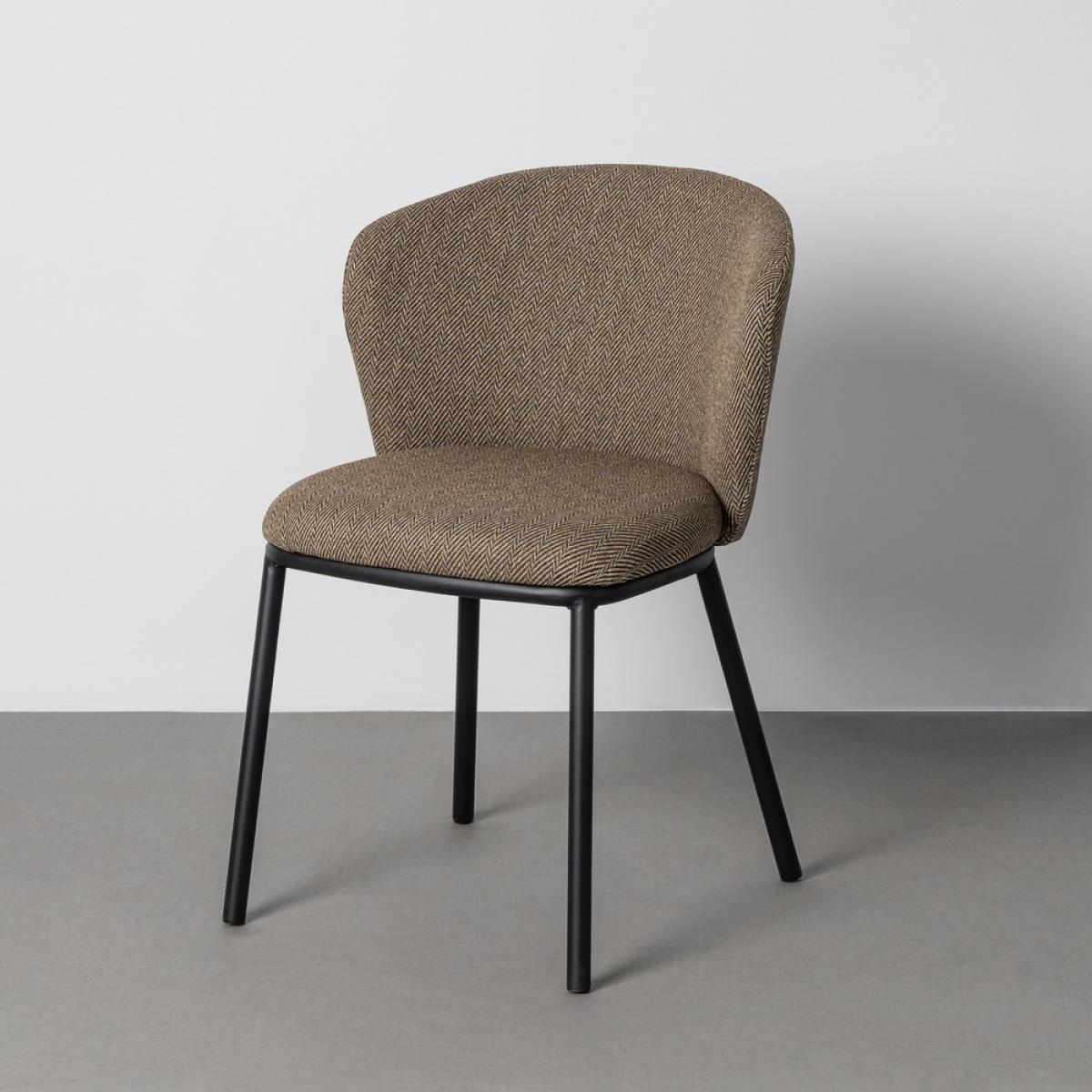 SILLA ESPIGA MARRÓN TEJIDO-METAL SALÓN 55 X 55 X 78 CM Material: tejido, metal. Altura asiento: 47cm. Ancho asiento: 45cm. Profundidad asiento: 43cm. Altura respaldo: 33cm. No apilable. Cuample la normativa EN16139 (catering).