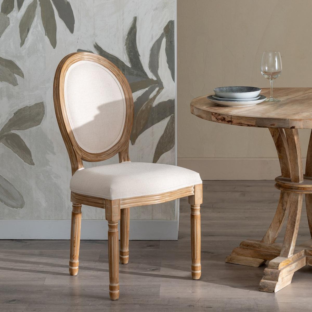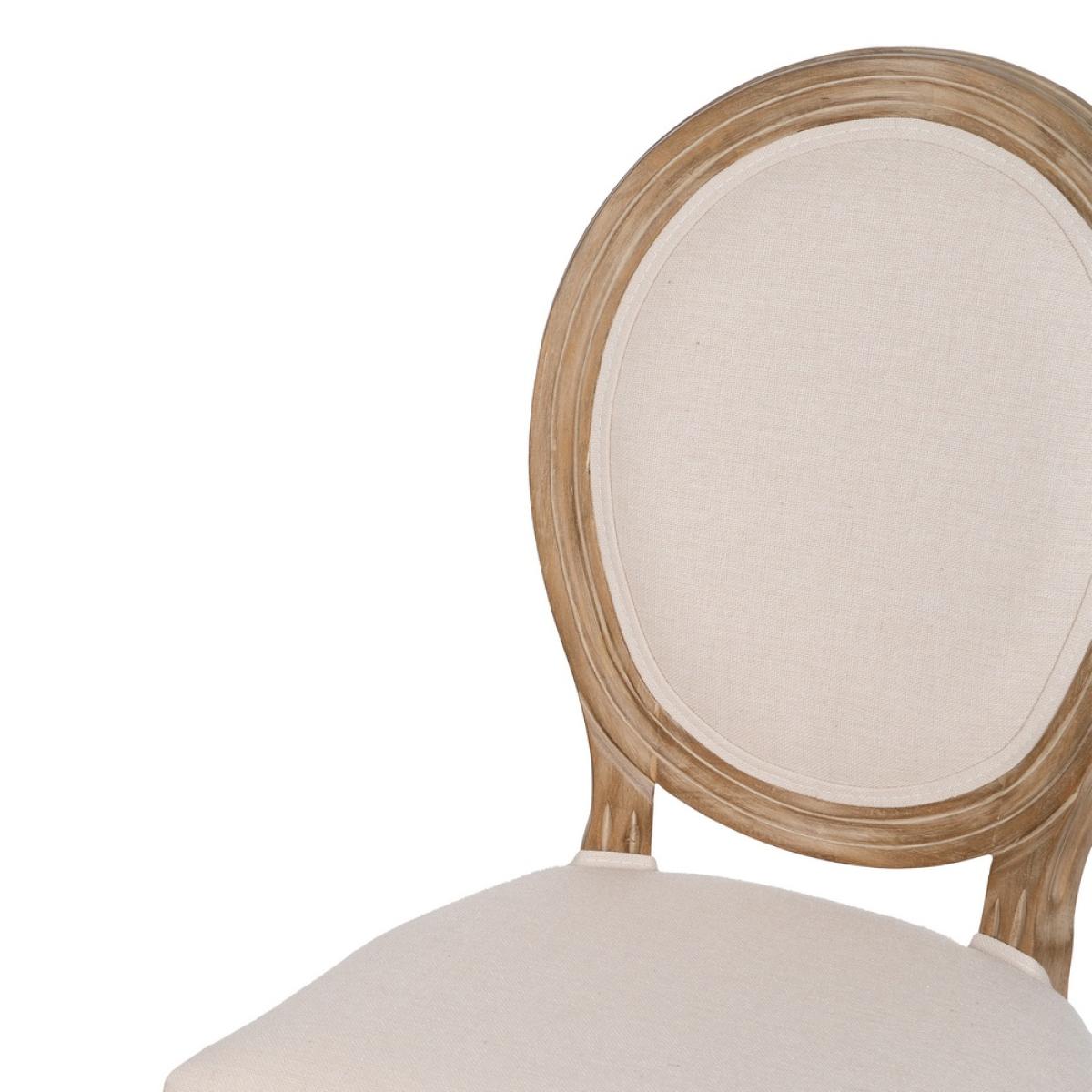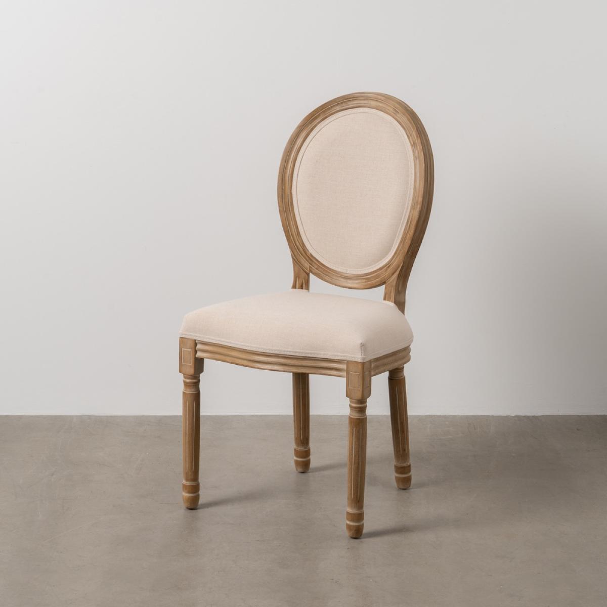 SILLA NATURAL-BLANCO TEJIDO-MADERA SALÓN 44 X 46 X 95 CM Madera del respaldo: Abedul. Madera de las patas: Caucho. Tejido:Lino. Altura del asiento:50cm Altura del respaldo:50cm. Altura de las patas:38 Medidas del asiento:48x41cm. Gramaje:330grs/m2. Relleno: esponja. Densidad del respaldo:24kgs/m3 Densidad del asiento:28kgs/m3. Peso máximo soportado:160kgs. No apilable. Cumple la normativa UNE-EN 12520:2015