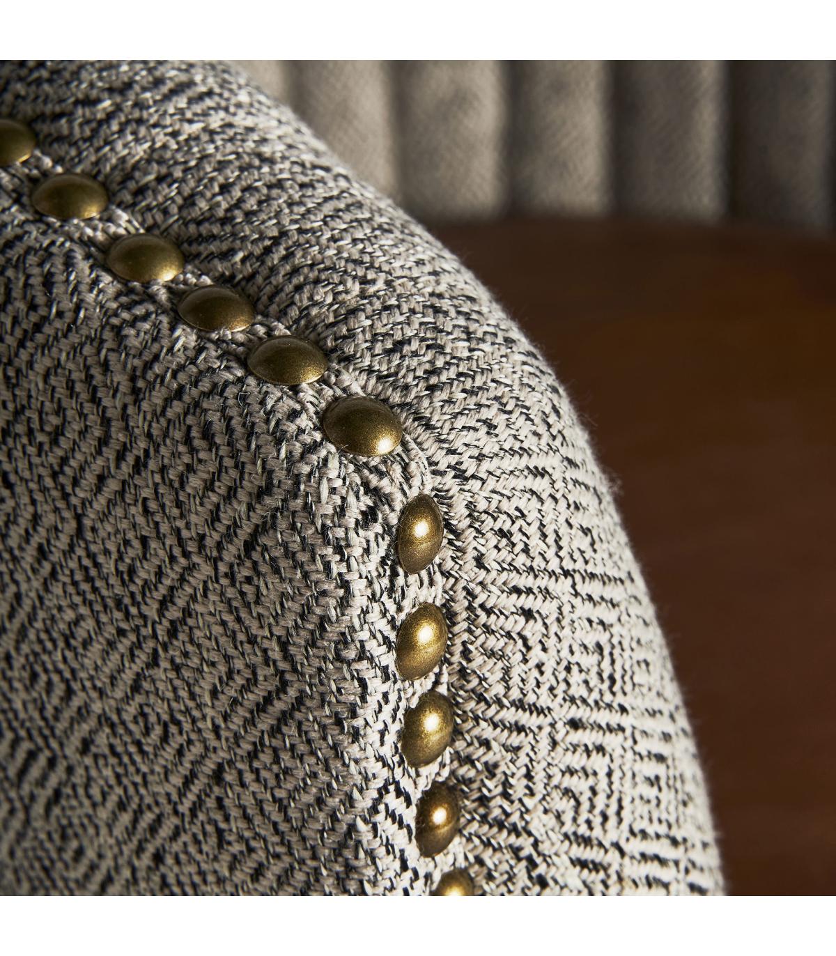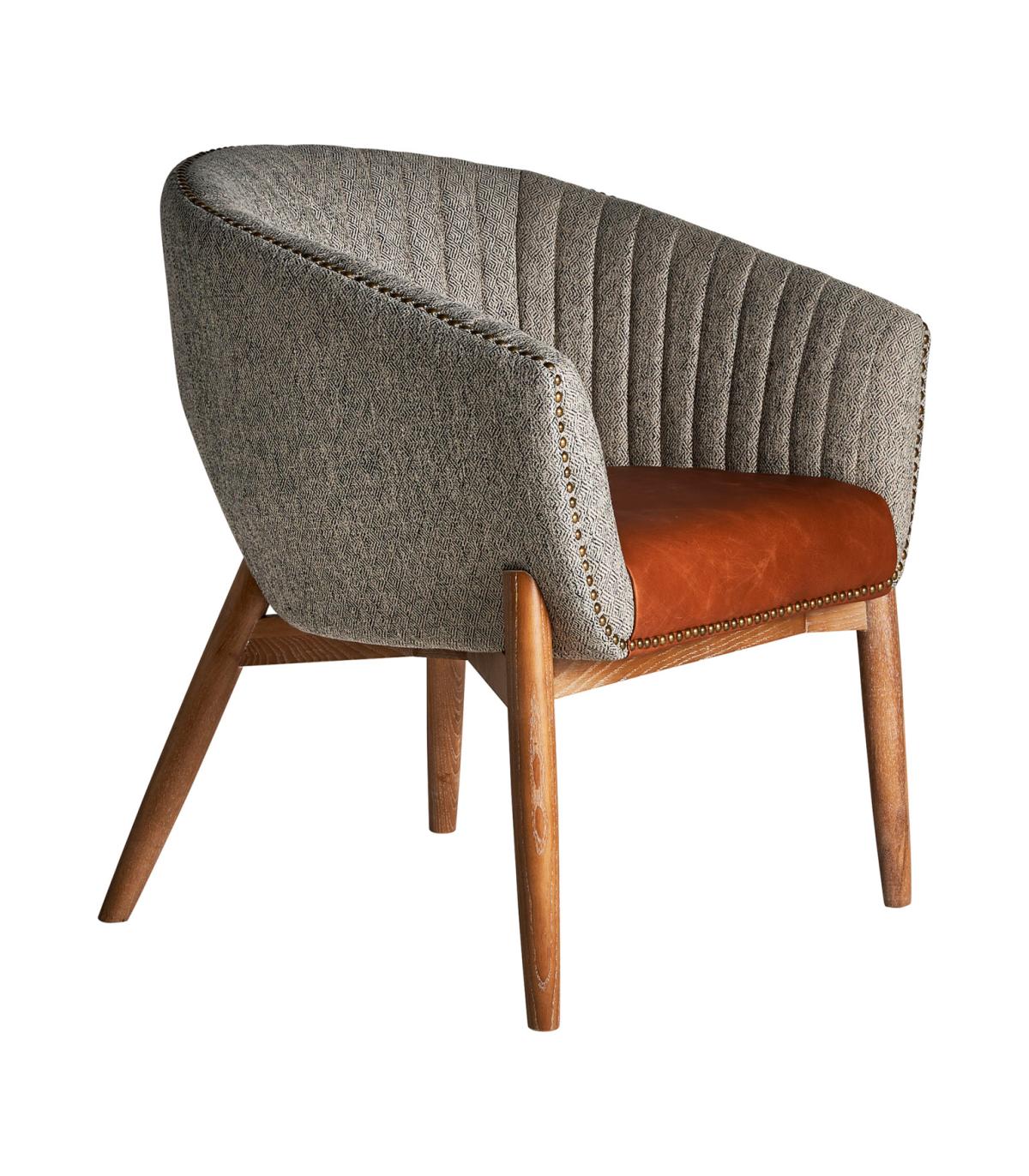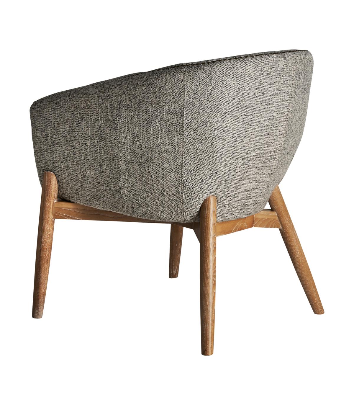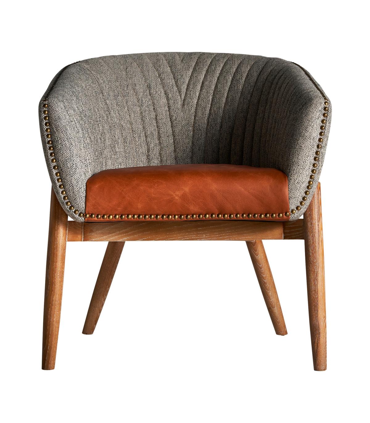 Sillón neive de estilo vintage fabricado en madera de fresno en color gris combinado con poliéster y piel.
