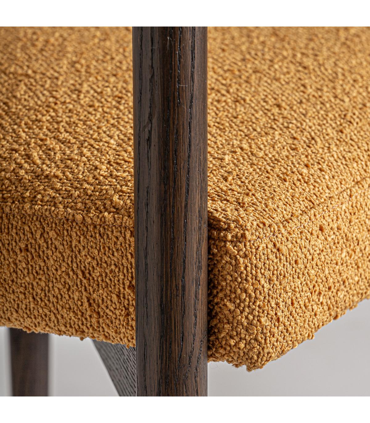 Silla neuffen de estilo art deco fabricado en poliéster en color mostaza combinado con madera de fresno.