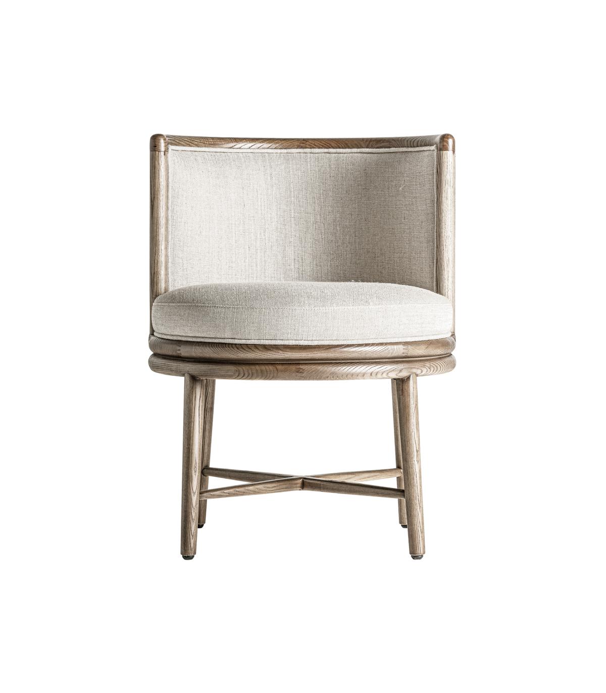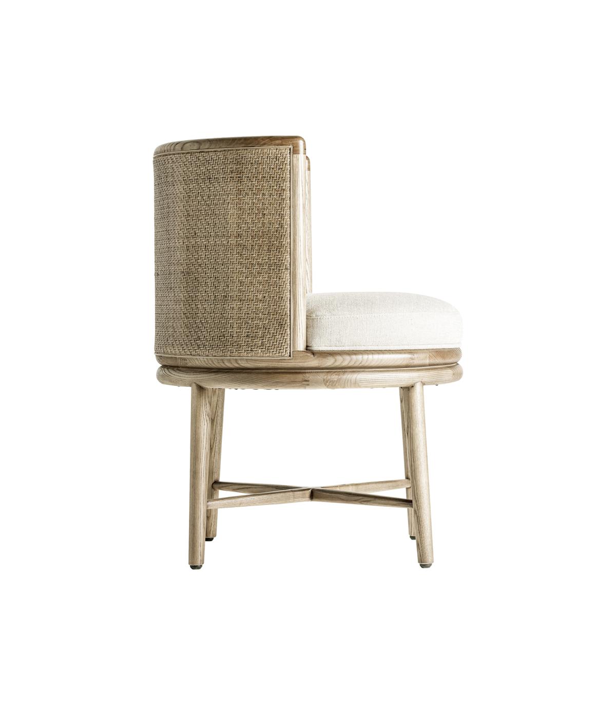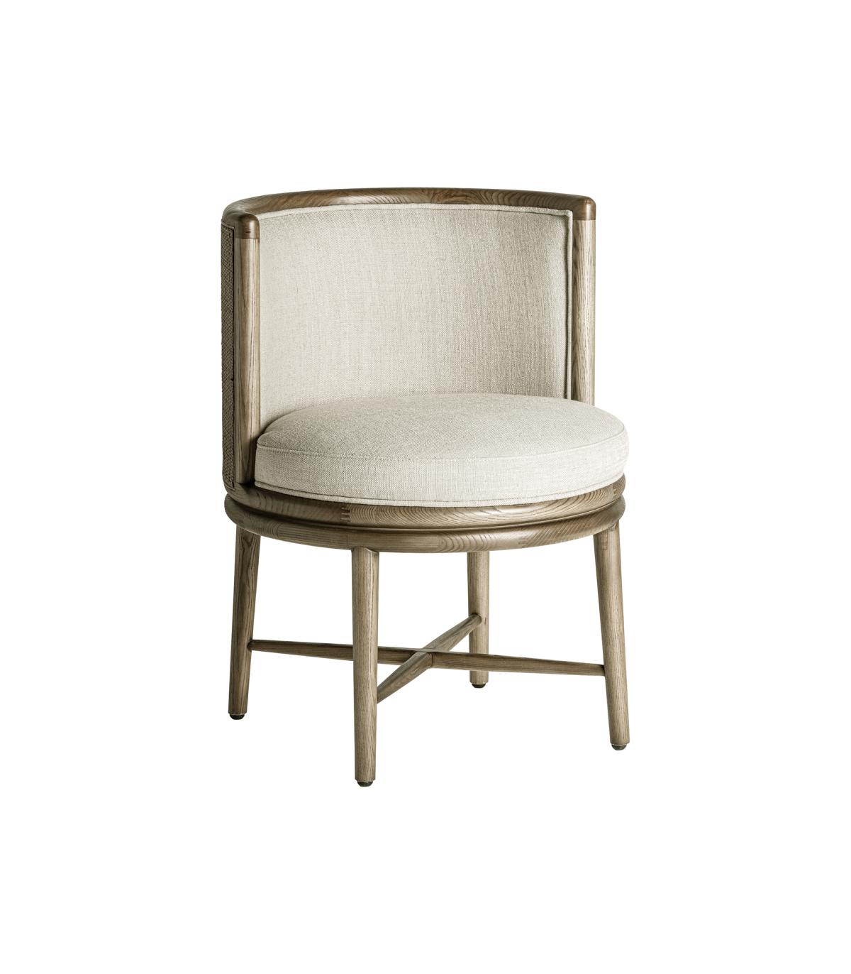 Silla varaire de estilo colonial fabricado en madera roble en color marrón combinado con poliéster en color blanco.