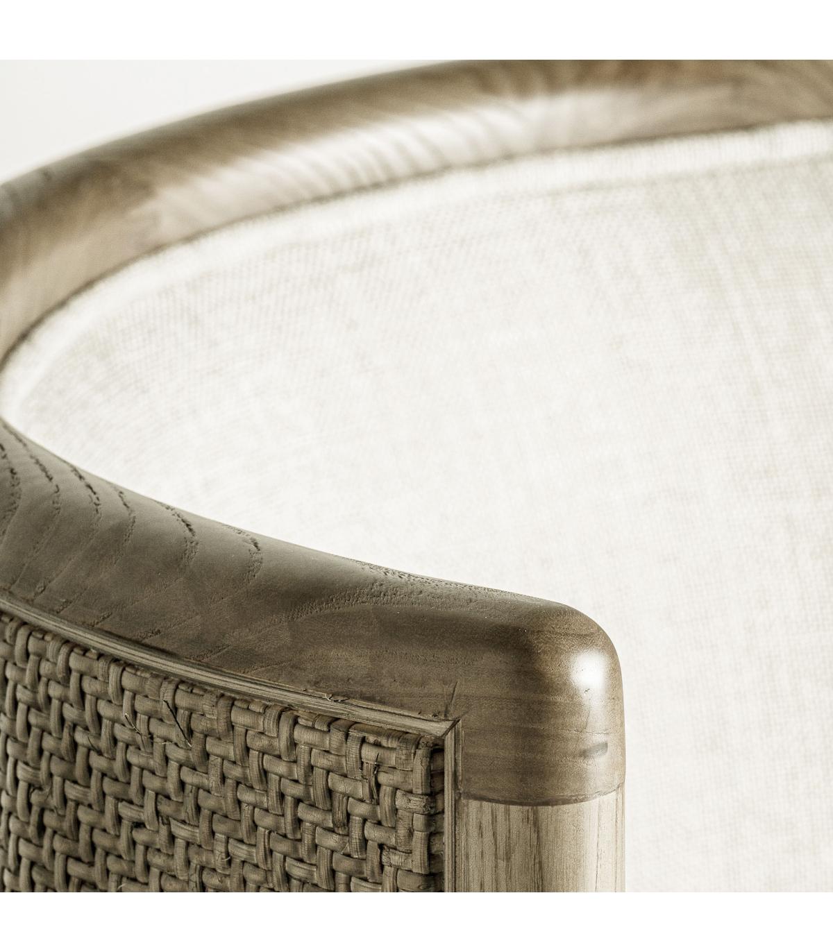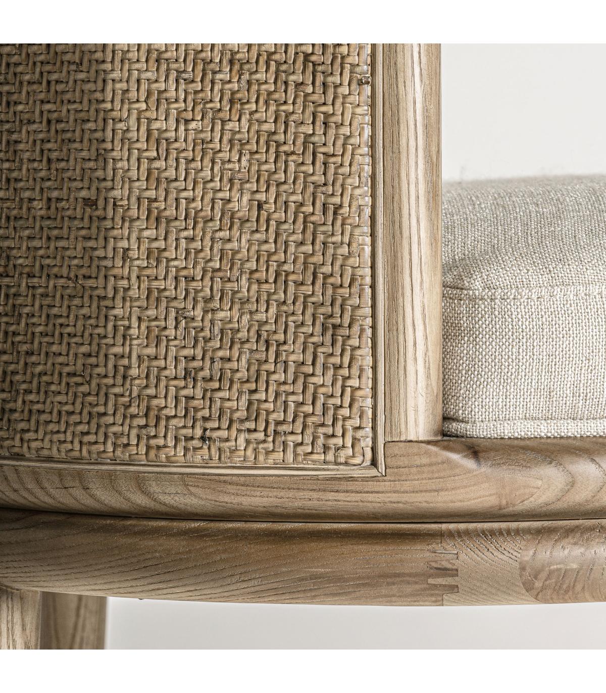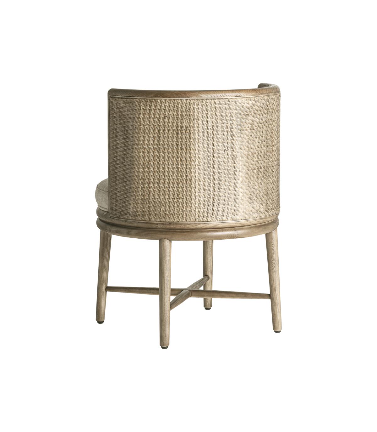 Silla varaire de estilo colonial fabricado en madera roble en color marrón combinado con poliéster en color blanco.
