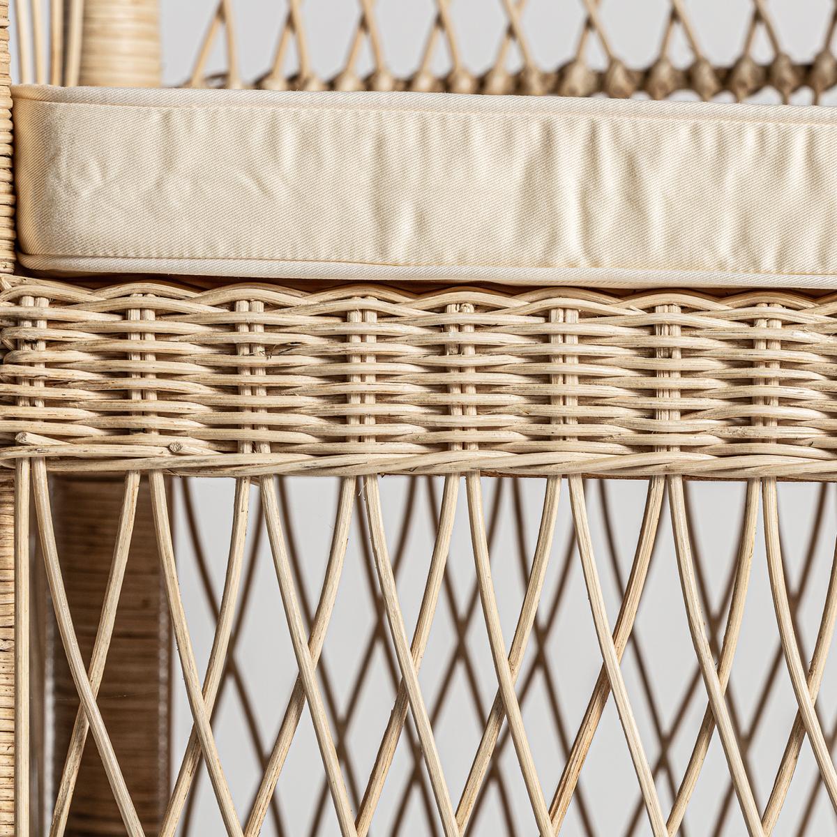 Sillón elna de estilo contemporáneo fabricado en ratán en color marrón combinado con madera mindi y algodón. Producto desenfundable.