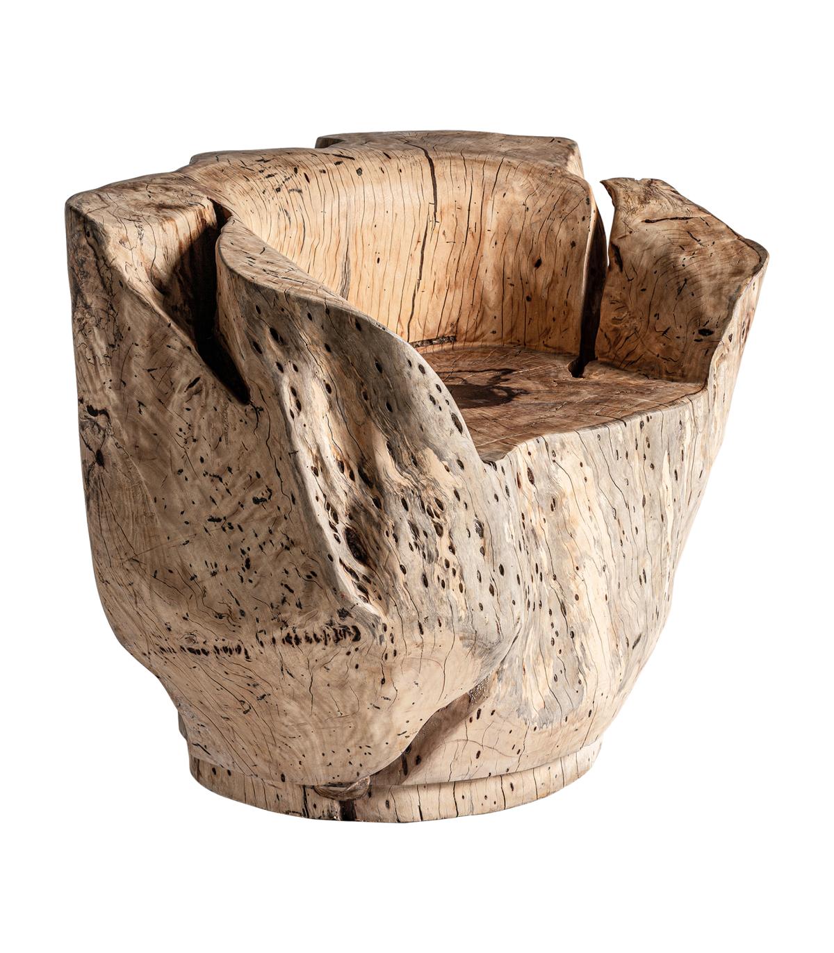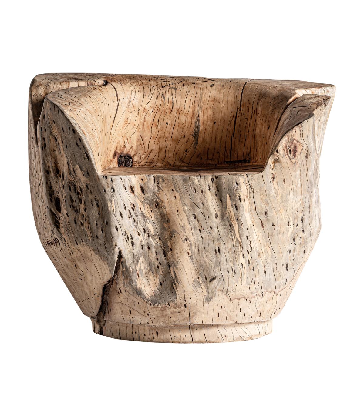 Sillón dharm en color natural envejecido de estilo étnico. Fabricado en madera de tamarindo.