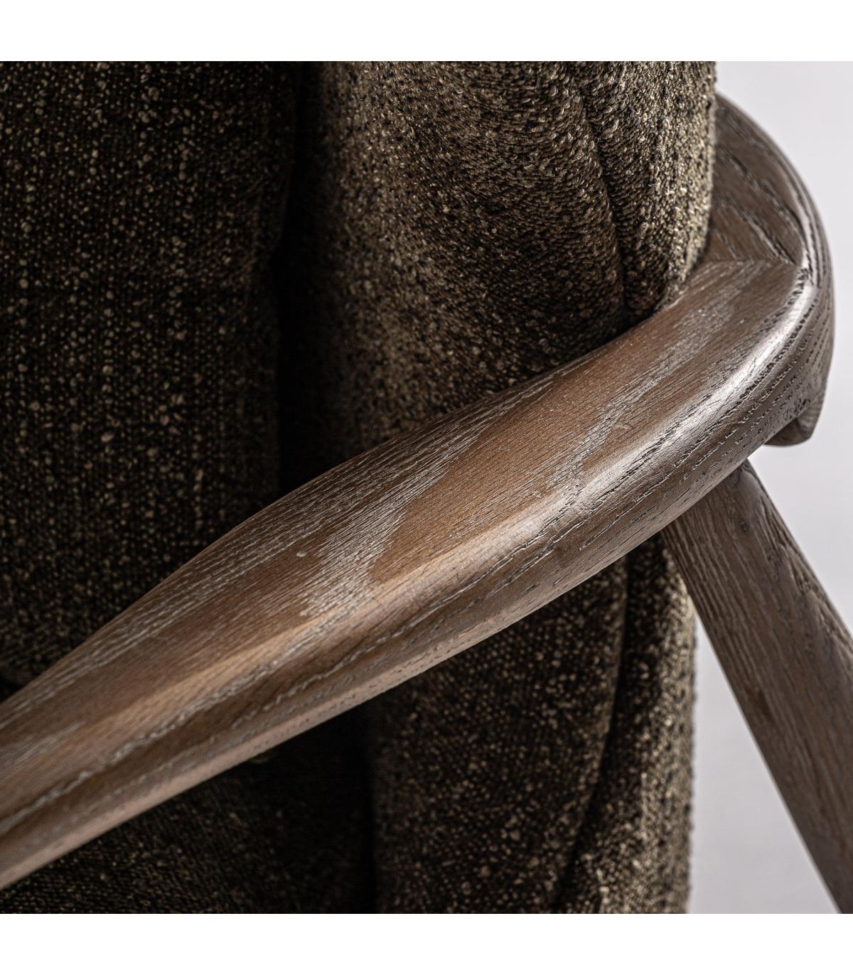 Sillón tarres en color verde de estilo contemporáneo. Fabricado en madera de fresno combinado con poliéster y espuma.