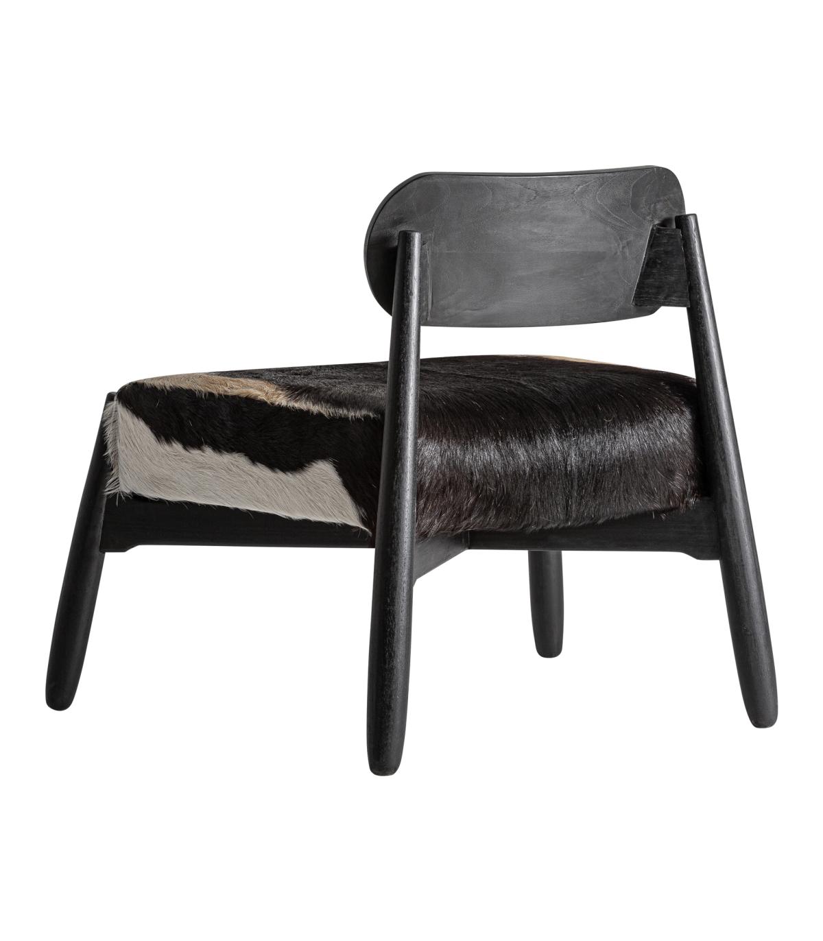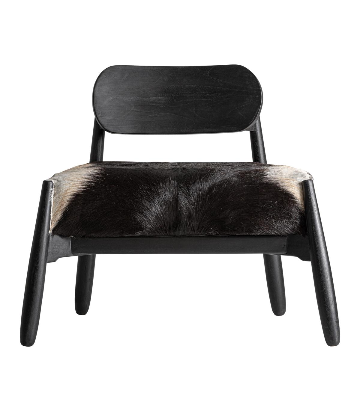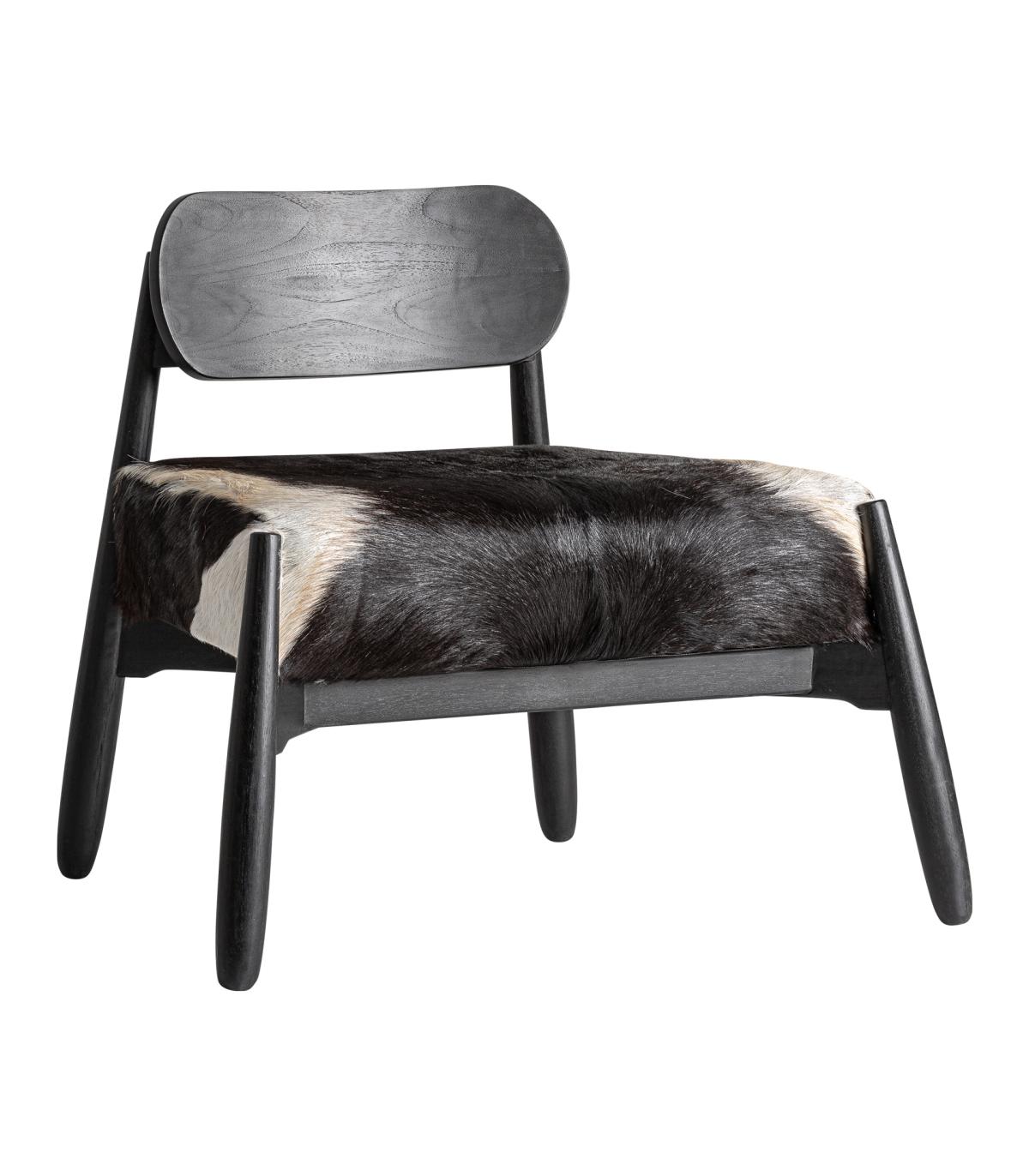 Sillón fabricado en madera de teka en color negro combinado con piel en color blanco en color negro.