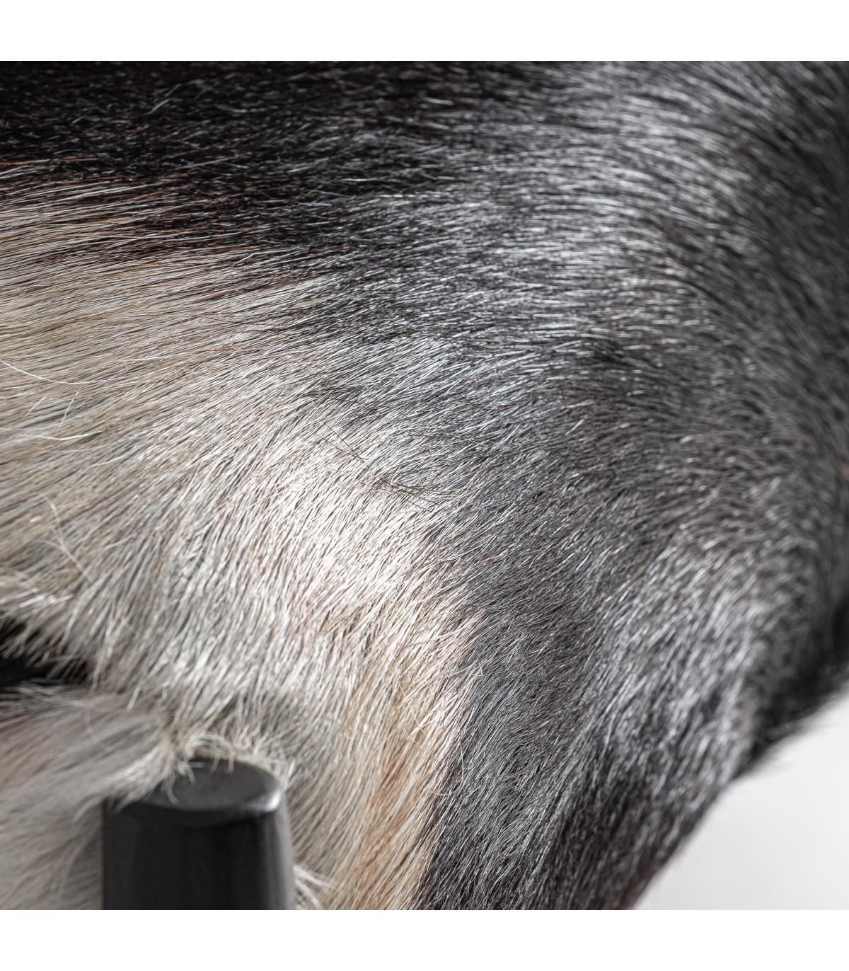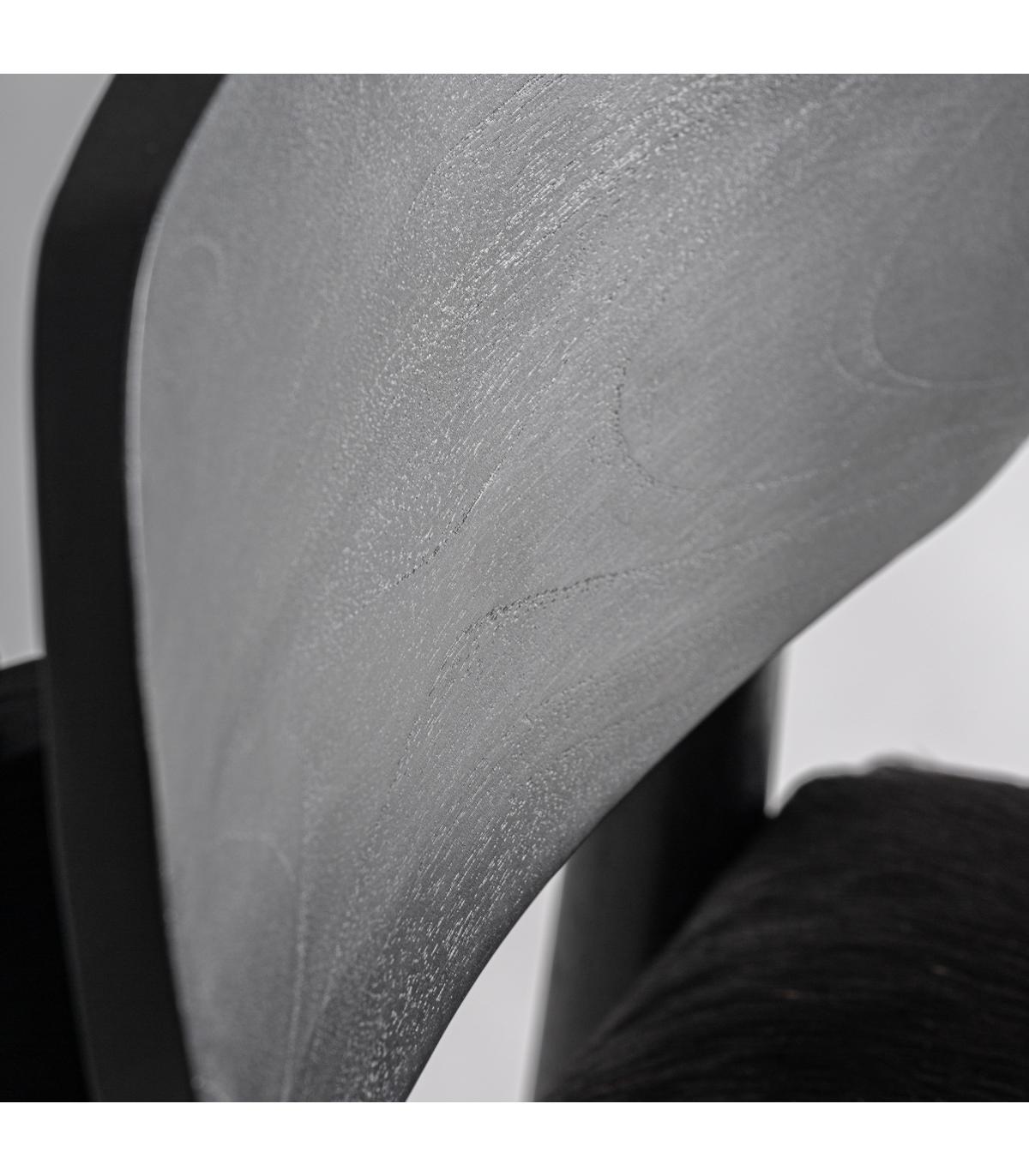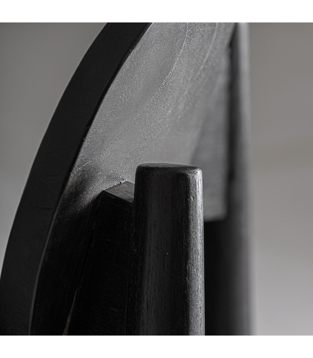 Sillón fabricado en madera de teka en color negro combinado con piel en color blanco en color negro.