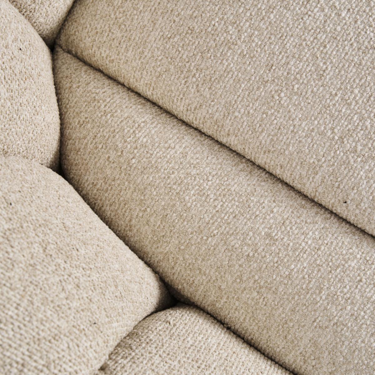 Sillón fabricado en poliéster en color beige combinado con espuma y madera.