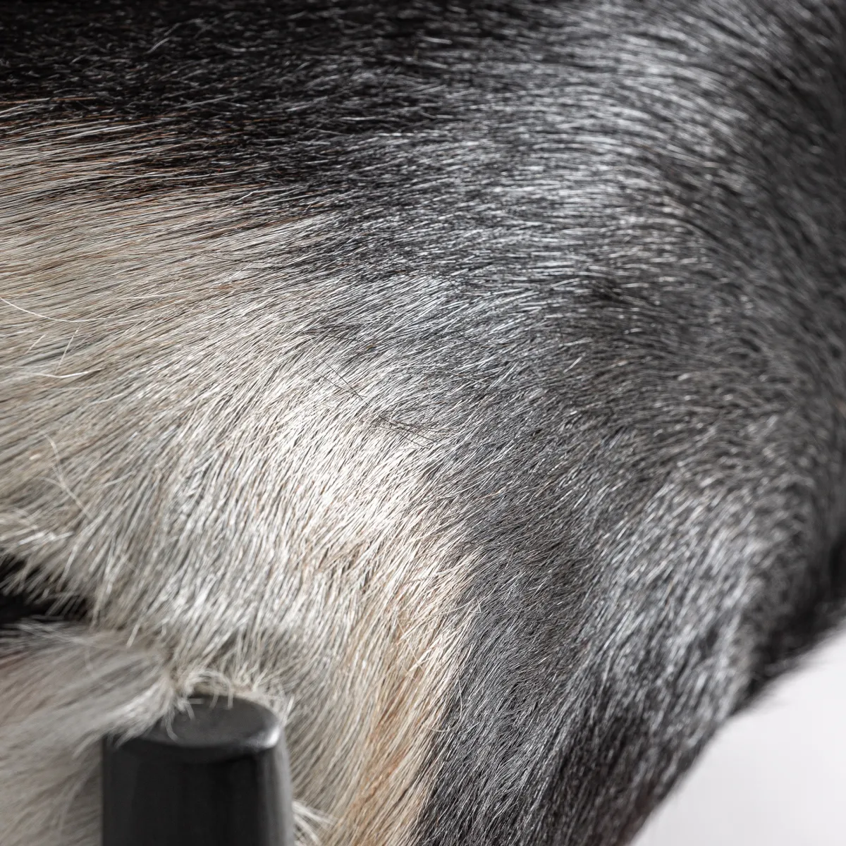 Sillón fabricado en madera de teka en color negro combinado con piel en color blanco en color negro.