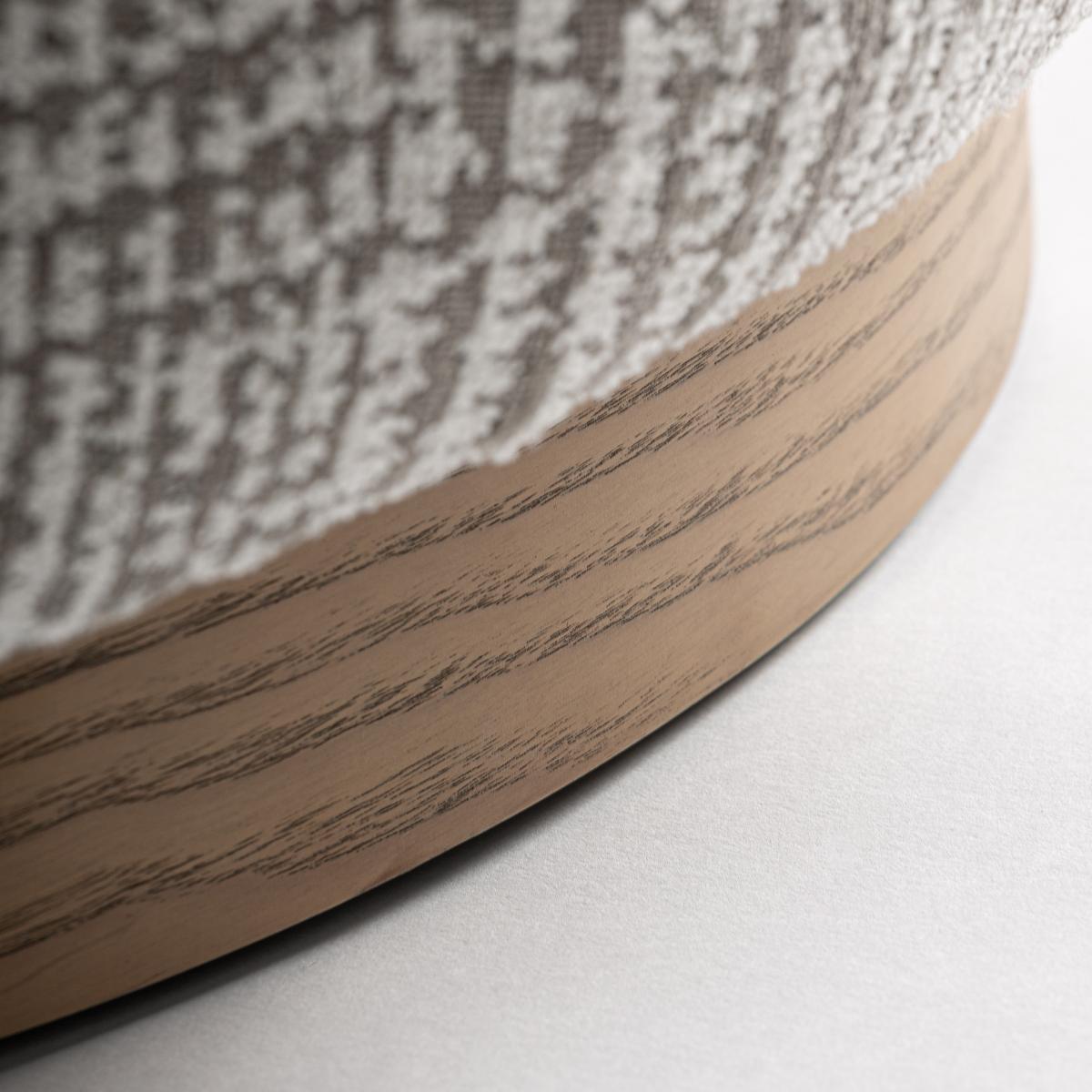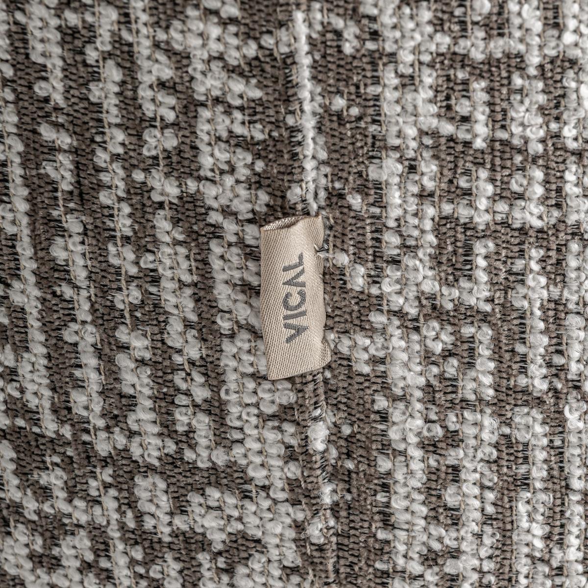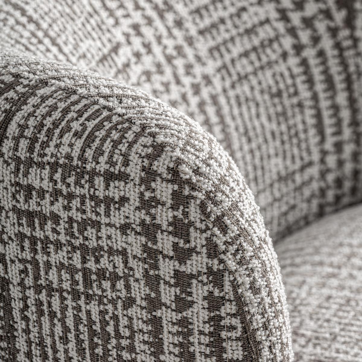 Sillón fabricado en poliéster en color verde con acabado jaspeado combinado con madera de pino en color marrón y espuma.