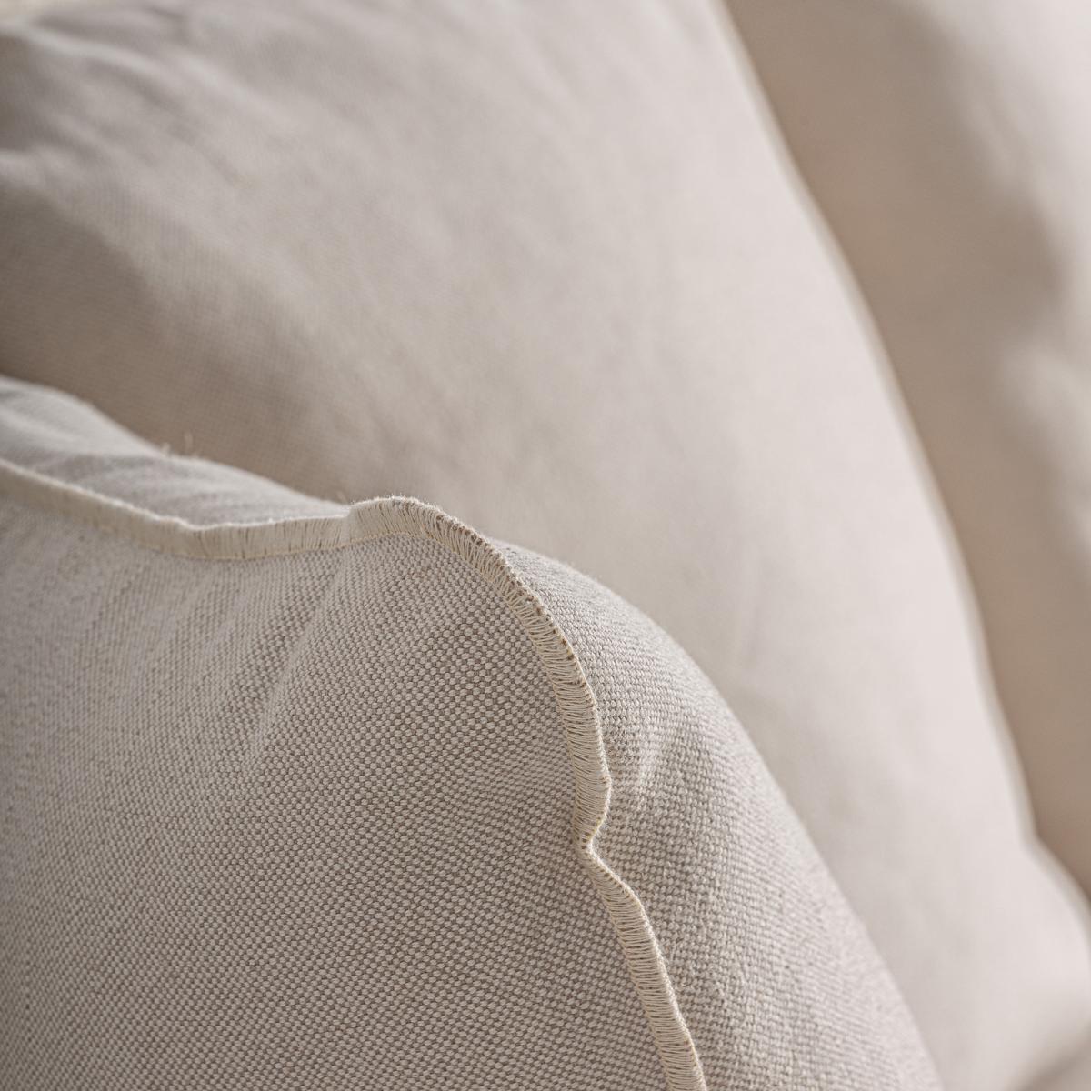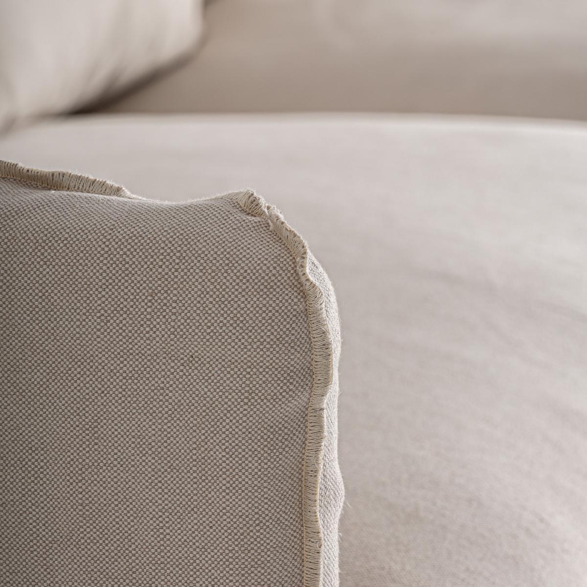 Sofá Bardney de estilo clásico fabricado en lino en color beige combinado con algodón y espuma.