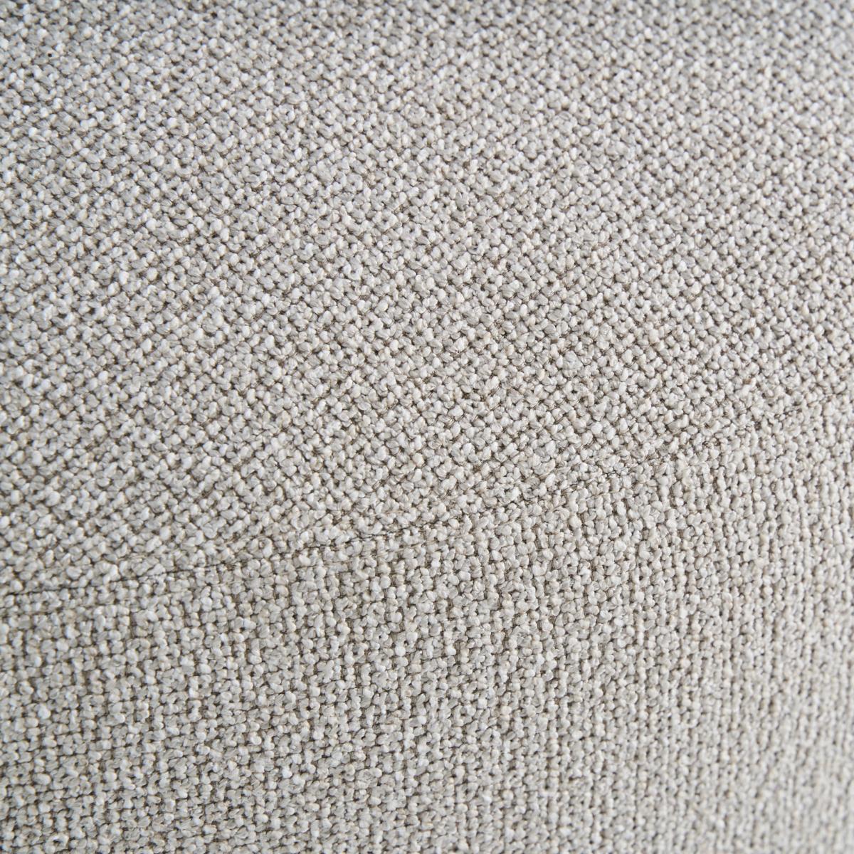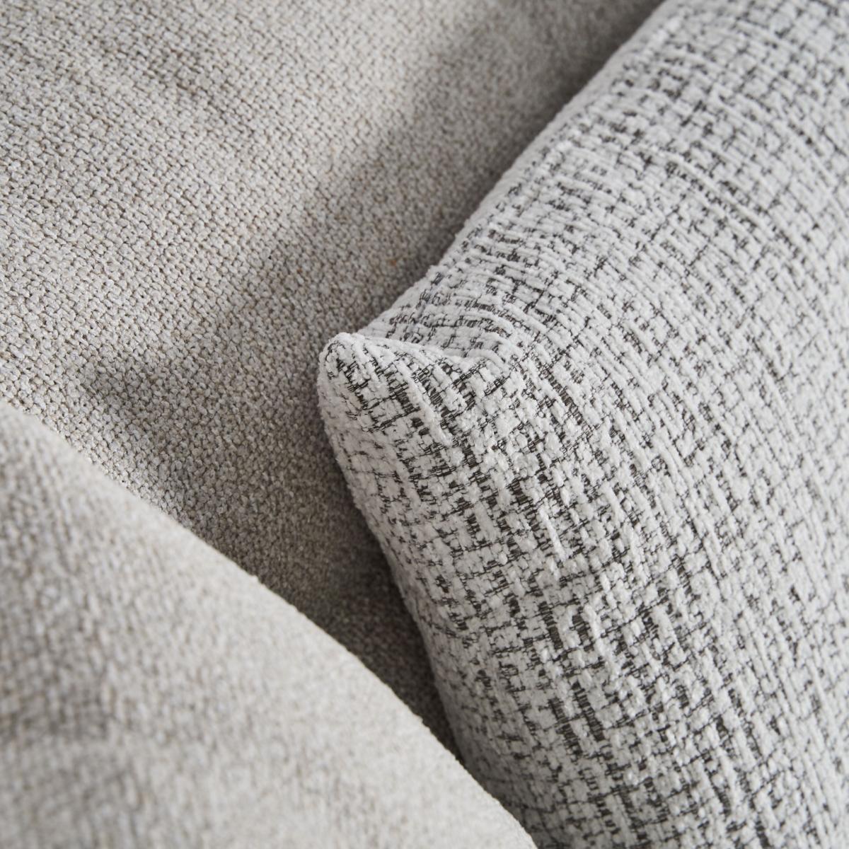 Sofá modular fabricado en poliéster en color blanco roto combinado con madera.
