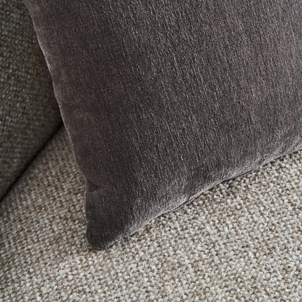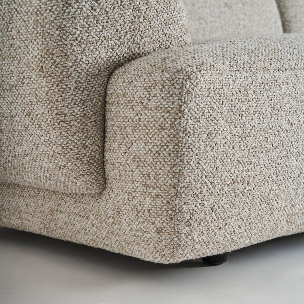 Sofá fabricado en poliéster en color beige combinado con madera.