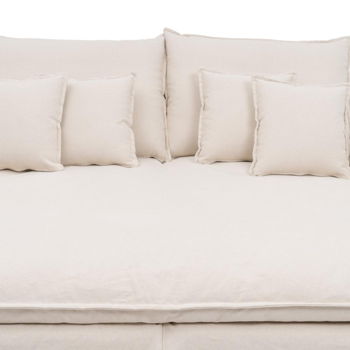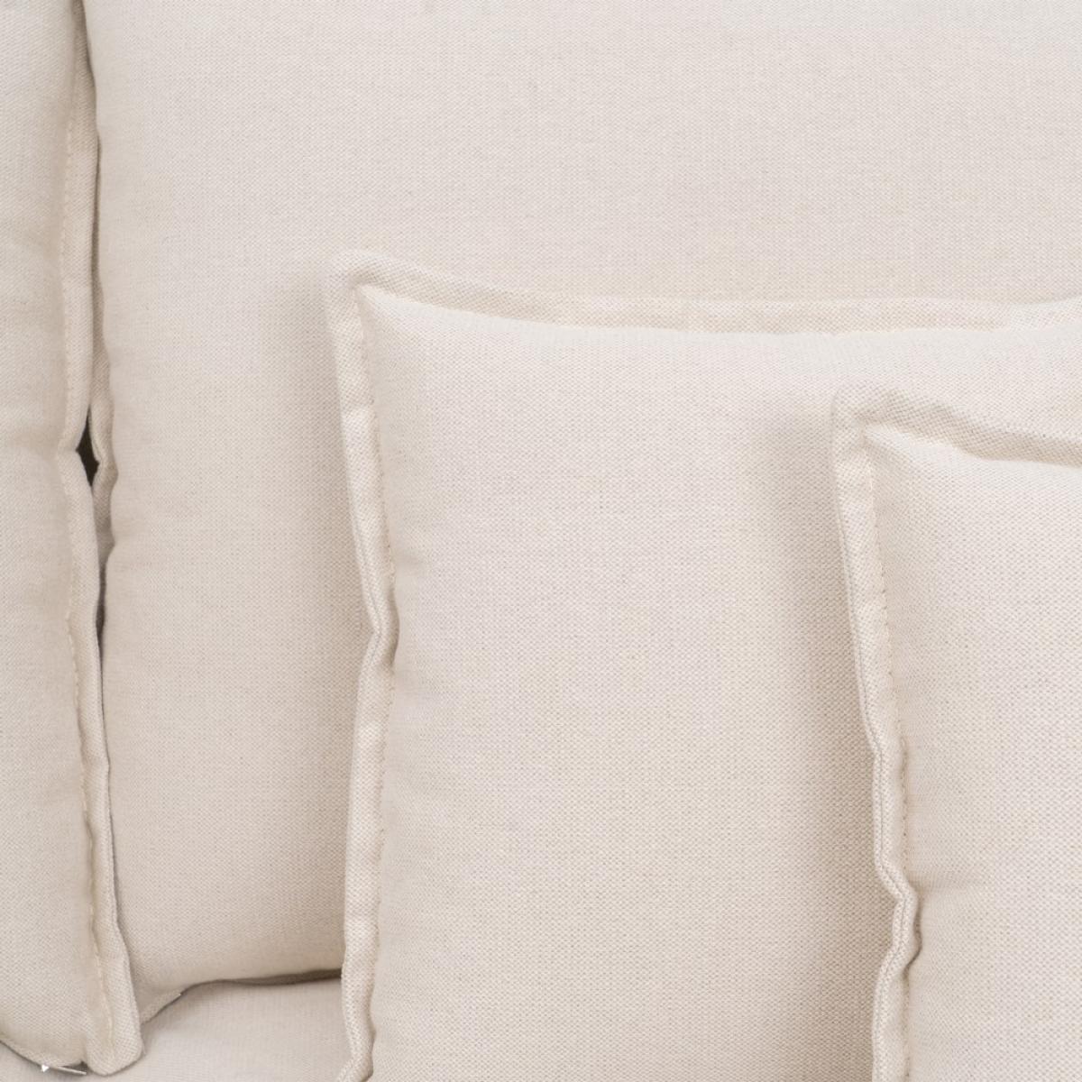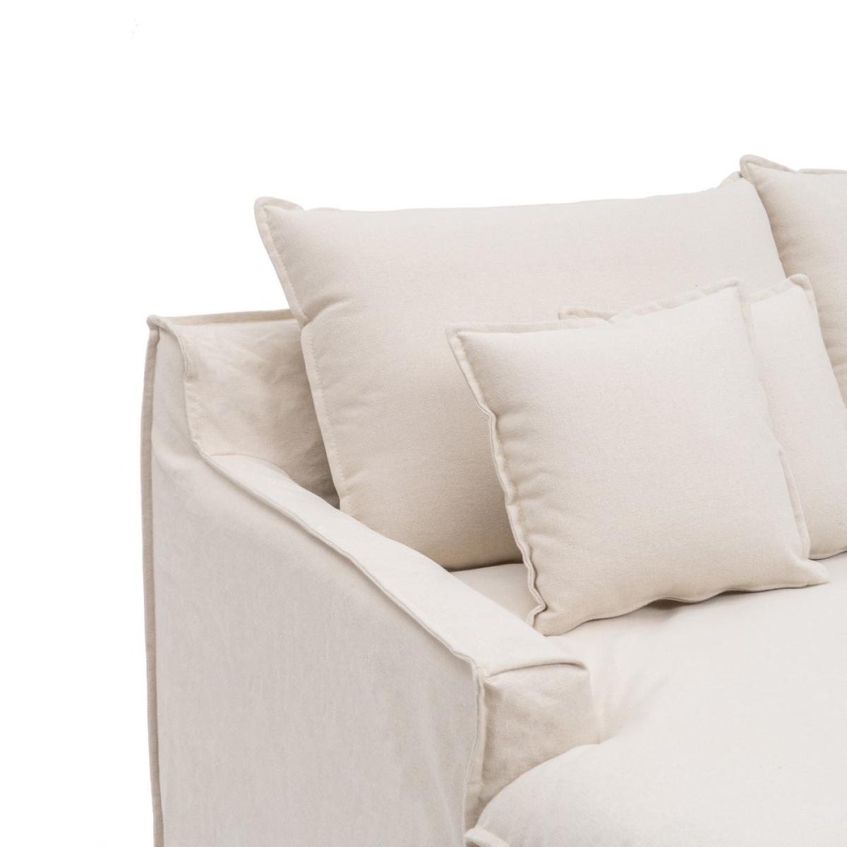 SOFÁ CHAISE LONGUE BEIGE TEJIDO SALÓN 190 X 165 X 95 CM Modelo desenfundable Tejido: 60% algodón / 40% lino. 390 gr./m2 gramaje. Estructura: madera de pino y aglomerado. Altura del asiento: 46 cm. Altura respaldo: 52 cm. Altura del reposabrazos desde el suelo:60 cm. Altura del reposabrazos desde el asiento:15 cm. Altura pata:12 cm. Material:pino Profundo asiento: 126 cm. Ancho asiento: 150cm. Viene desmontado en dos piezas. Almohadones del asiento: foam, densidad 30kg/m3. fibra y visco. Incluye cojines decorativos. Cojines respaldo y asiento desenfundables con cremallera. Solo lavado en seco.