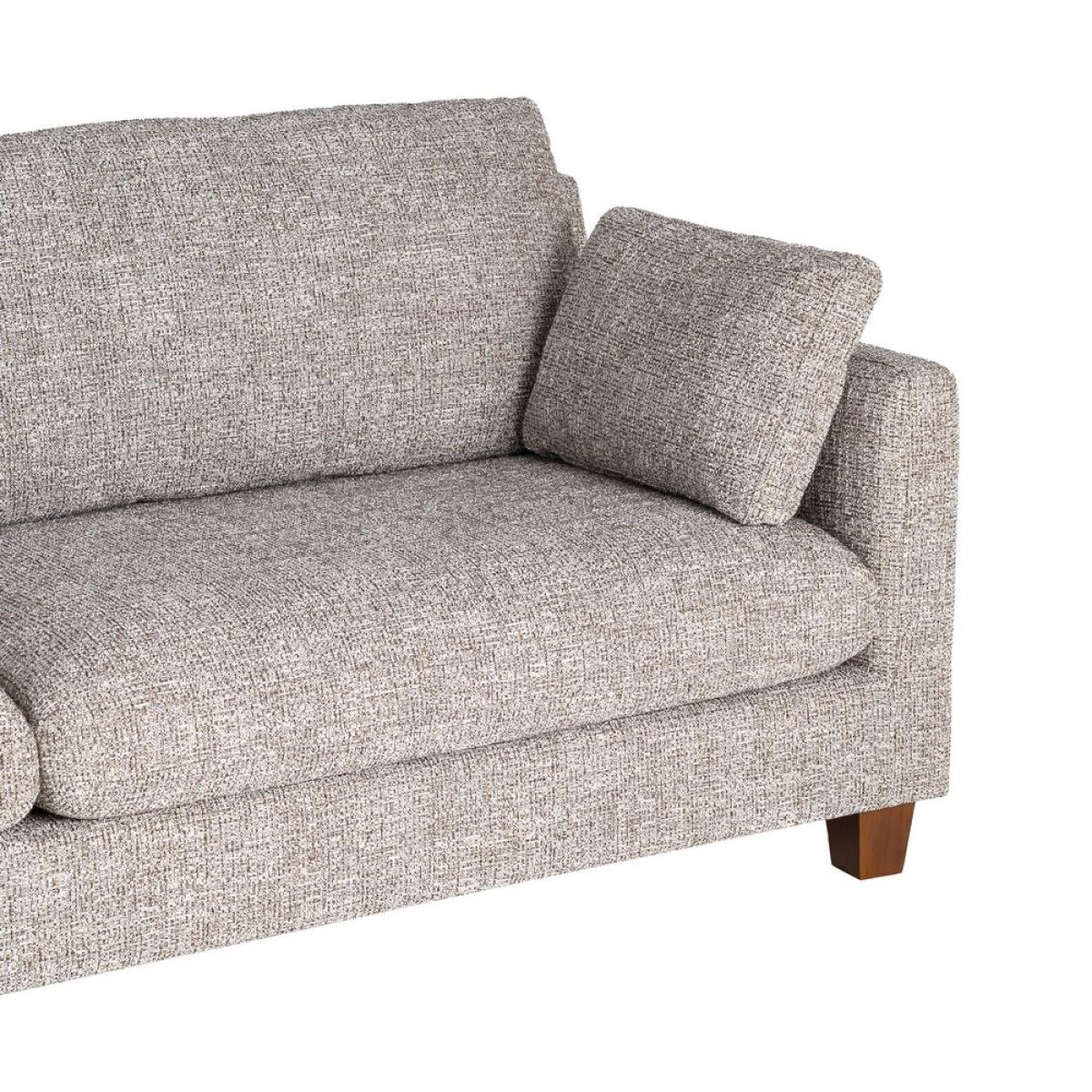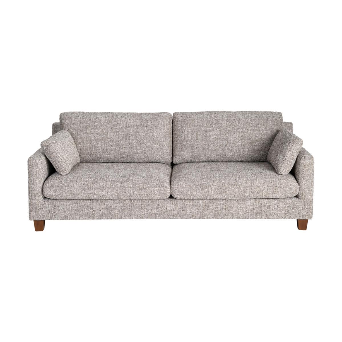 SOFÁ 3 PLAZAS GRIS OSCURO TEJIDO-MADERA 221 X 90 X 87 CM Material: estructura madera Patas: madera de caucho Tejido: 100% poliéster Gramaje: 390gsm. Cojines respaldo, laterales y asiento desenfundables con cremallera. Medida cojines laterales: 50x30cm. Altura respaldo (desde asiento): 48cm. Profundo asiento: 55cm. Ancho asiento: 198cm. Altura reposabrazos (desde suelo):62cm. Altura asiento: 44cm. Altura patas: 10cm. Patas para montar. Cumple normativa: EN12520:2016