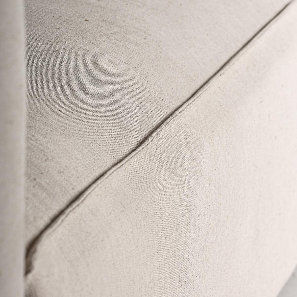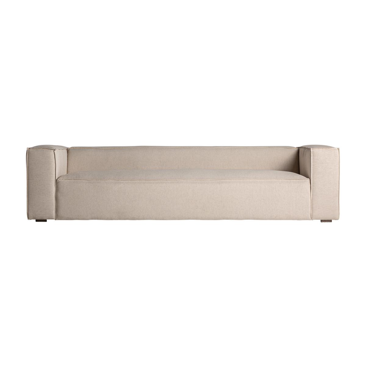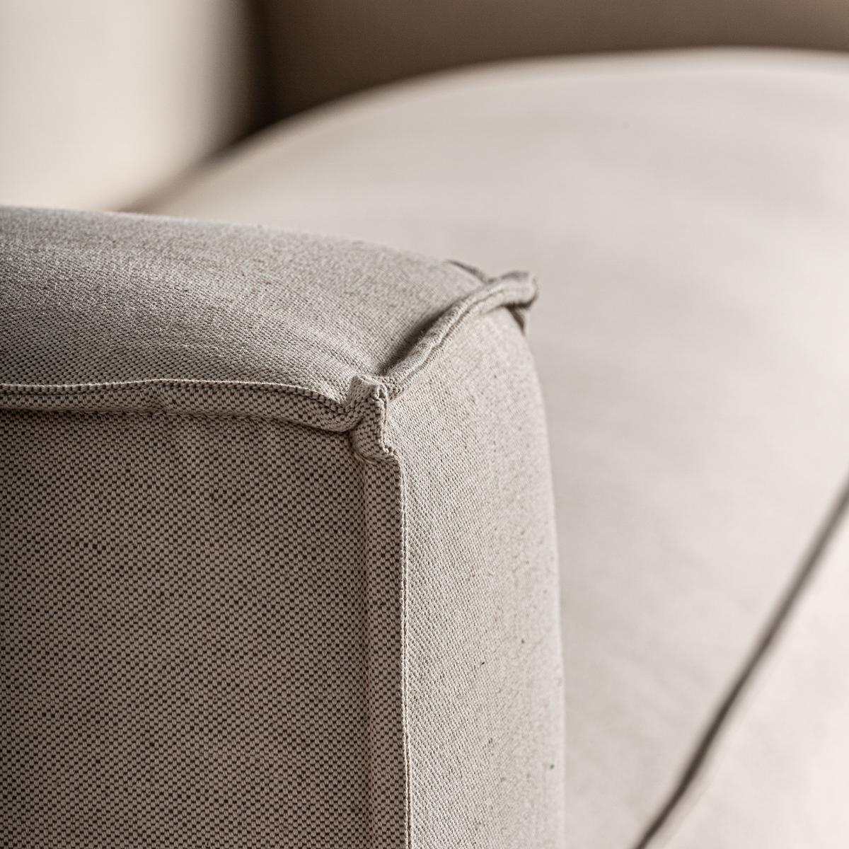 Sofá krakau de estilo art deco, fabricado en lino en color beige, combinado con algodón en color beige y madera de fresno en color marrón. Producto desmontable.