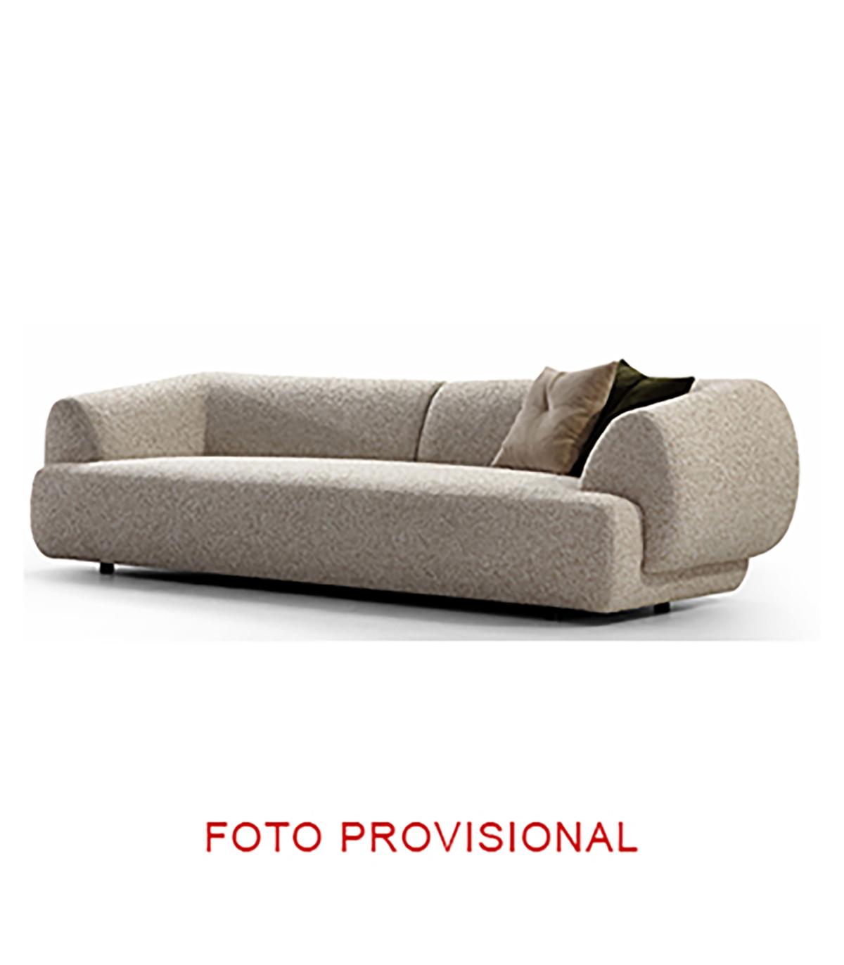 Sofá fabricado en poliéster en color beige combinado con madera.