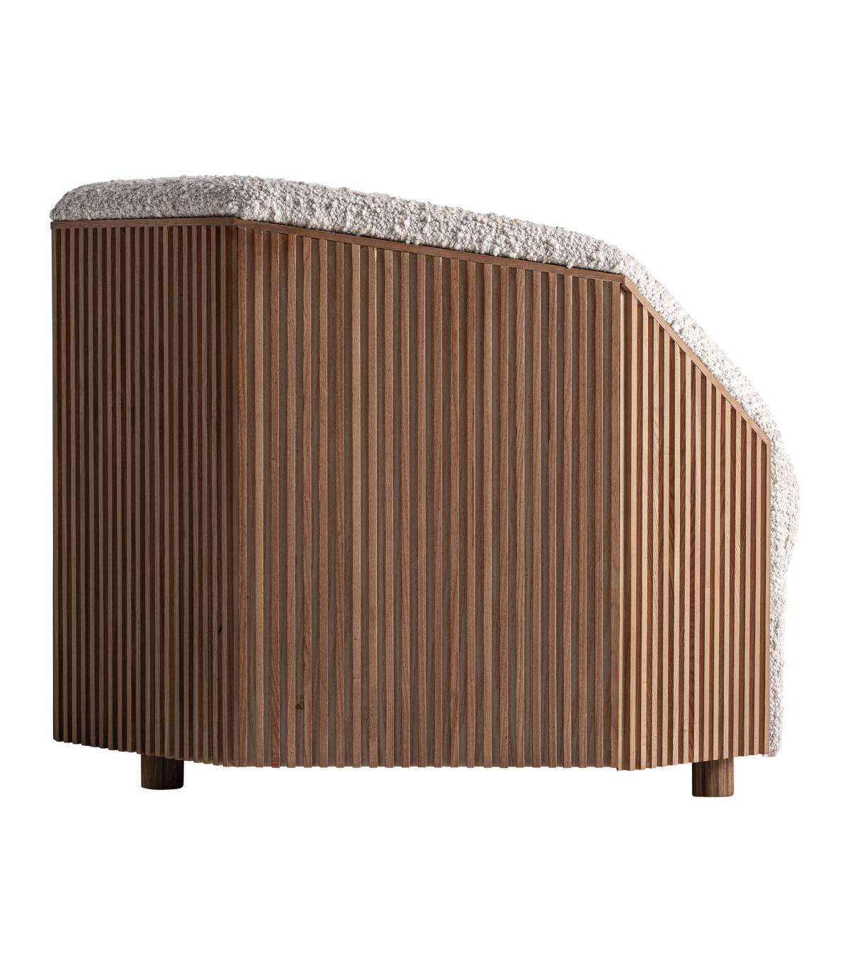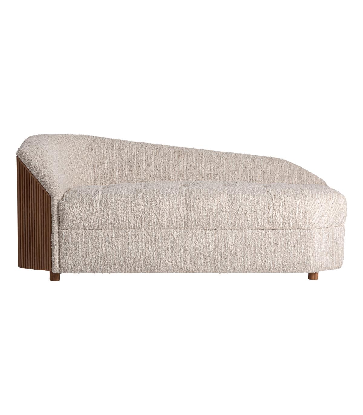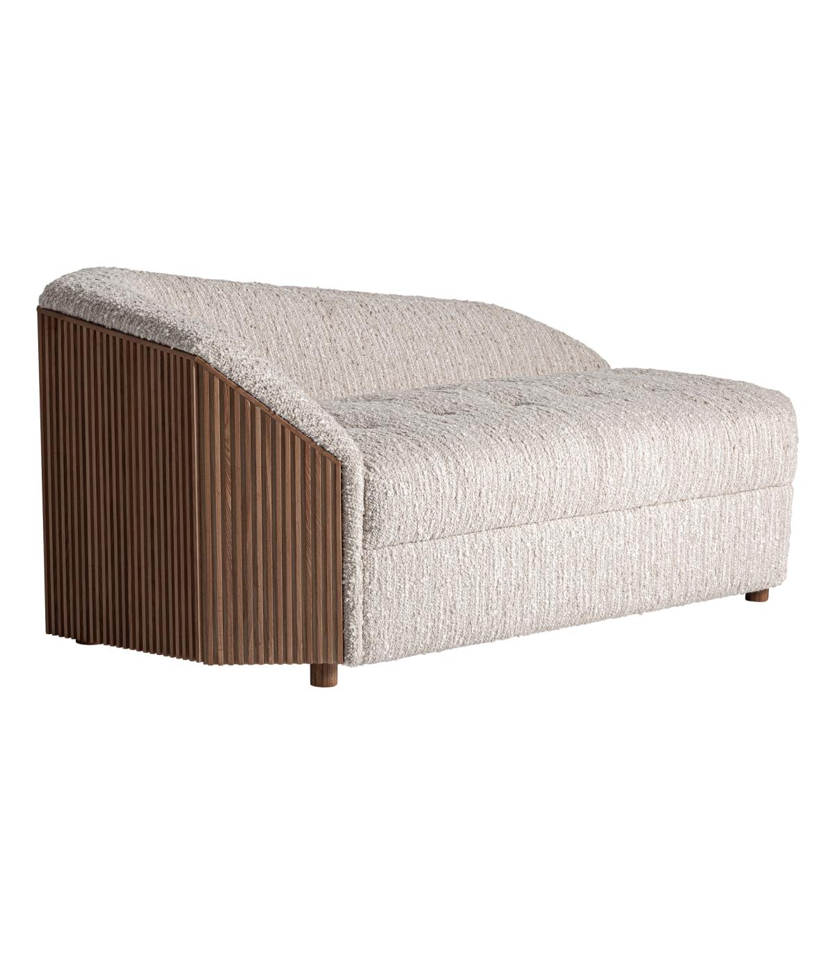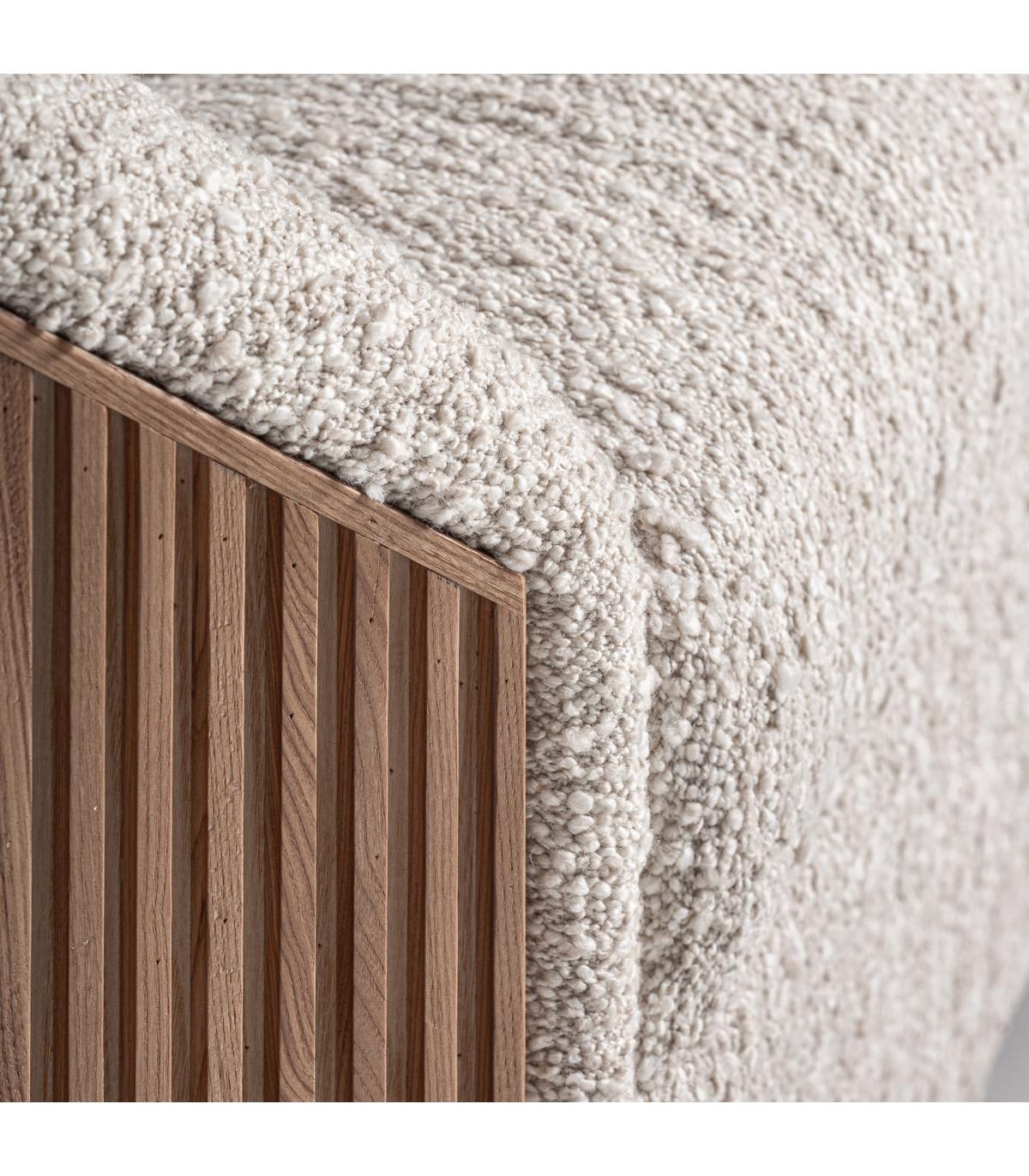 Sofá fabricado en poliéster combinado con espuma y madera roble.