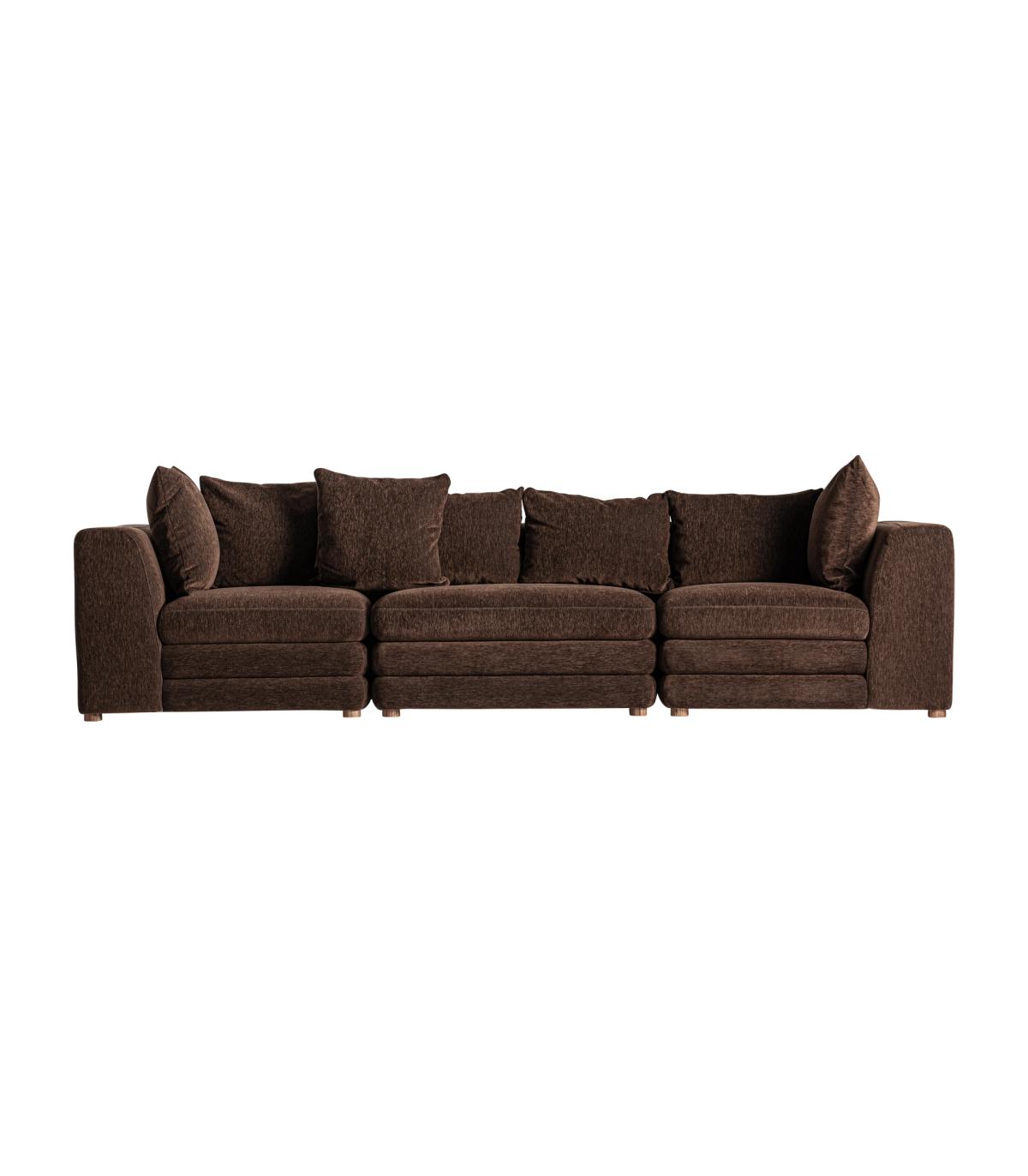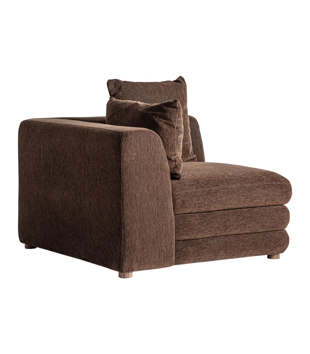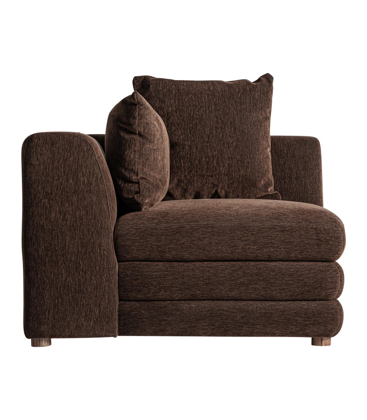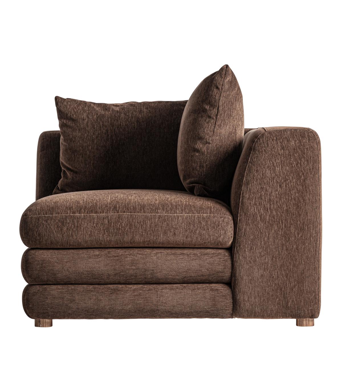 Módulo sofá esquinero fabricado en poliéster combinado con espuma y madera de caucho en color negro.