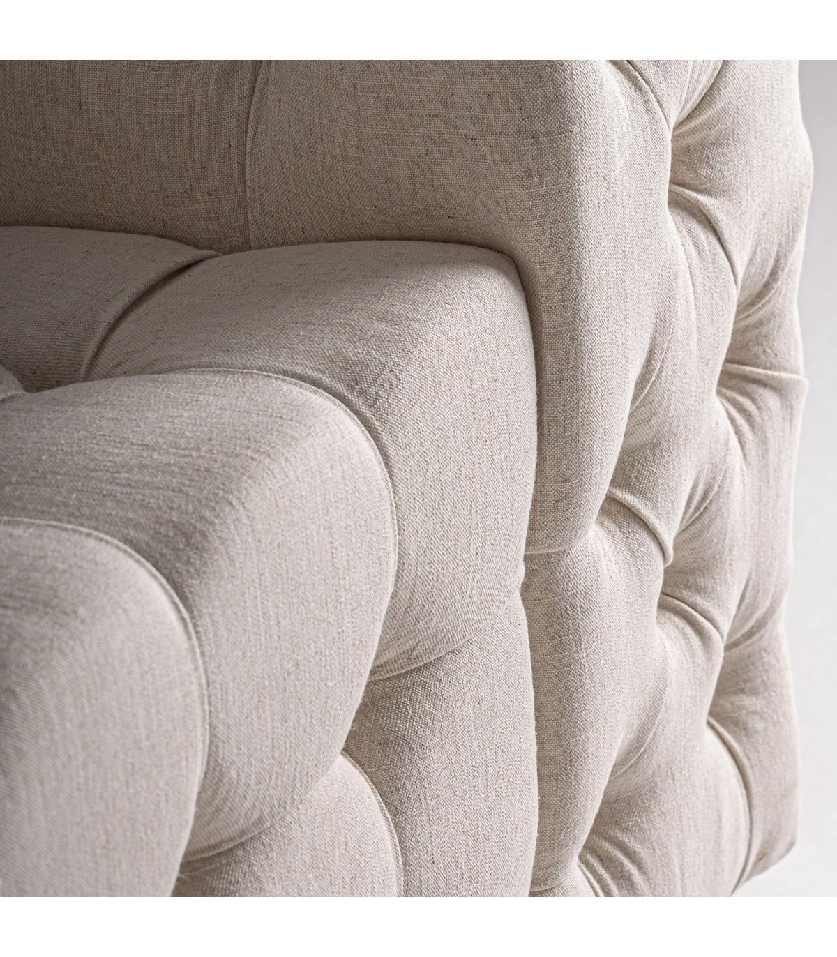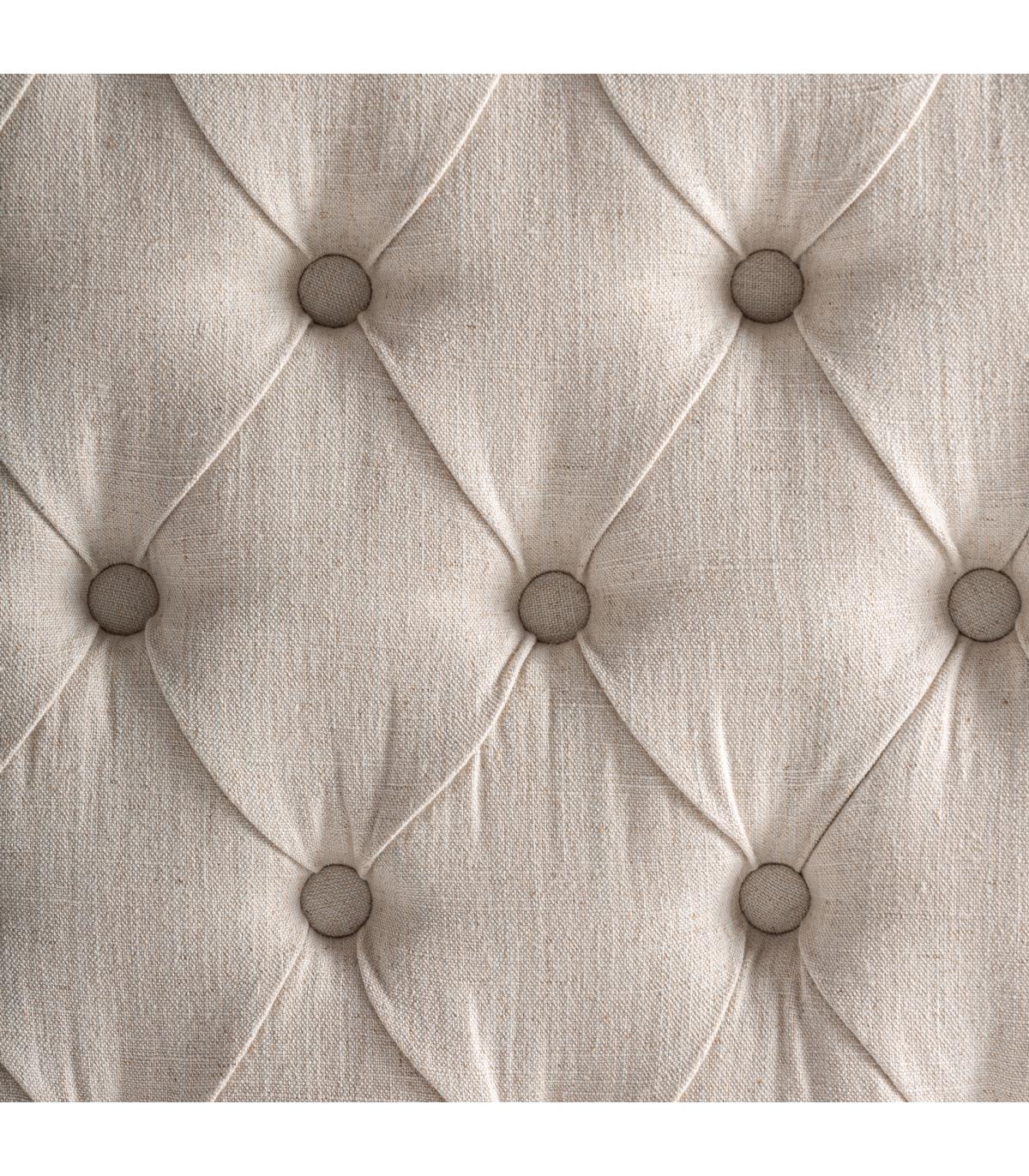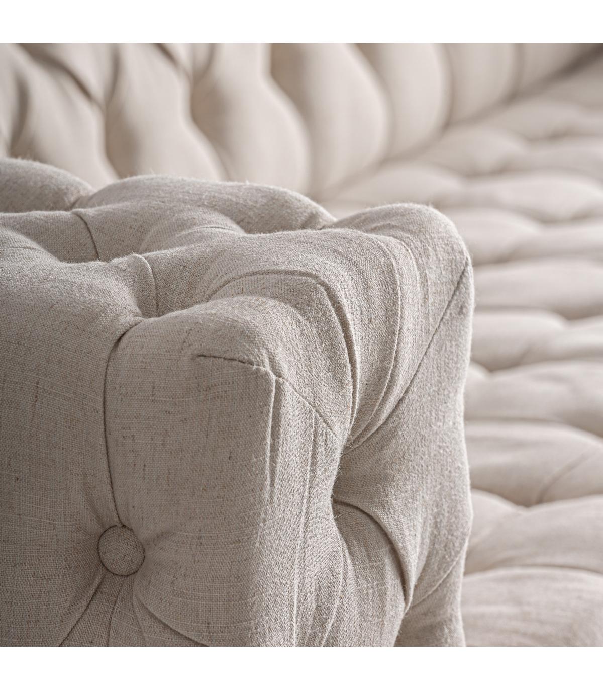 Sofá fabricado en madera de fresno en color marrón combinado con terciopelo en color beige.