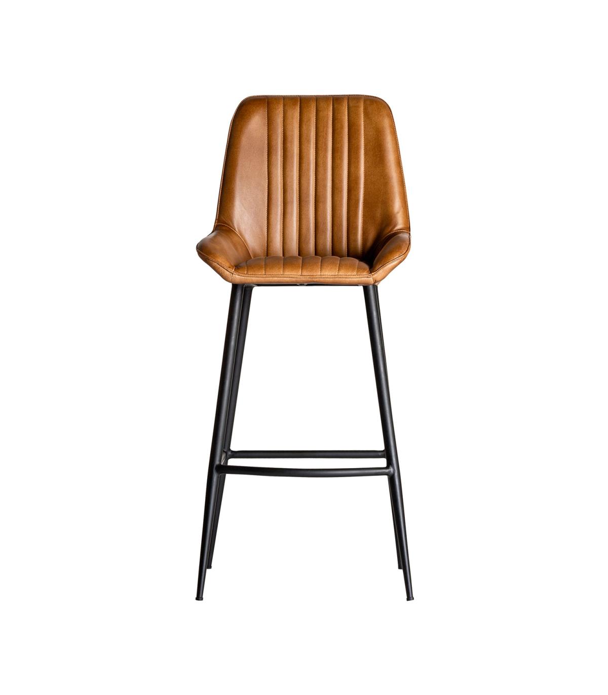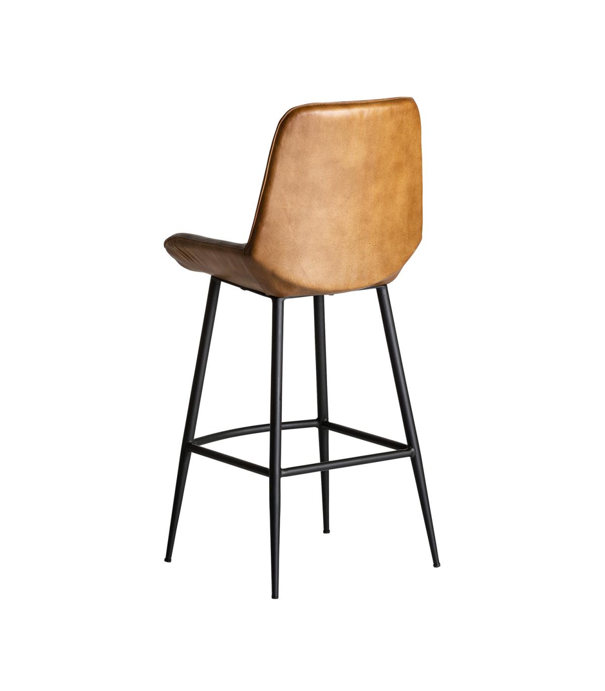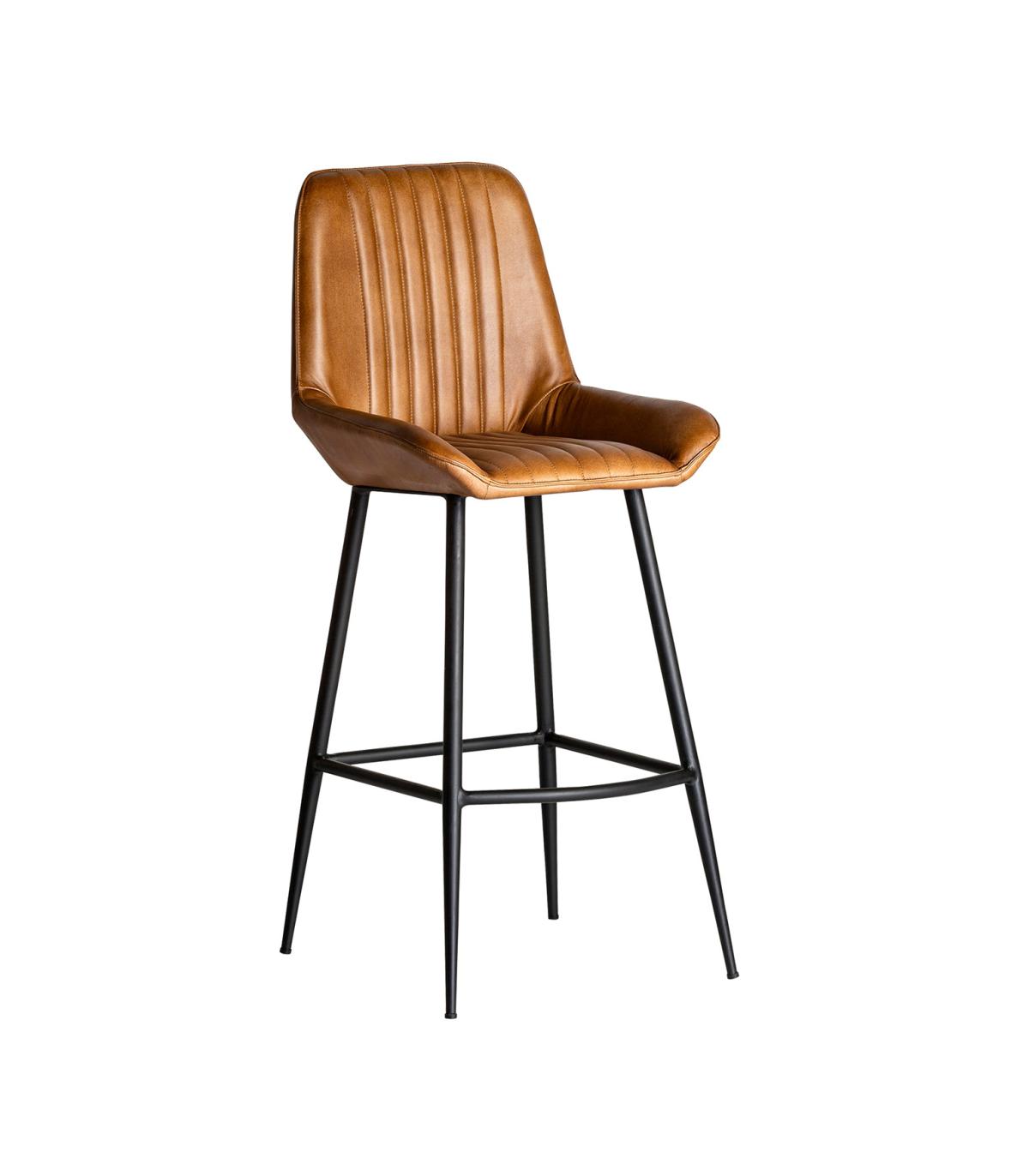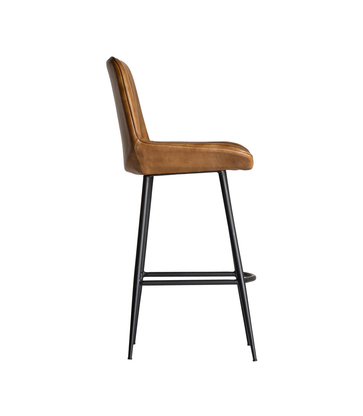 Taburete morton de estilo vintage fabricado en hierro en color negro combinado con cuero en color marrón. Producto desmontable.
