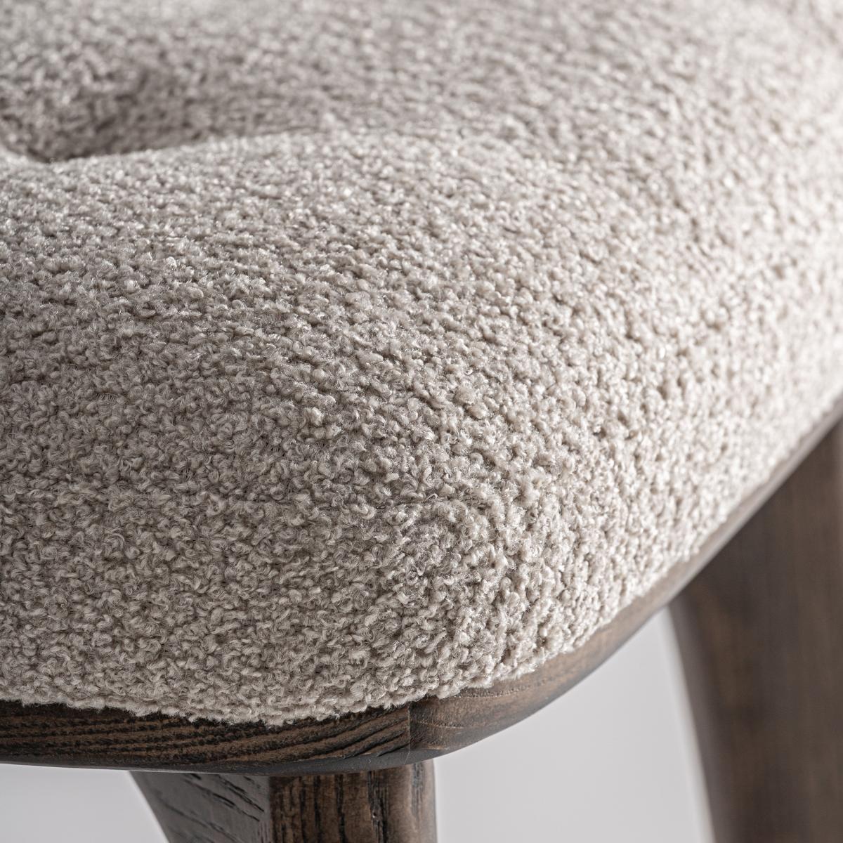 Taburete, fabricado en poliéster en color gris, combinado con madera de fresno en color marrón y hierro en color negro.