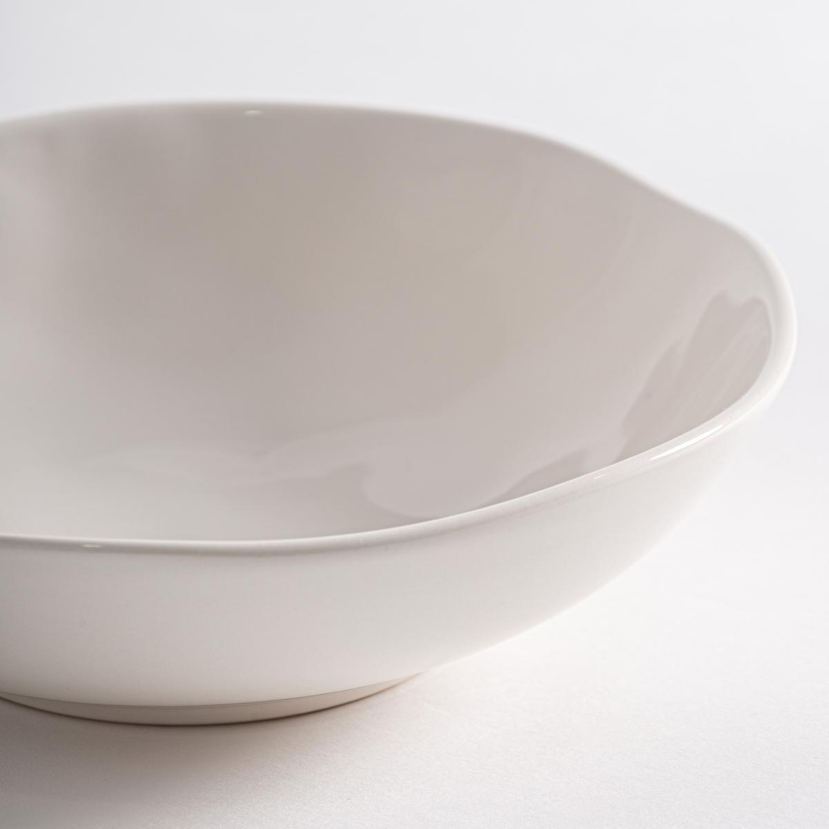 Plato Hondo paola de estilo clásico fabricado en porcelana en color blanco con acabado rugoso.