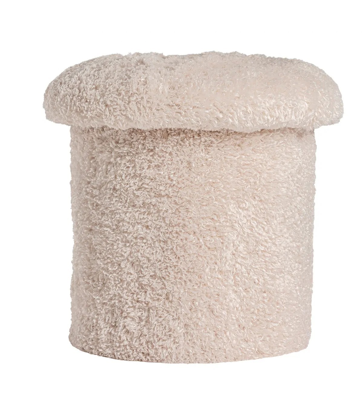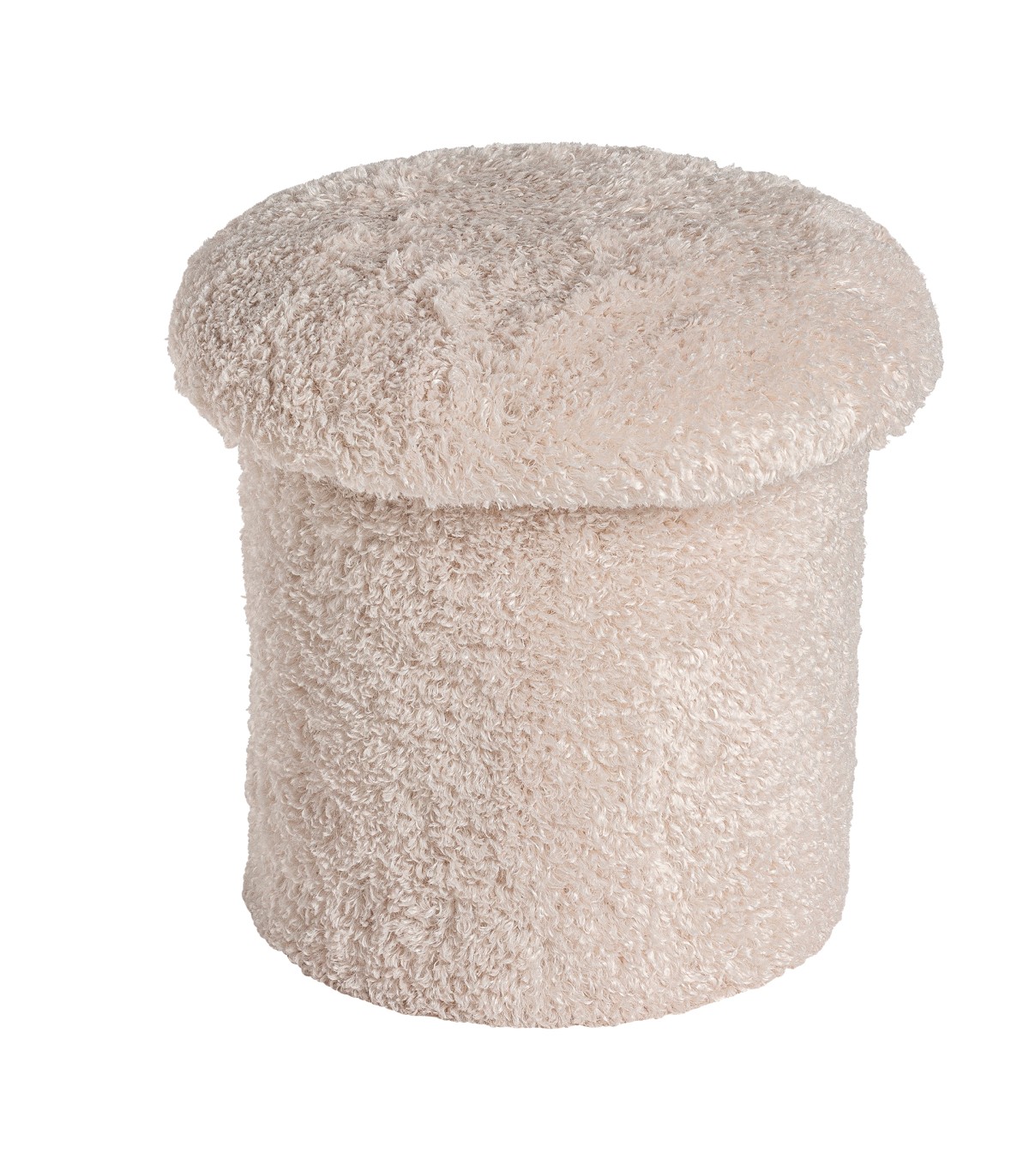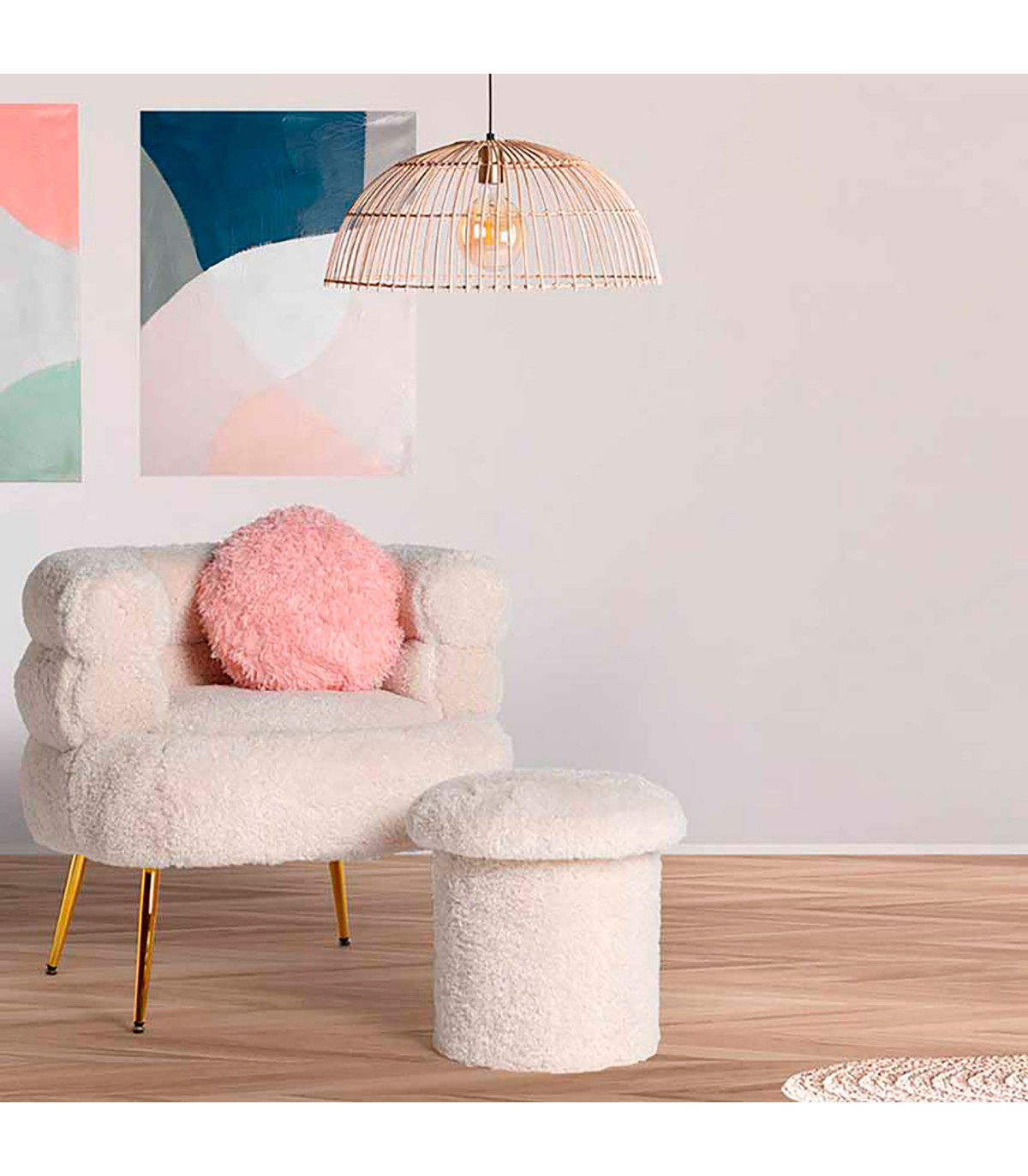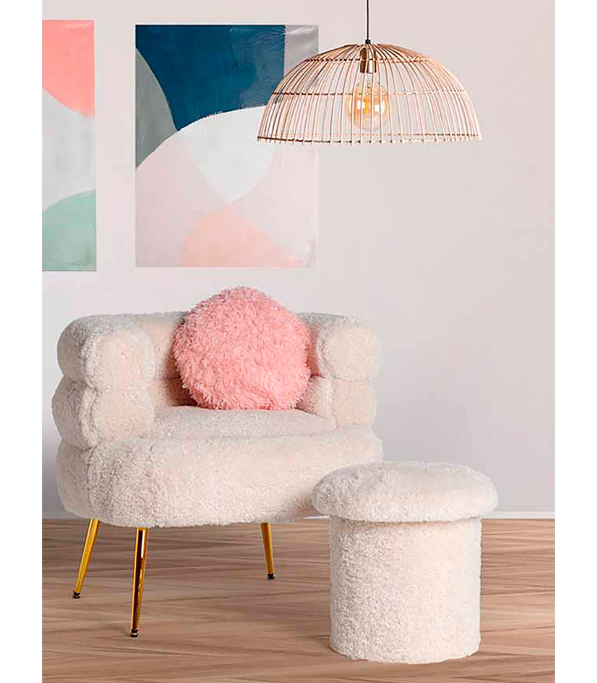 Reposapiés jonzac, en color blanco, de estilo shabby chic. Fabricado en lana, combinado con madera de pino y espuma. Madera dm.