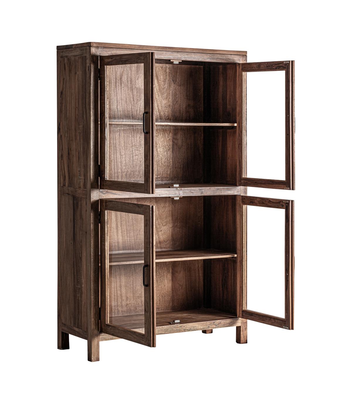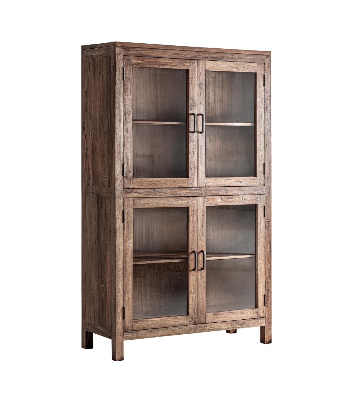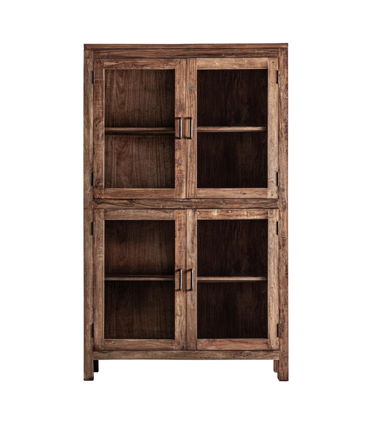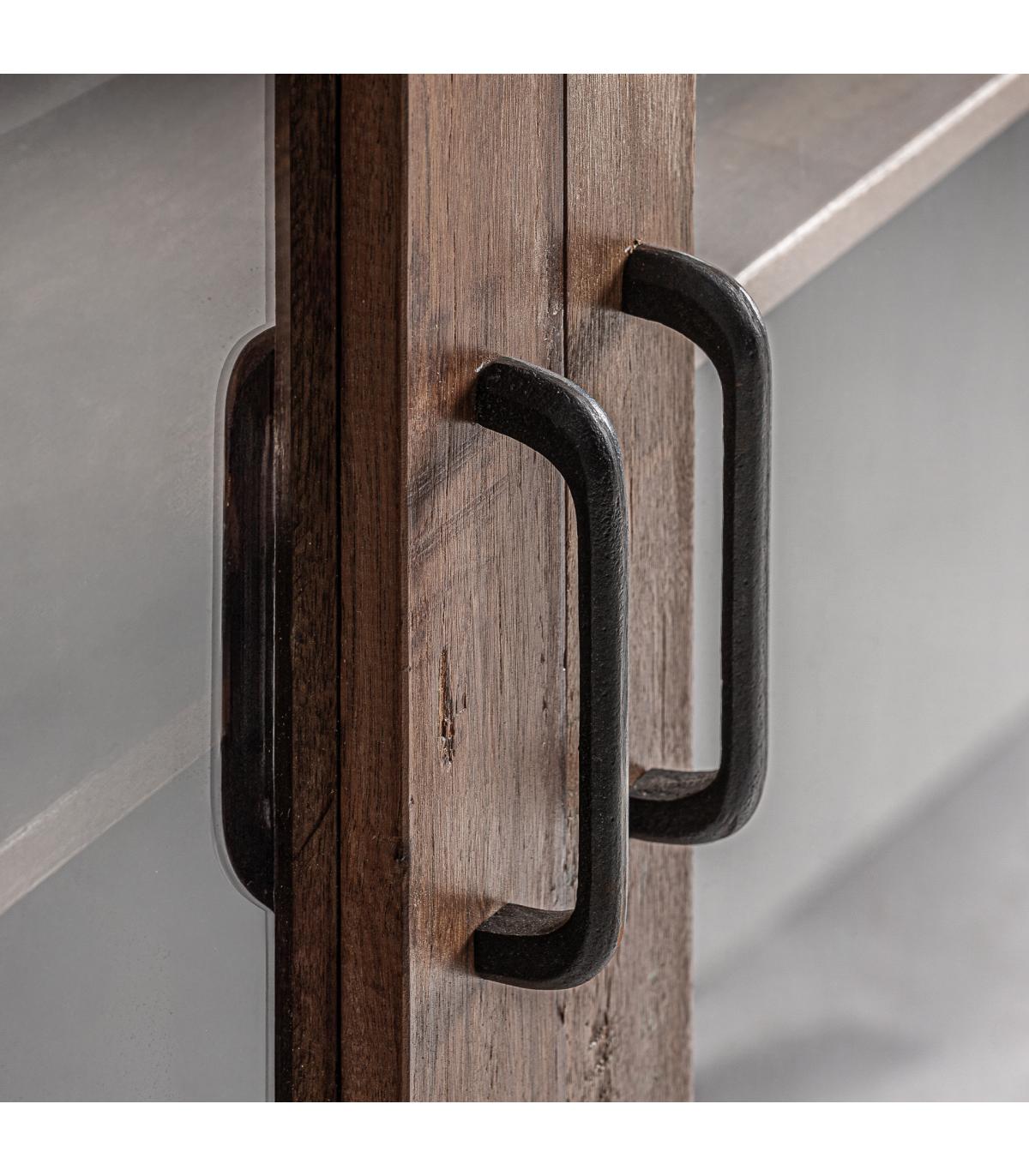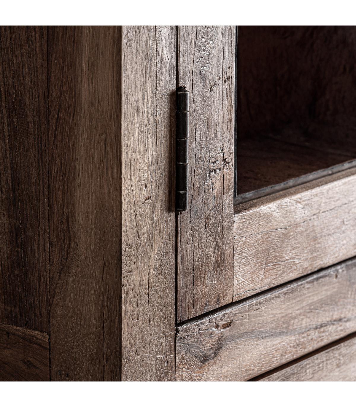 Vitrina fabricado en madera recuperada en color marrón combinado con hierro en color negro.