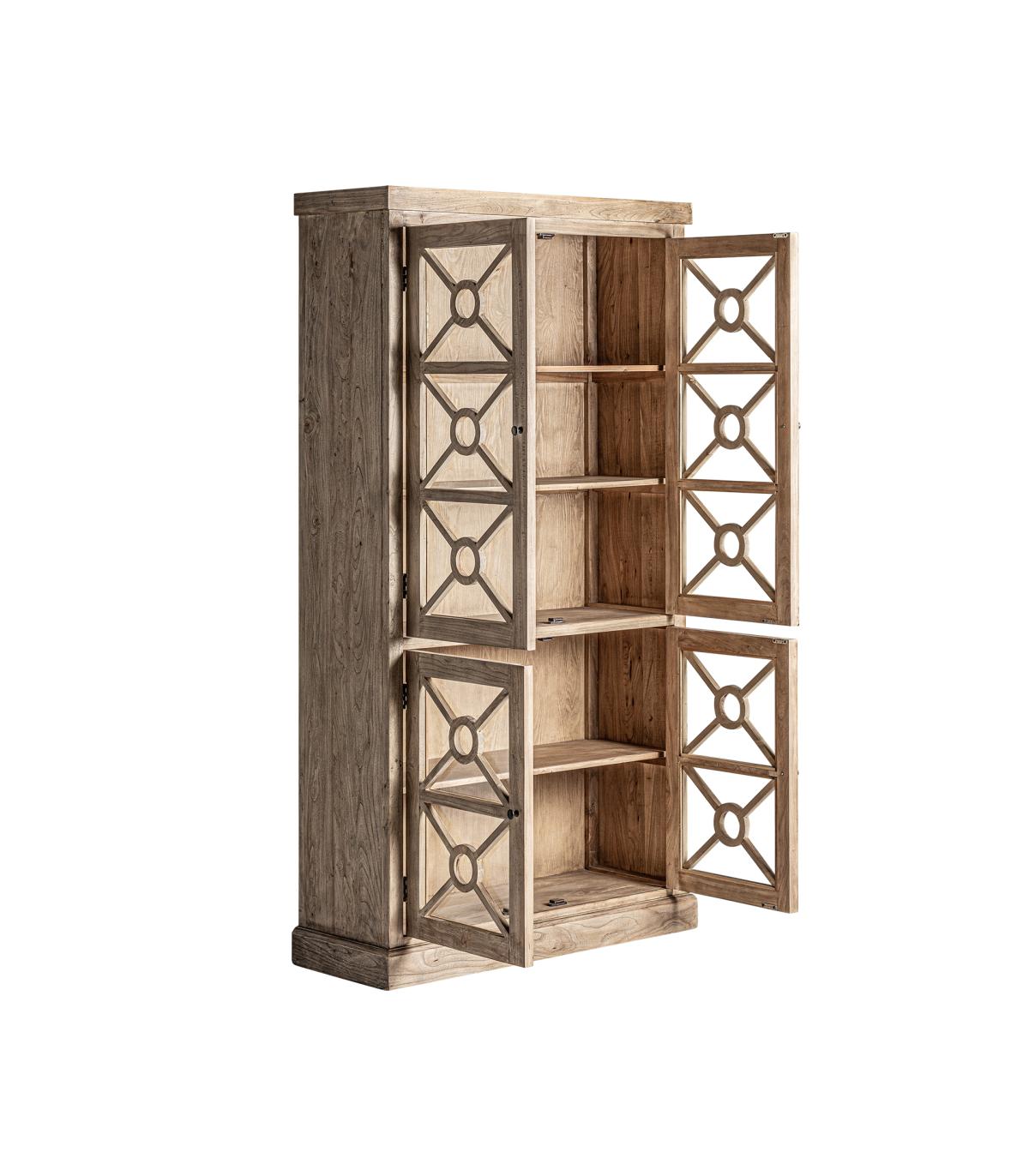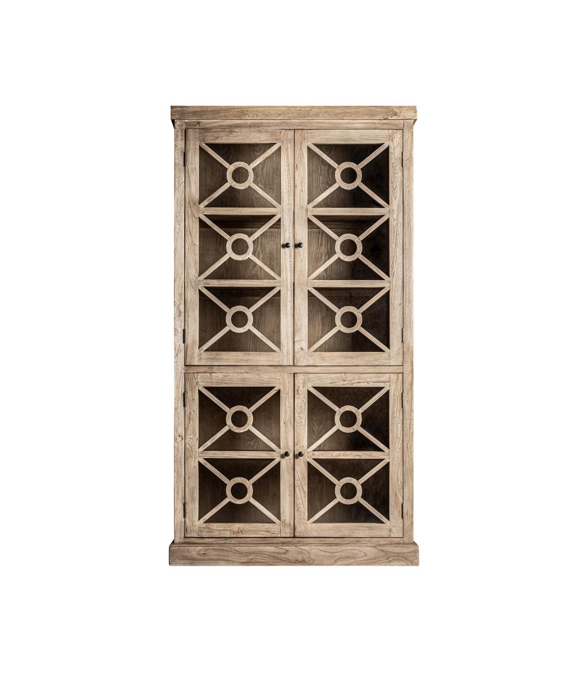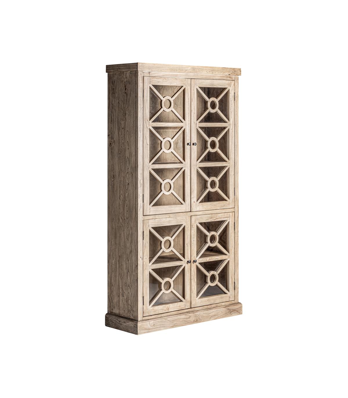 Vitrina gubin de estilo colonial fabricado en madera de olmo en color marrón.