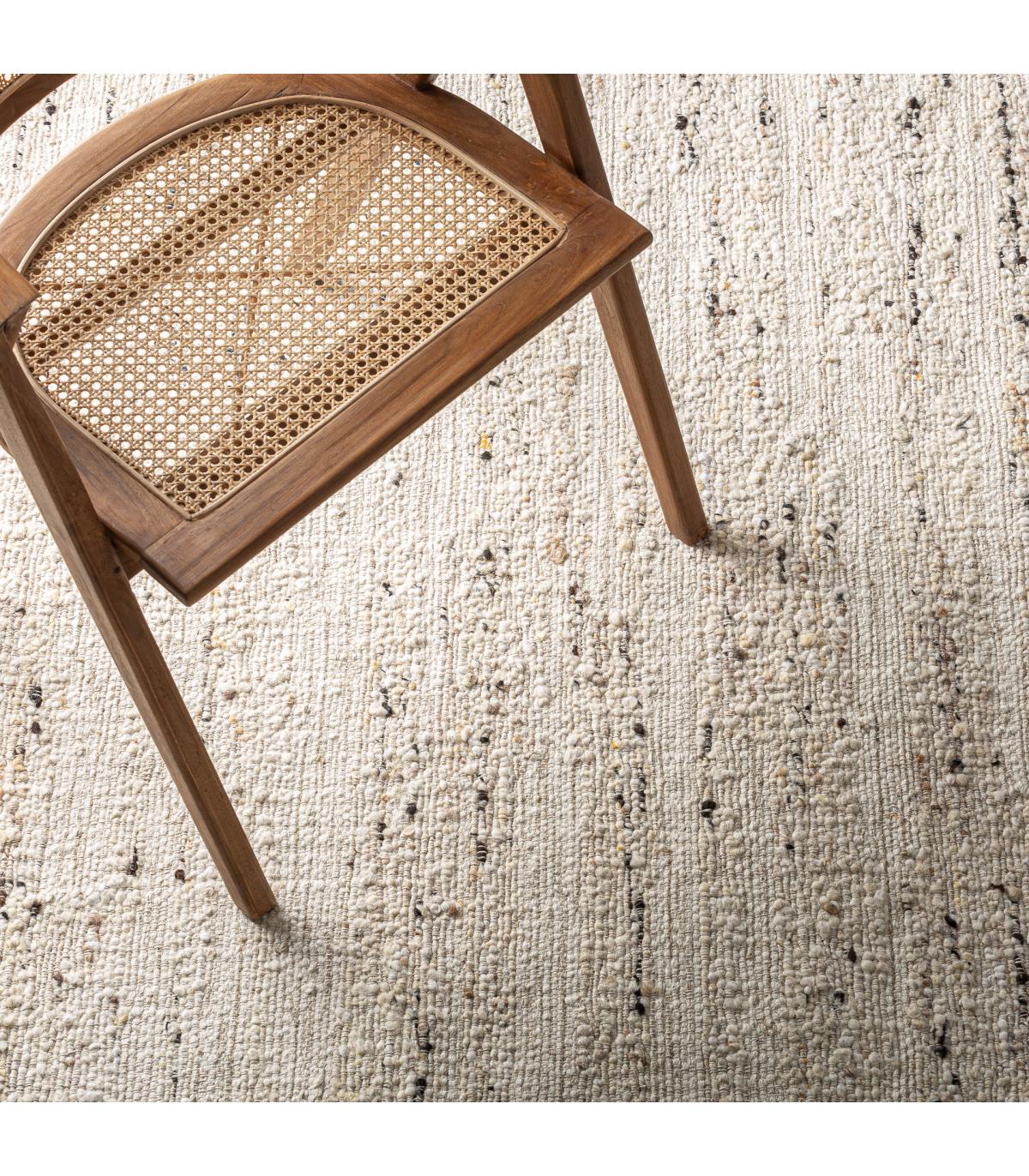 Alfombra Tsure de estilo clásico fabricado en lana en color beige combinado con algodón.