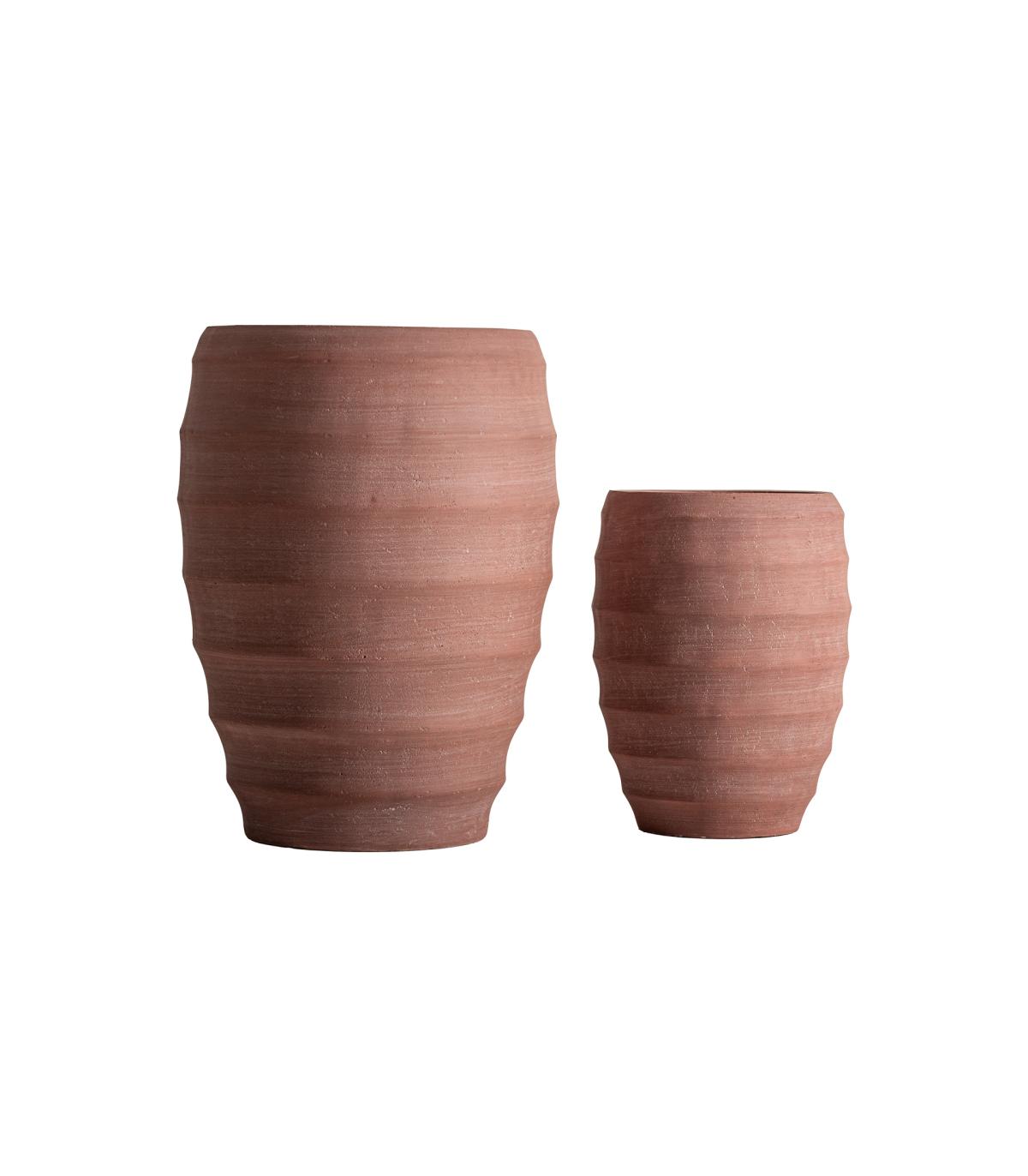 Macetero j/2 Kora de estilo minimalista, fabricado en cerámica en color terracota. Producto apilable.