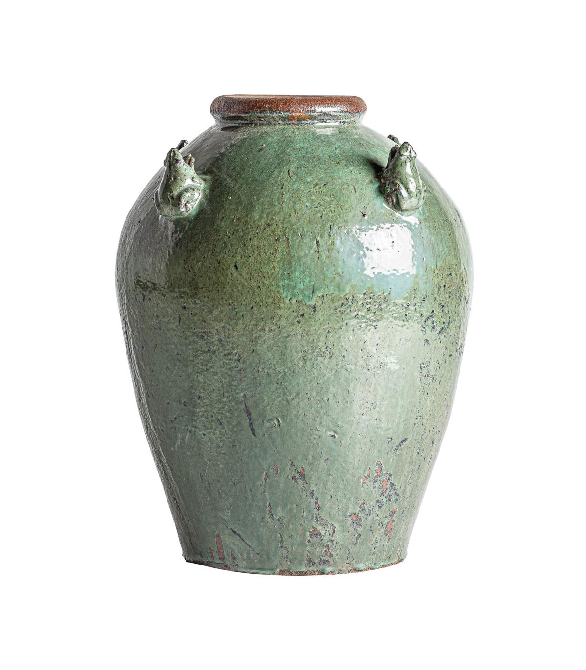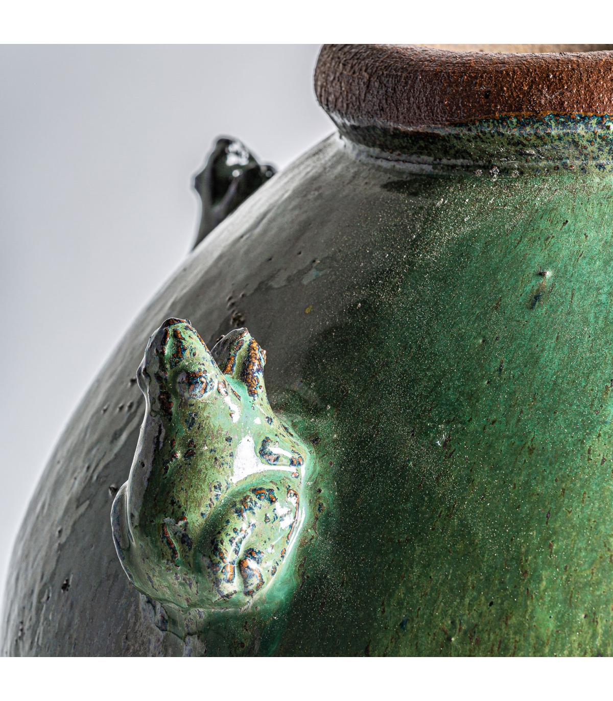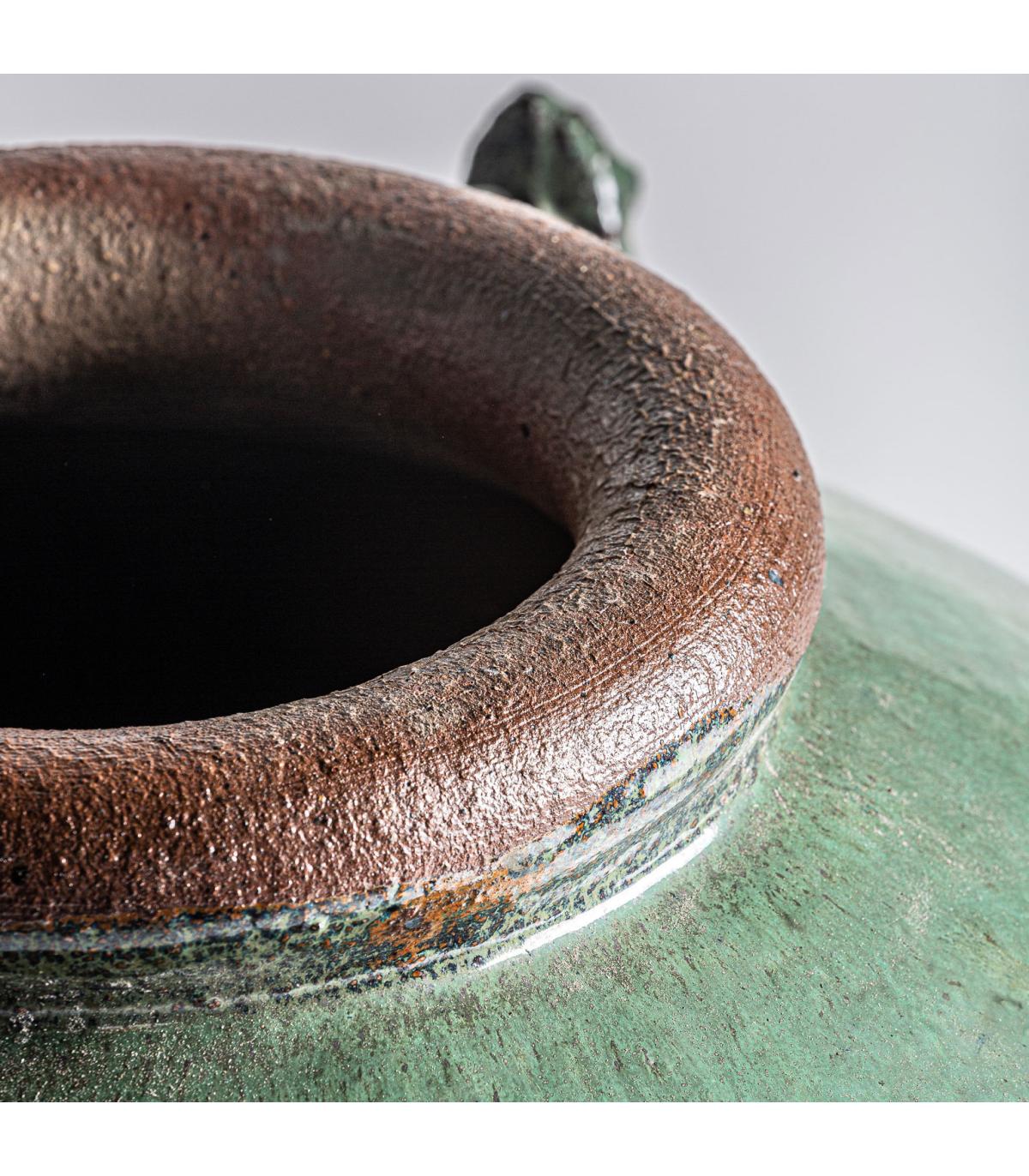 Tinaja cilindrica dadoma de estilo vintage fabricado en cerámica en color tonos oscuros.