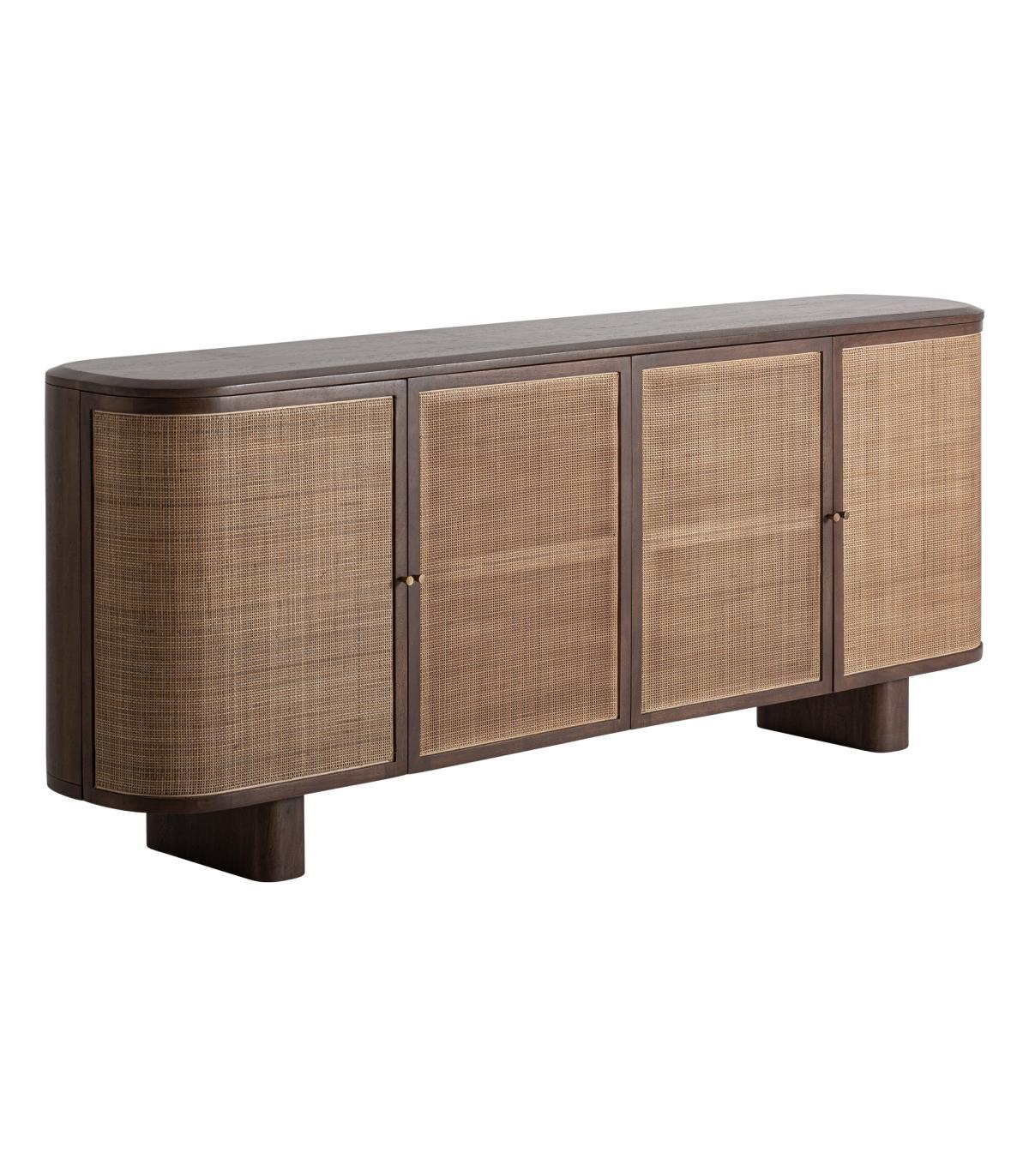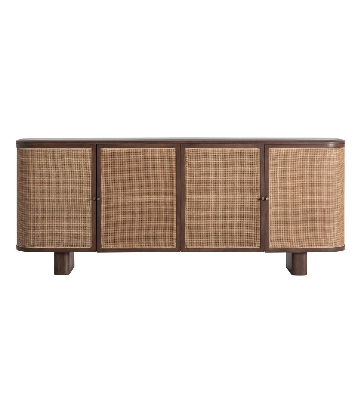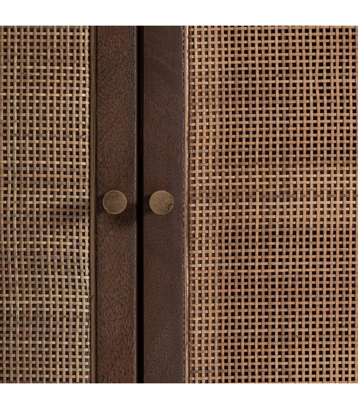 Aparador fabricado en madera de mango en color marrón combinado con ratán en color arena.