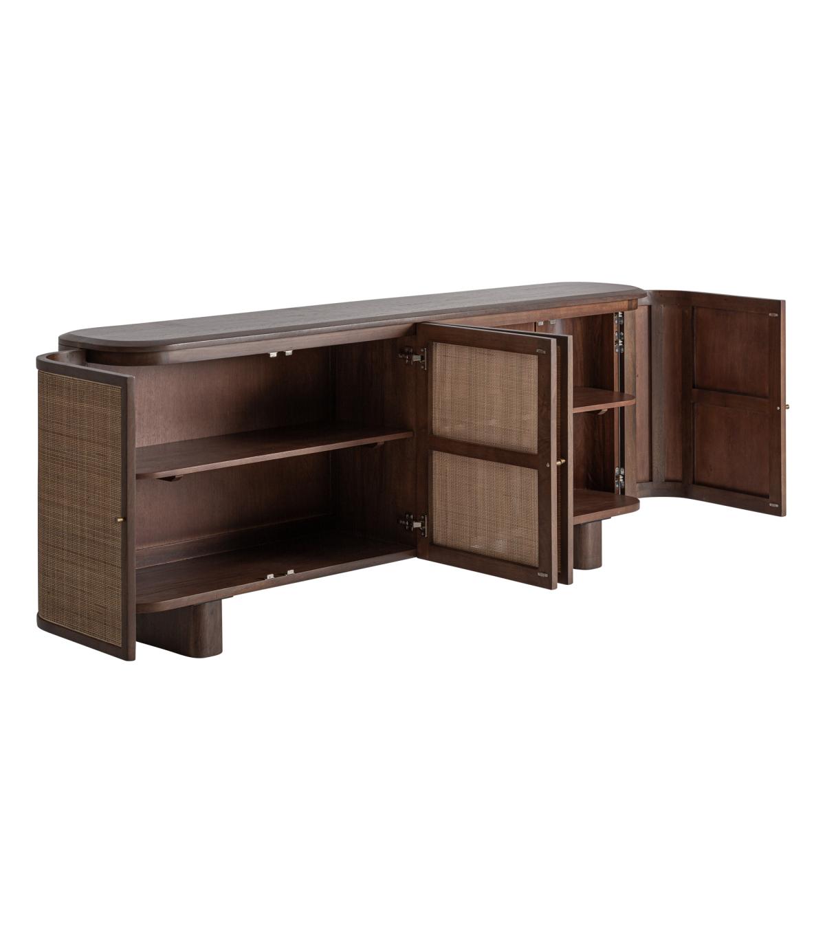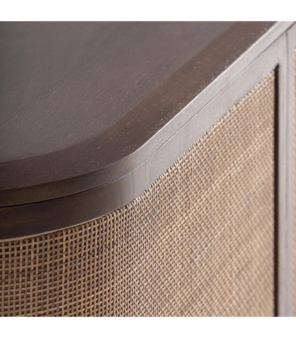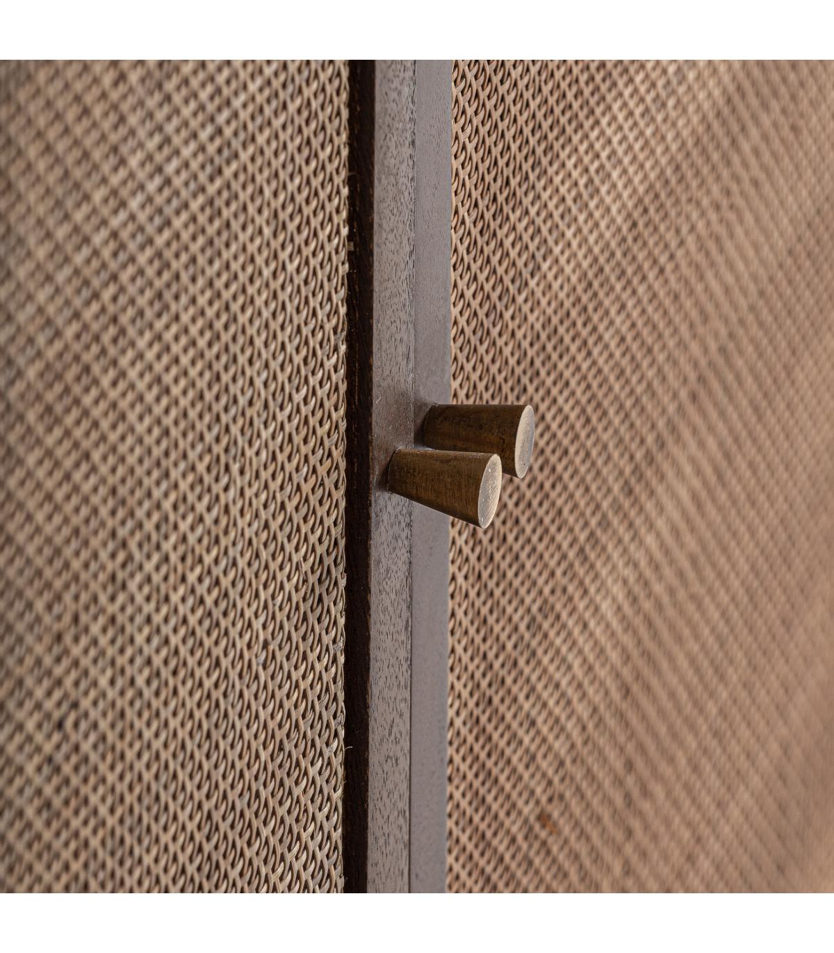 Aparador fabricado en madera de mango en color marrón combinado con ratán en color arena.