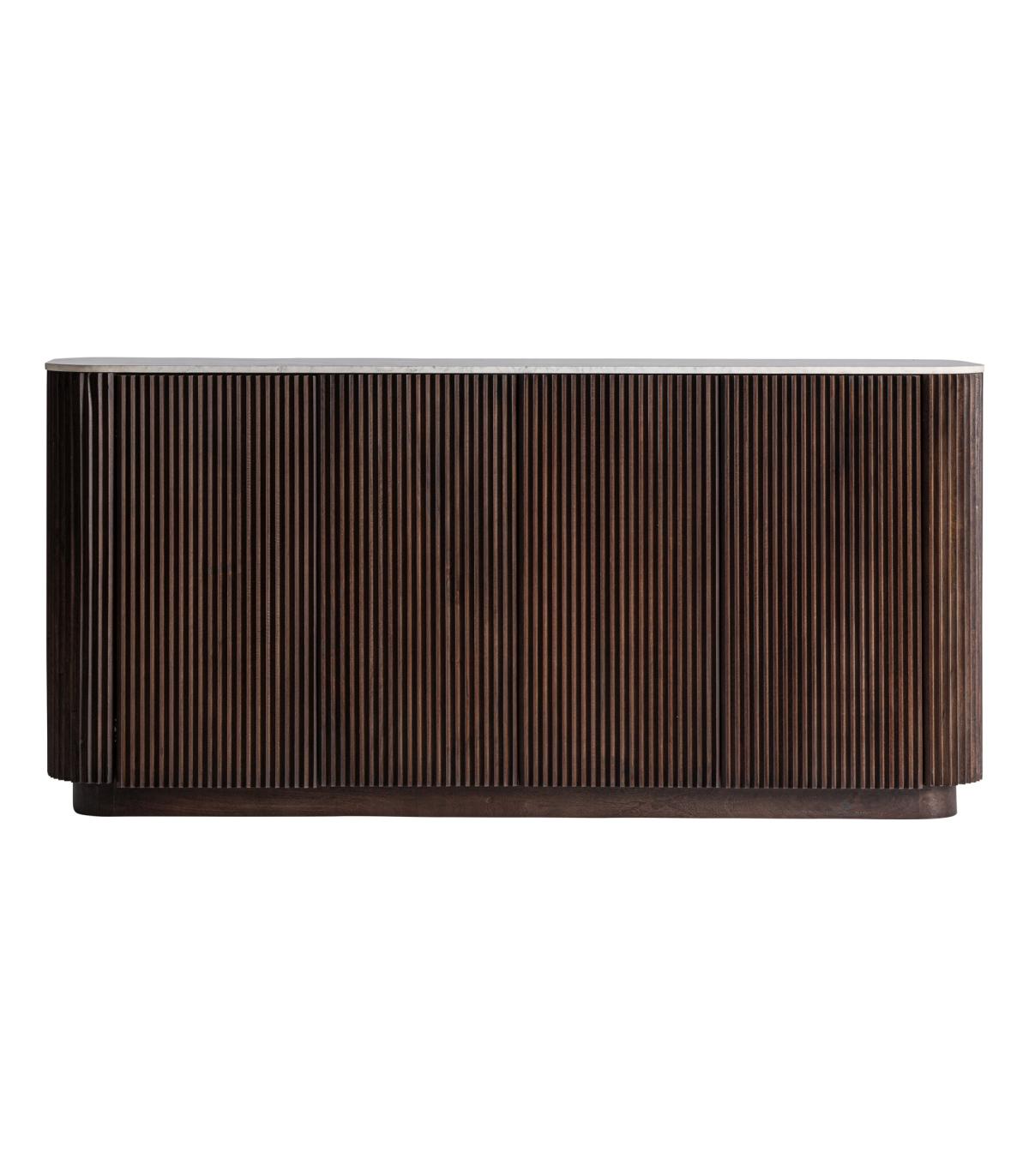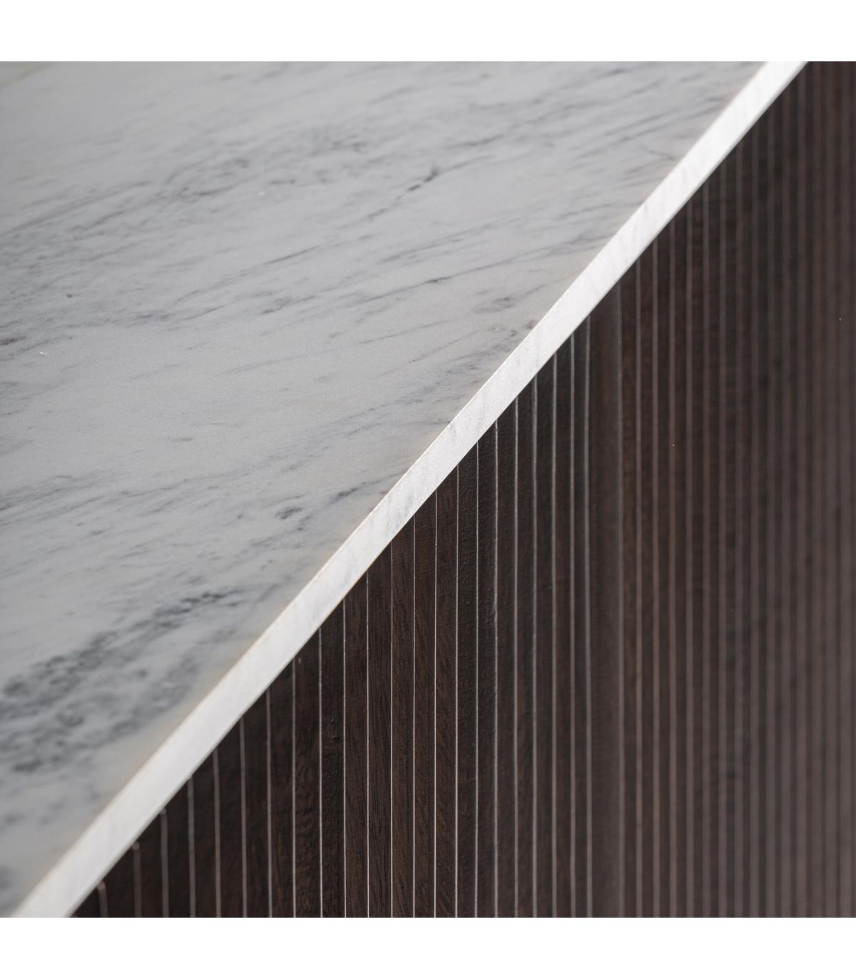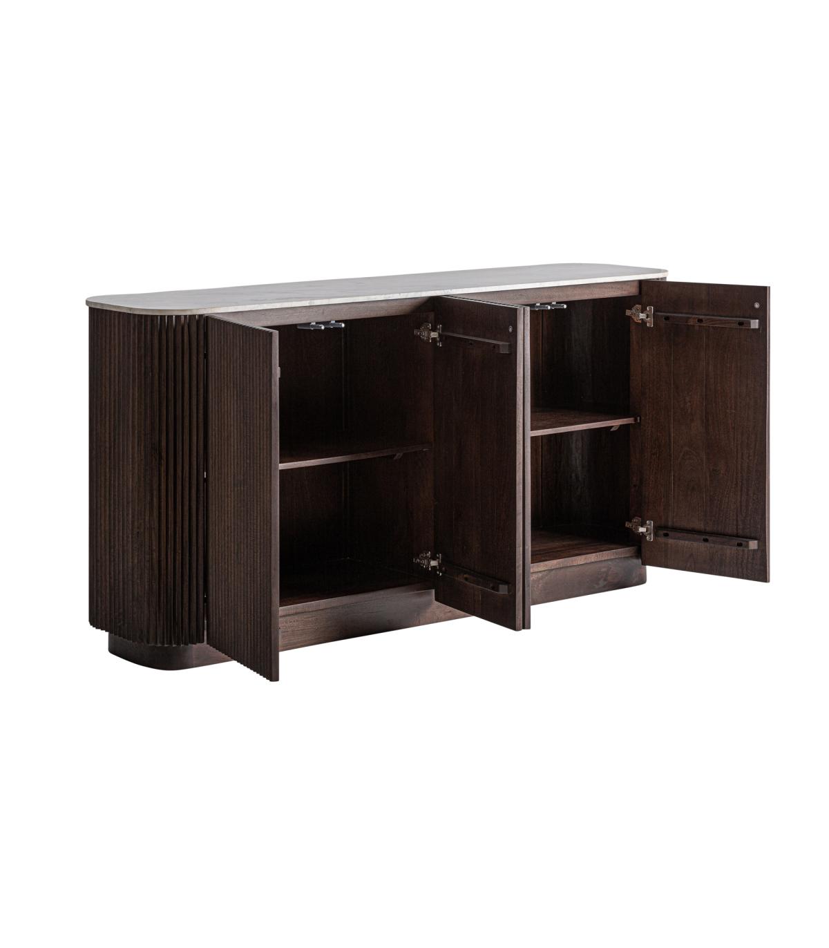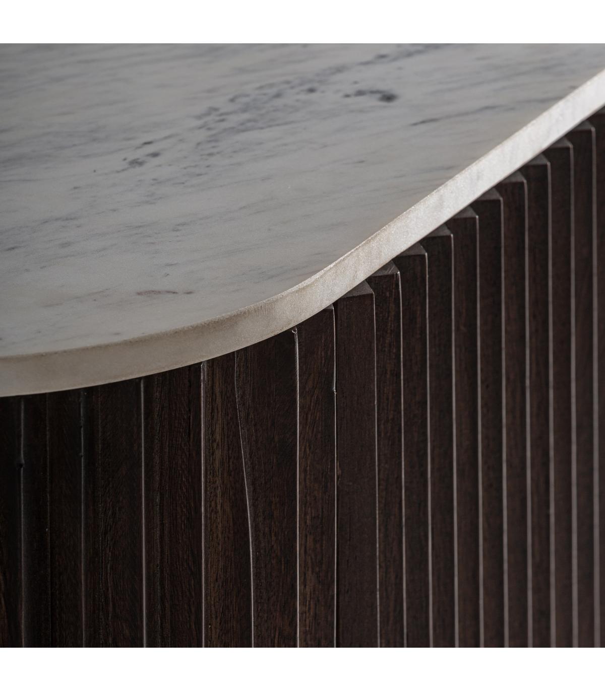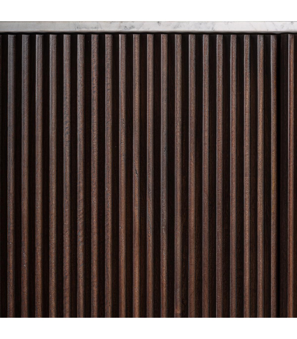 Aparador fabricado en madera de mango en color marrón combinado con mármol en color blanco.