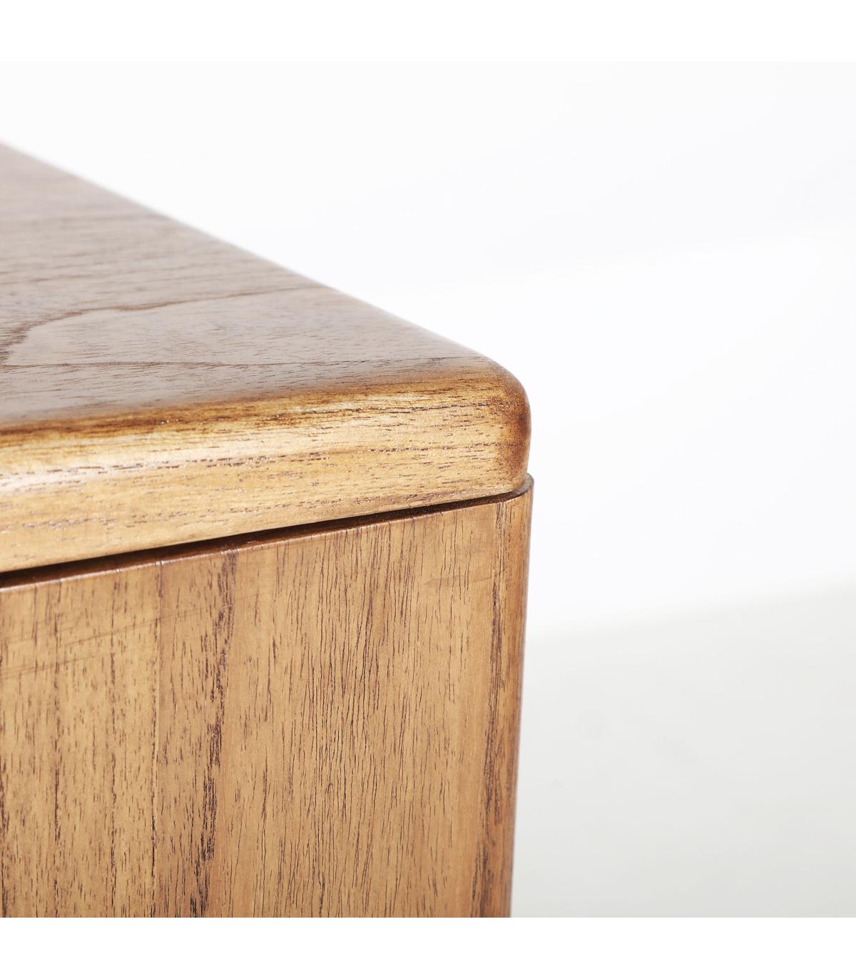 Aparador rectangular slough de estilo nórdico, fabricado en madera mindi en color marrón. Producto desmontable.