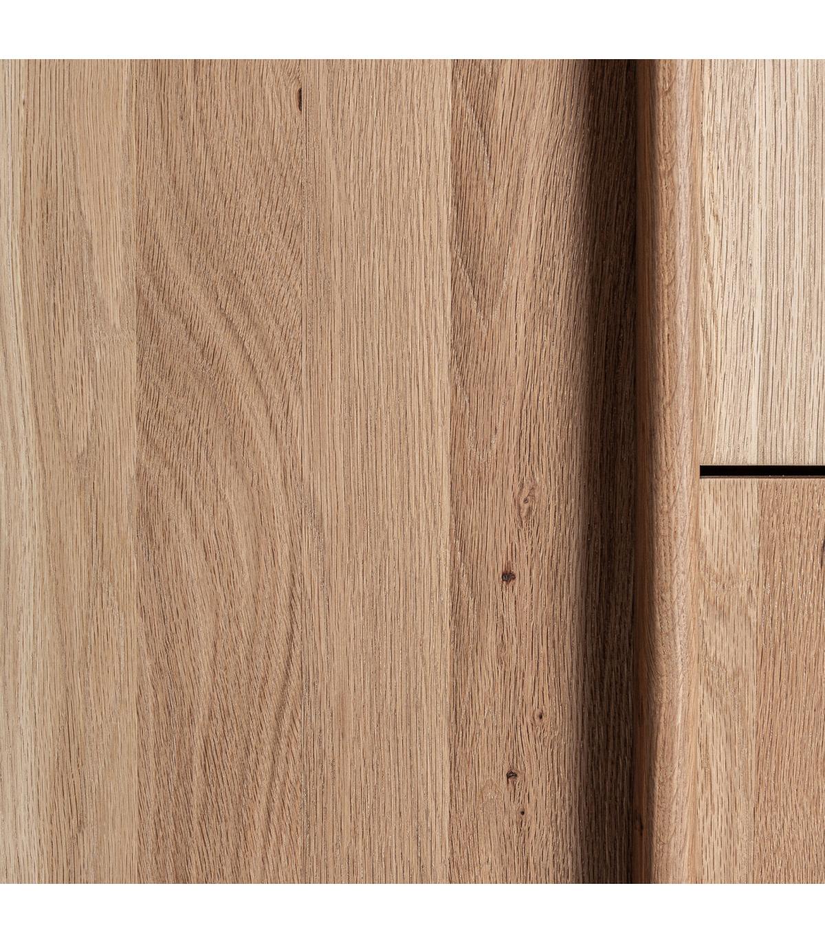 Aparador Nara de estilo contemporáneo fabricado en madera roble en color marrón claro combinado con mármol en color negro.