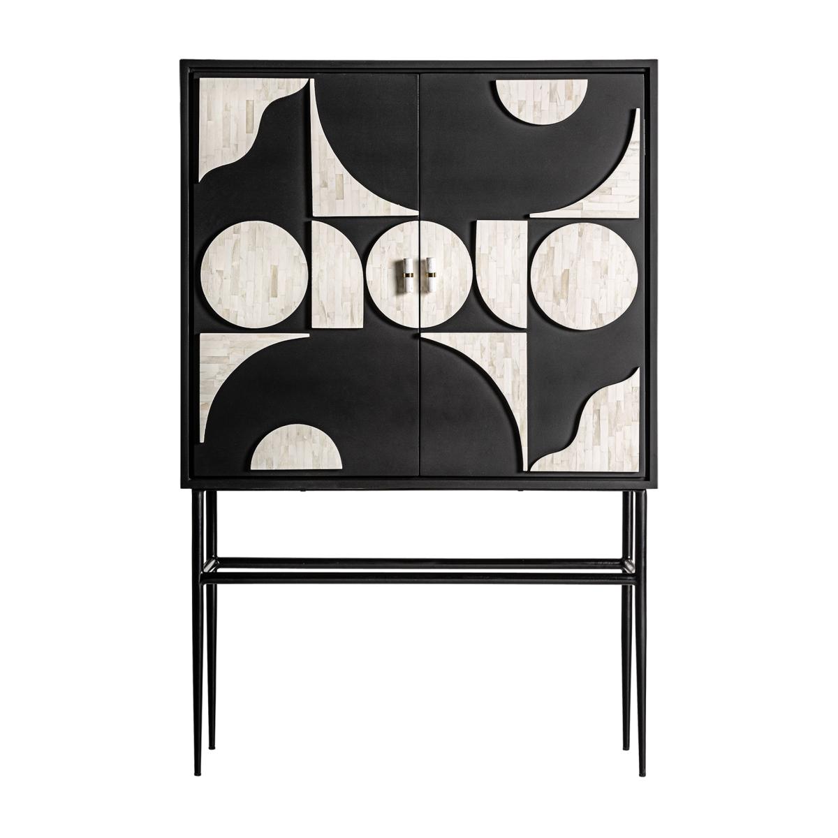Armario athy de estilo contemporáneo fabricado en madera dm en color negro combinado con hueso en color blanco y hierro. Producto desmontable.