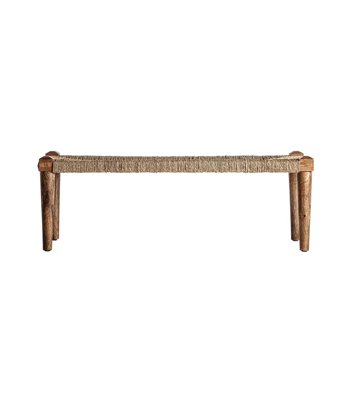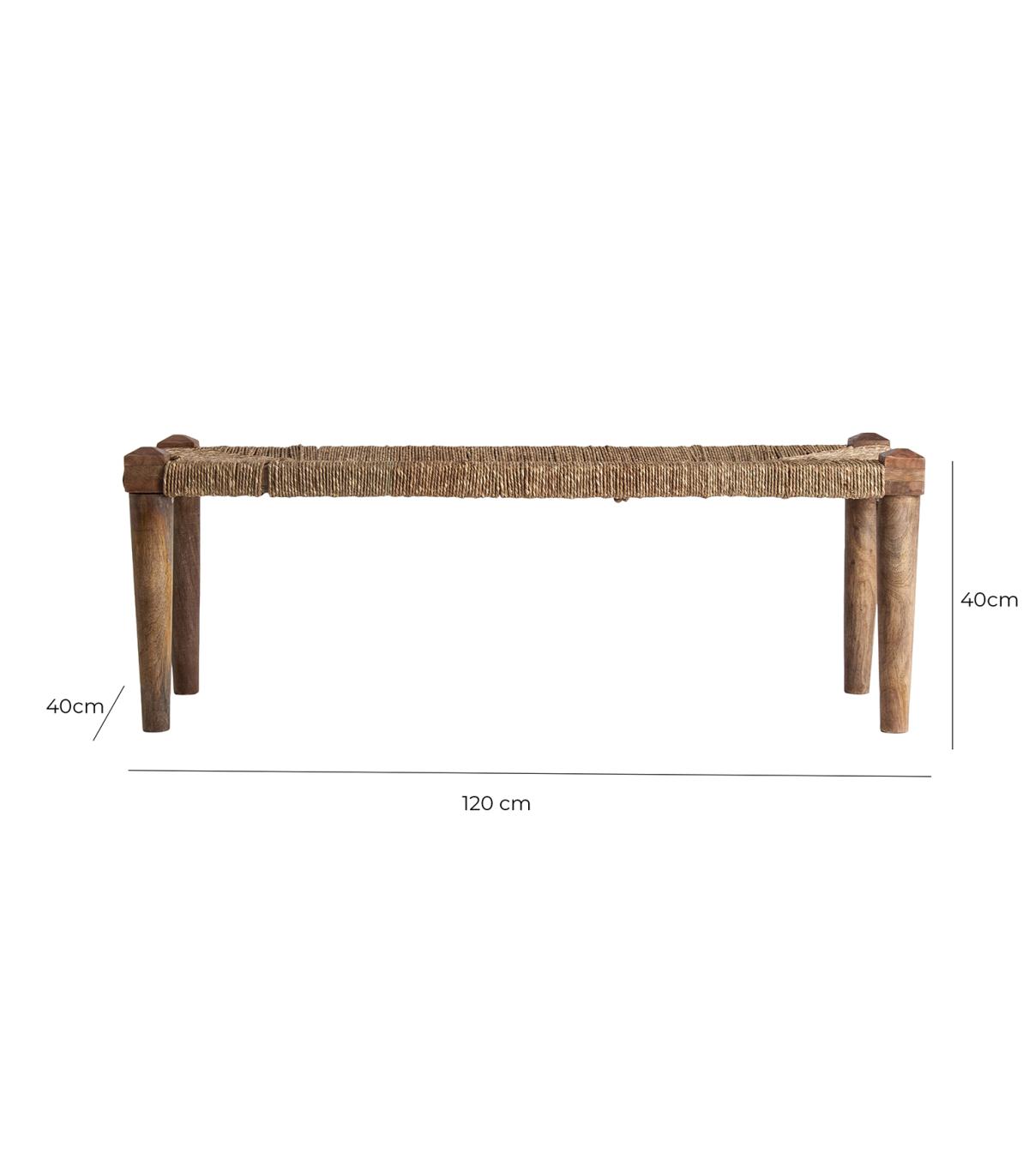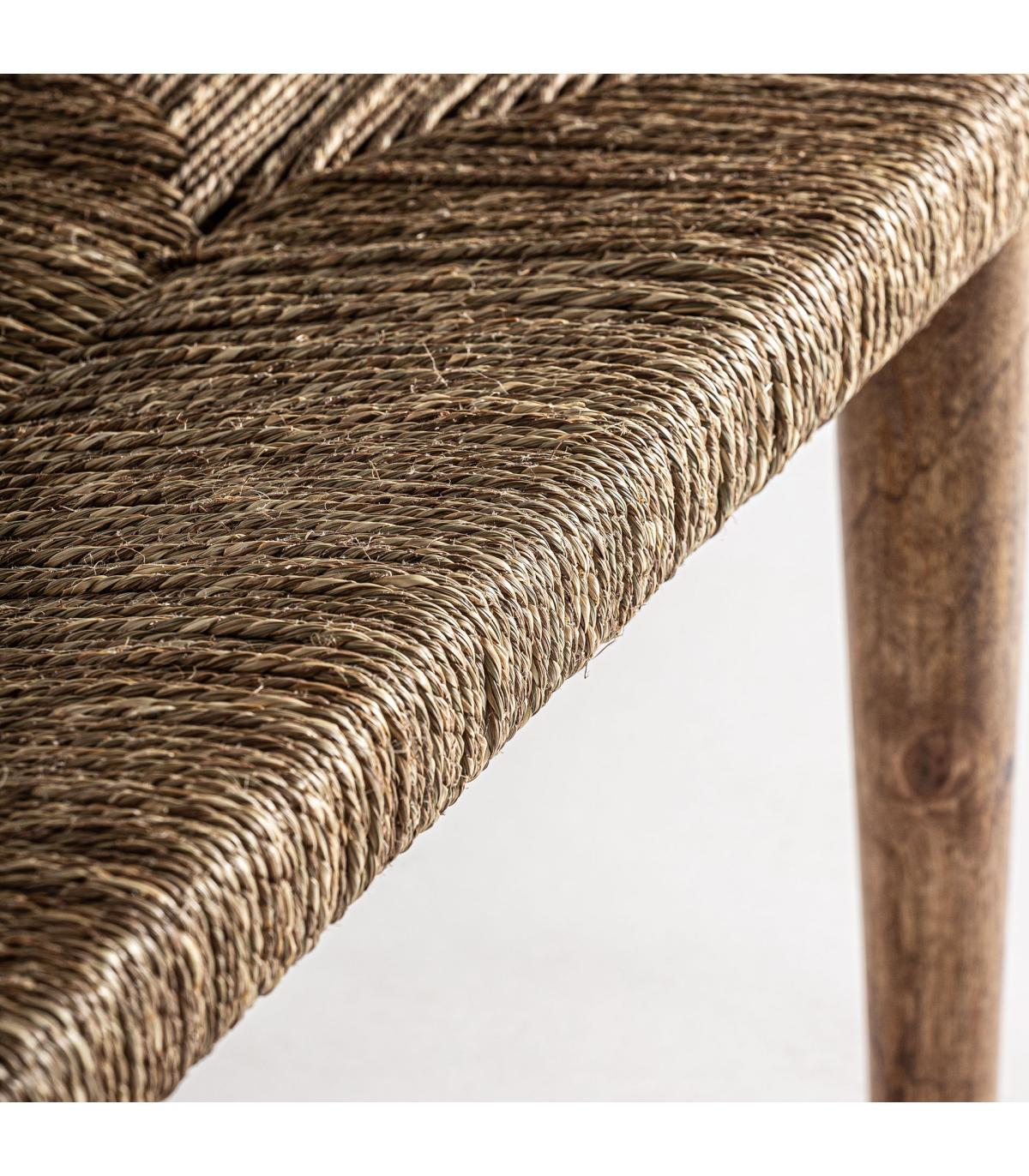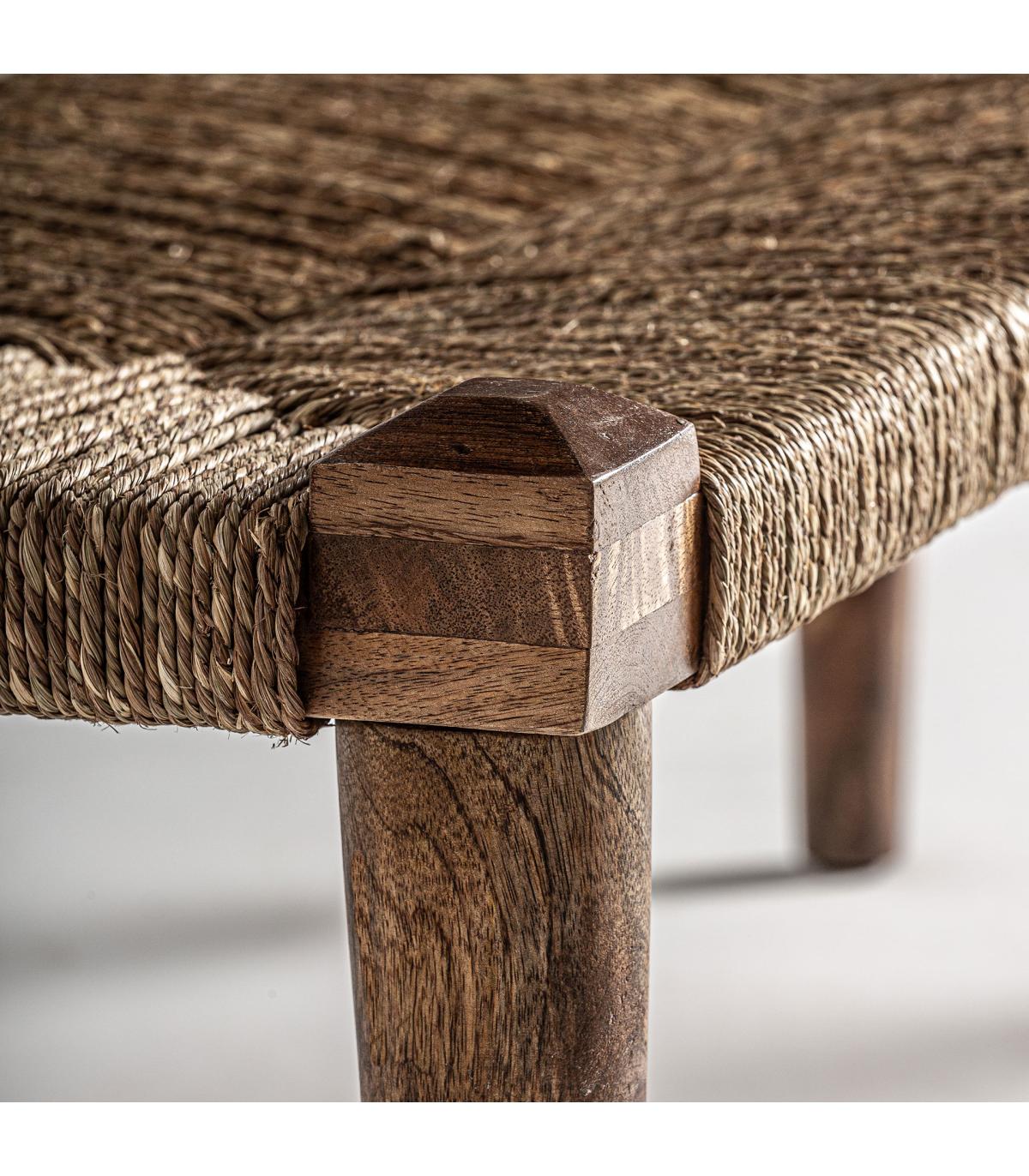 Banco Tassarolo de estilo vintage fabricado en madera de mango en color marrón combinado con fibra natural. Producto desmontable.