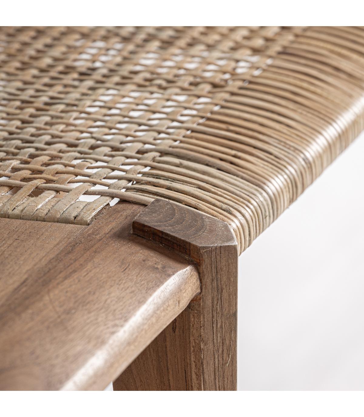 Banco fabricado en madera de teka en color marrón.